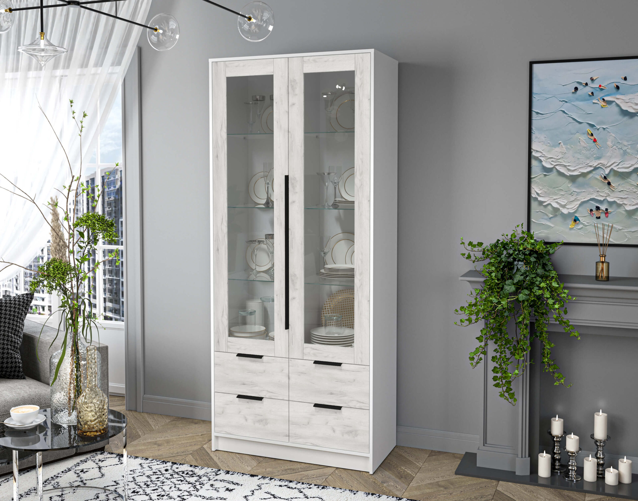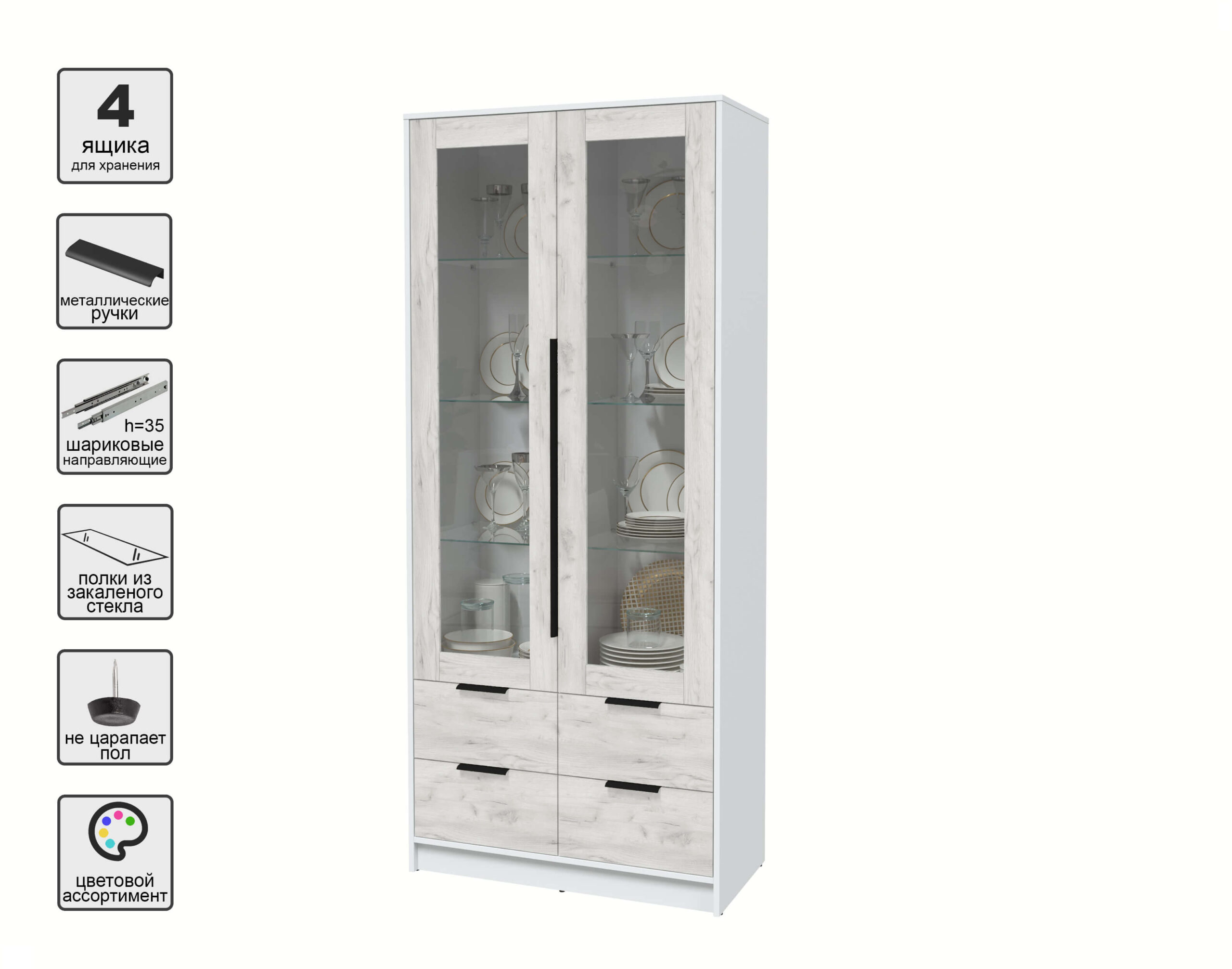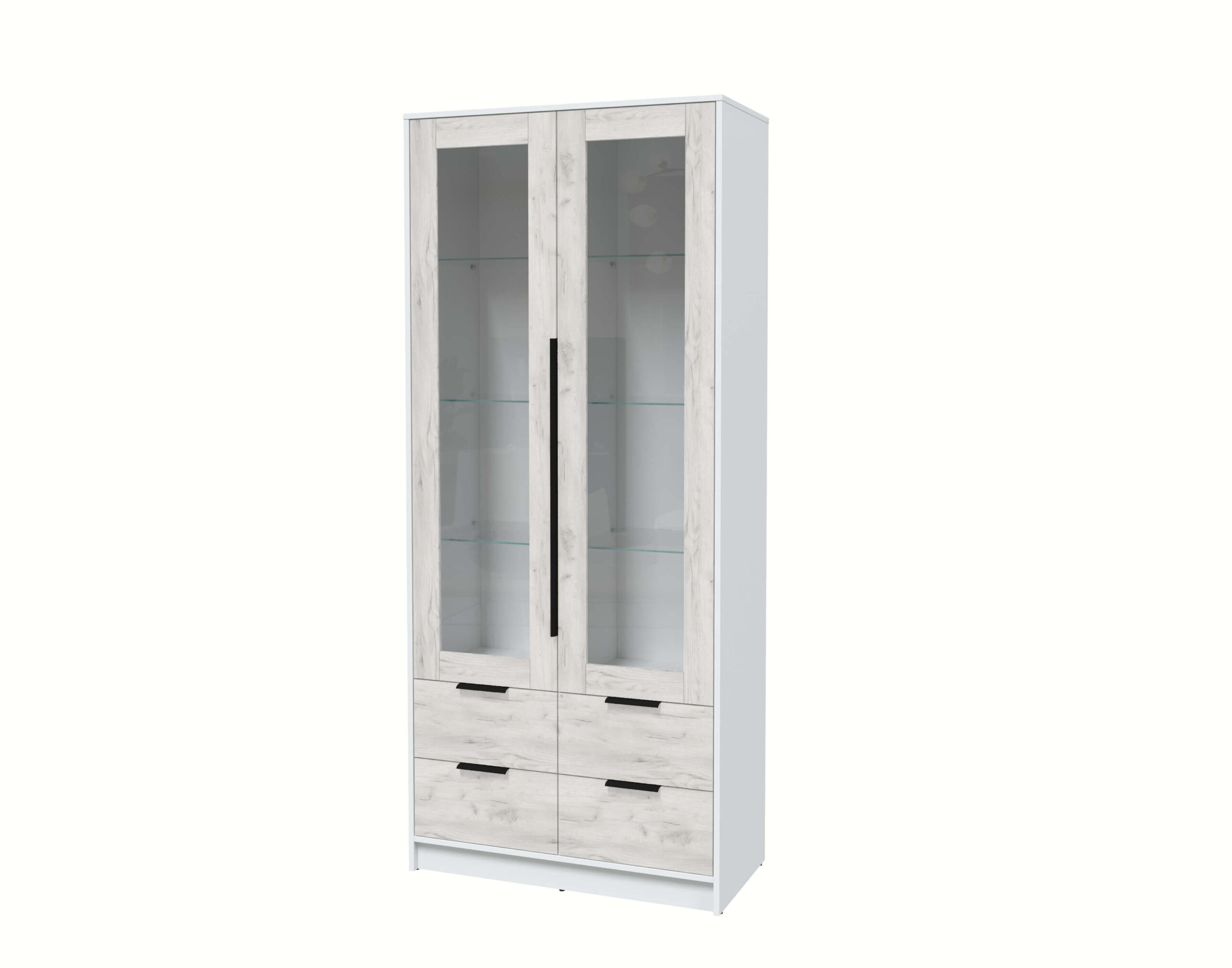 ШКАФ С ВИТРИНОЙ КТ-ШВ2 (БЕЛЫЙ ЛДСП/ ДУБ БЕЛЫЙ ЛДСП) Ш918 В2128 Г451 - Yuta.by