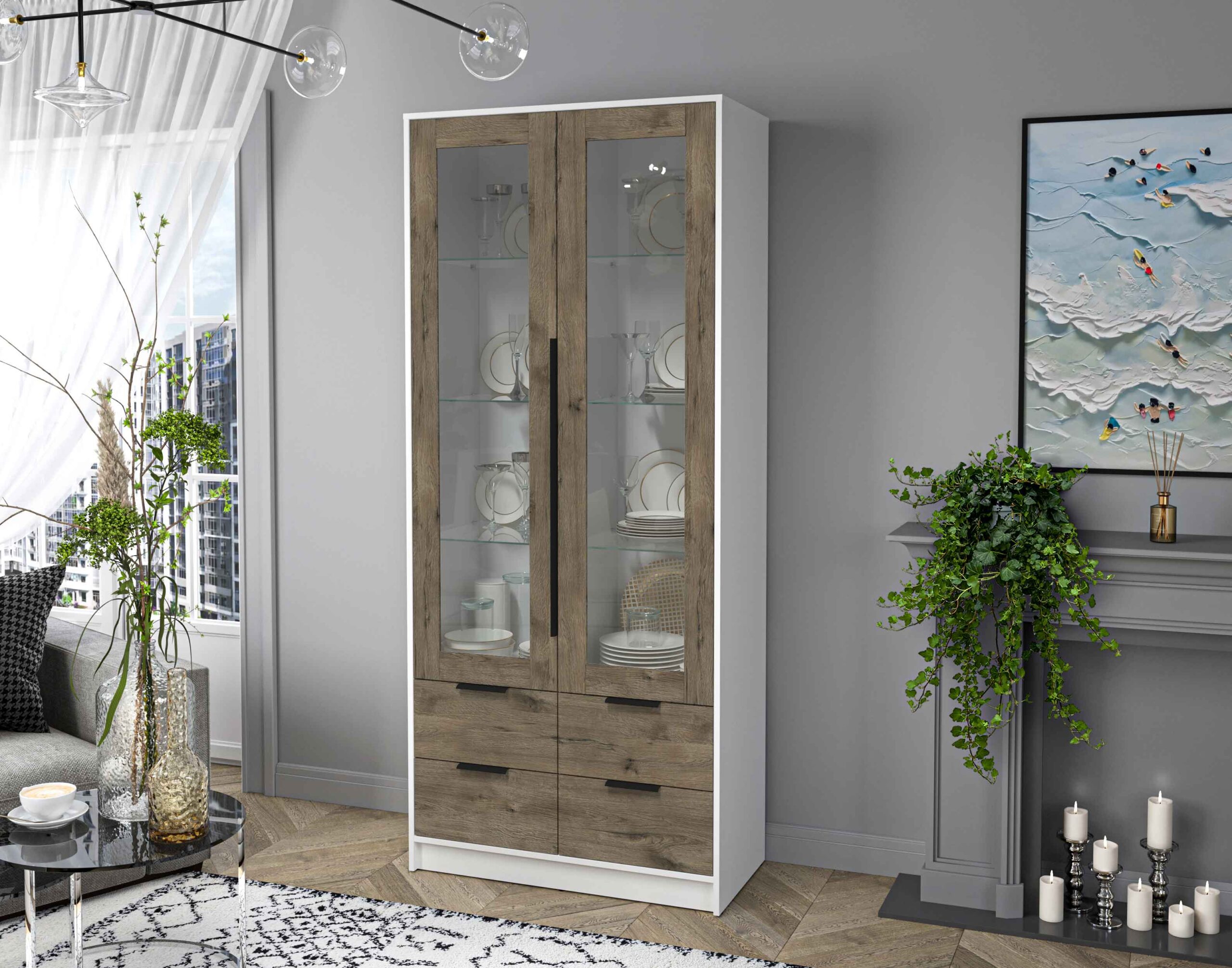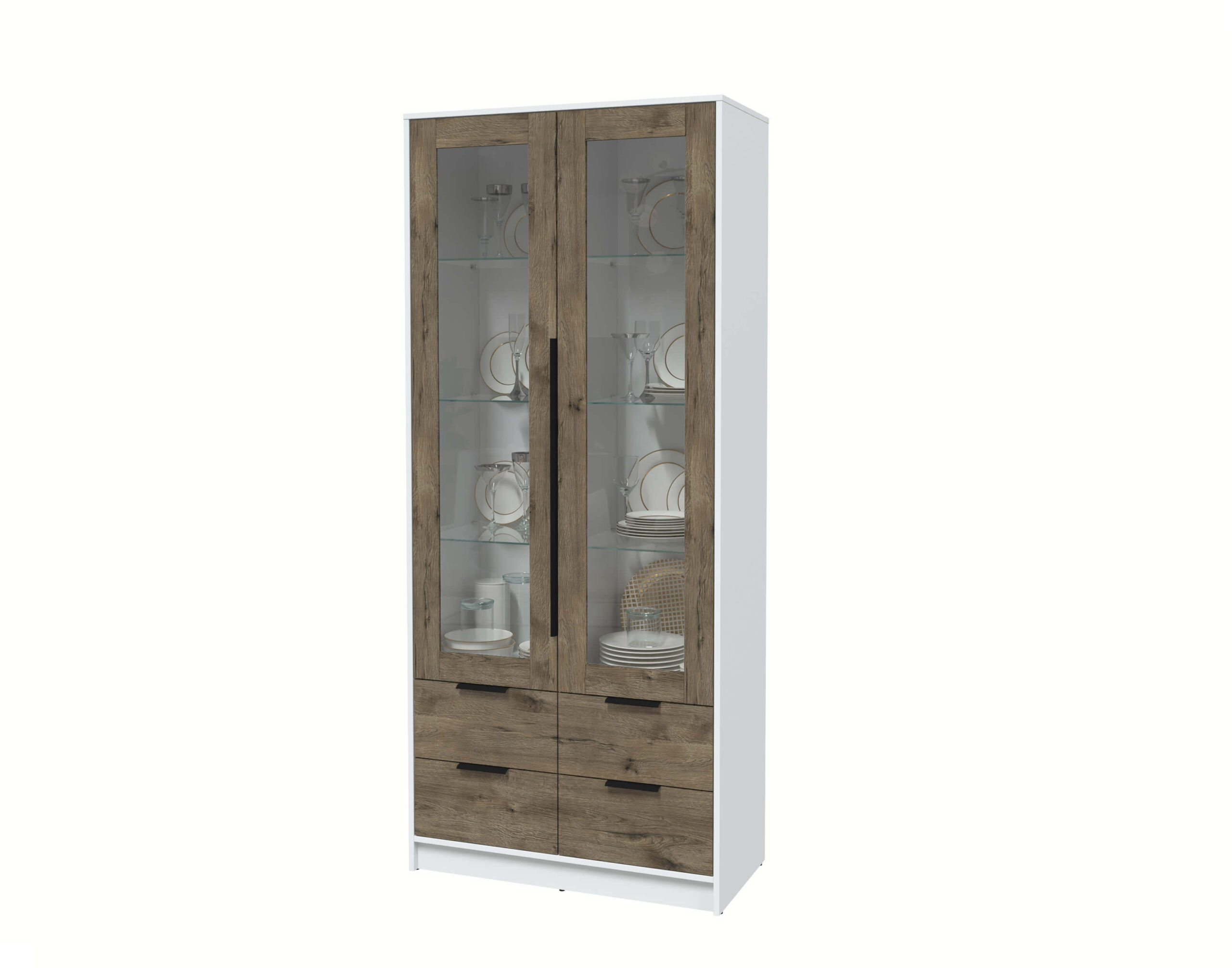 ШКАФ С ВИТРИНОЙ КТ-ШВ2 (БЕЛЫЙ ЛДСП/ ДУБ ВЕЛЛИНГТОН ЛДСП) Ш918 В2128 Г451 - Yuta.by