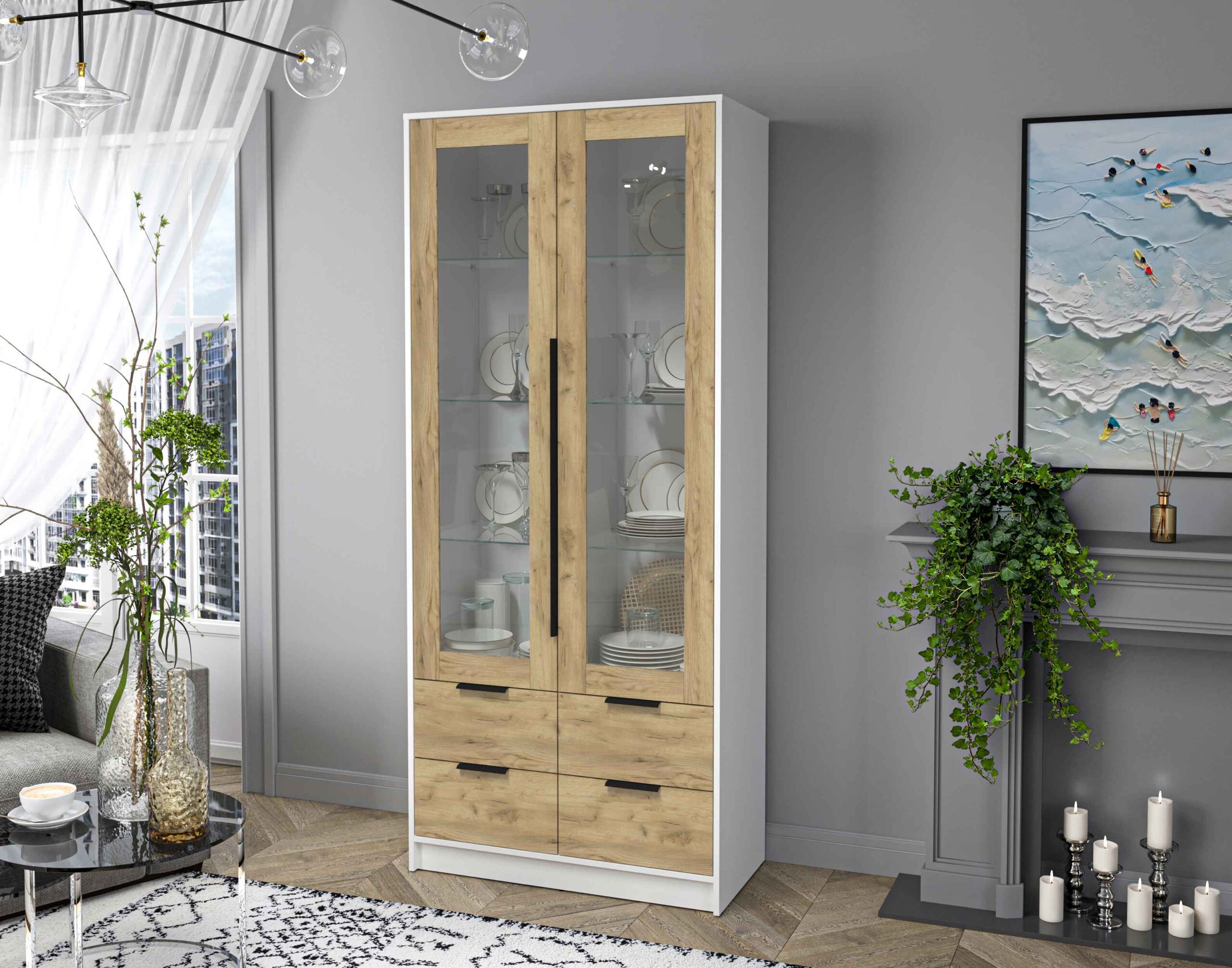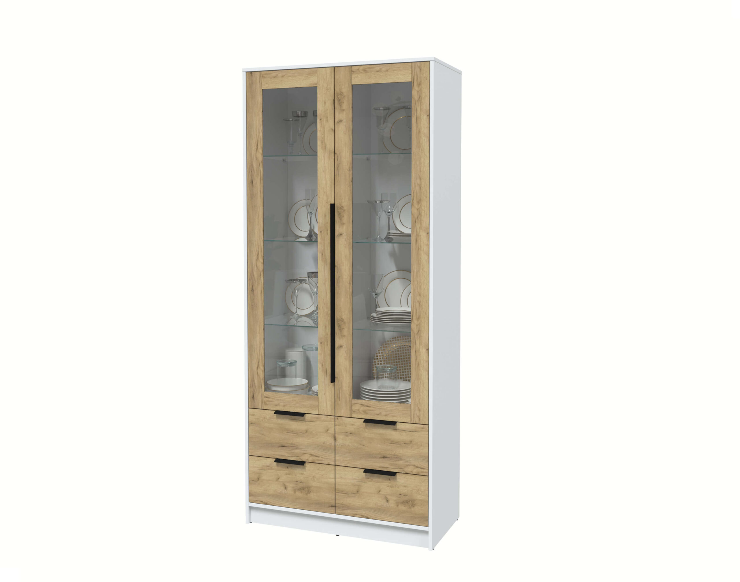 ШКАФ С ВИТРИНОЙ КТ-ШВ2 (БЕЛЫЙ ЛДСП/ ДУБ ЗОЛОТОЙ ЛДСП) Ш918 В2128 Г451 - Yuta.by