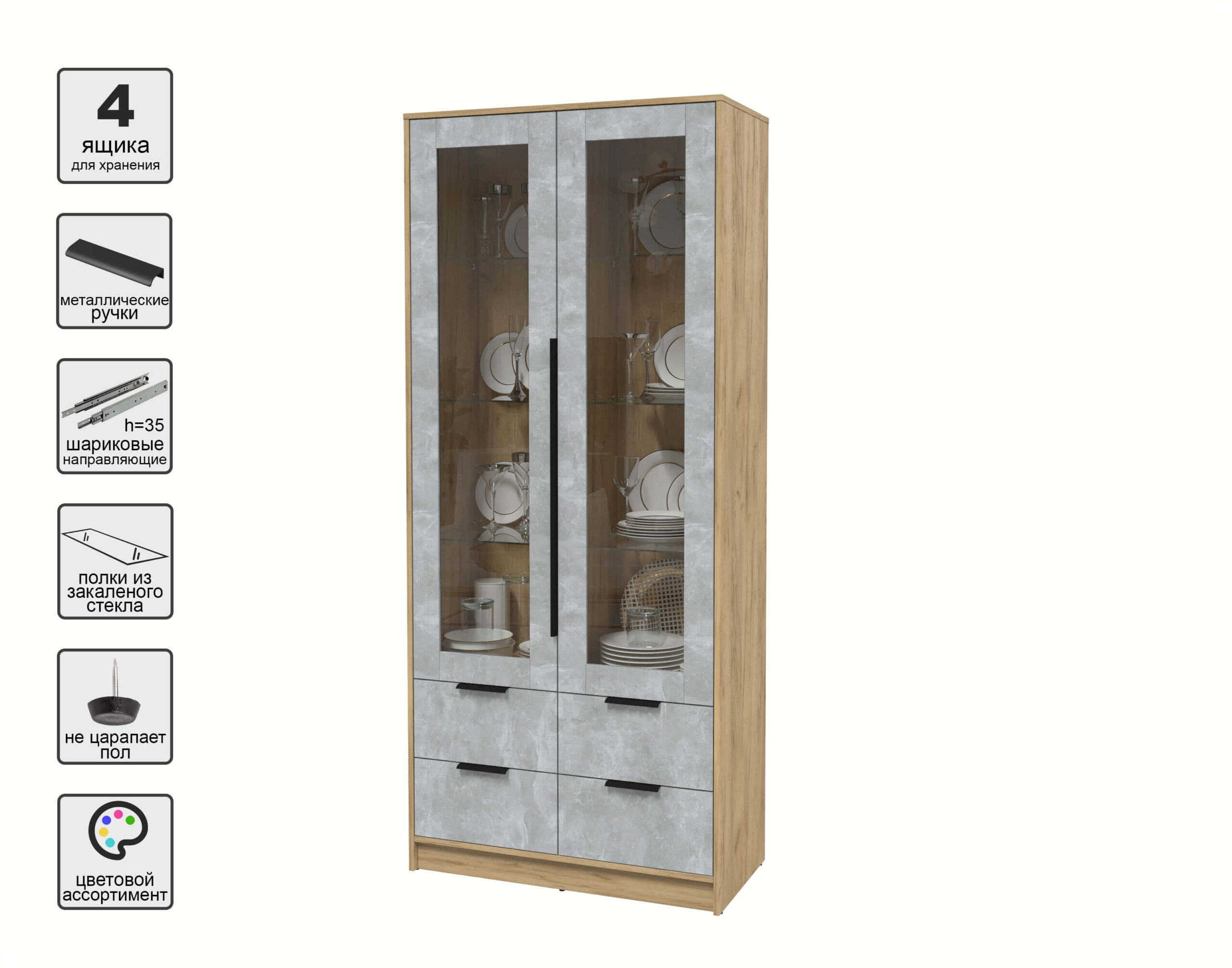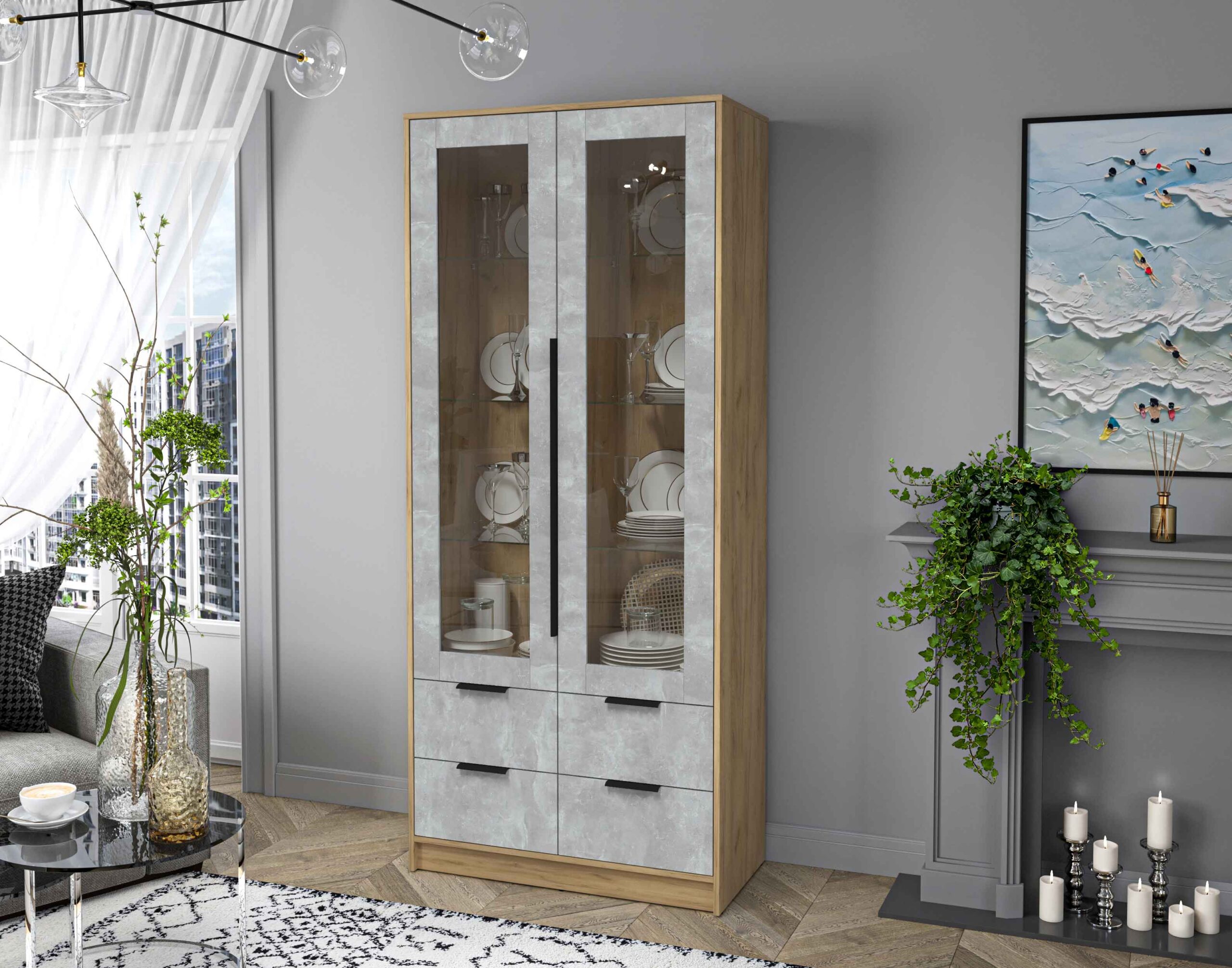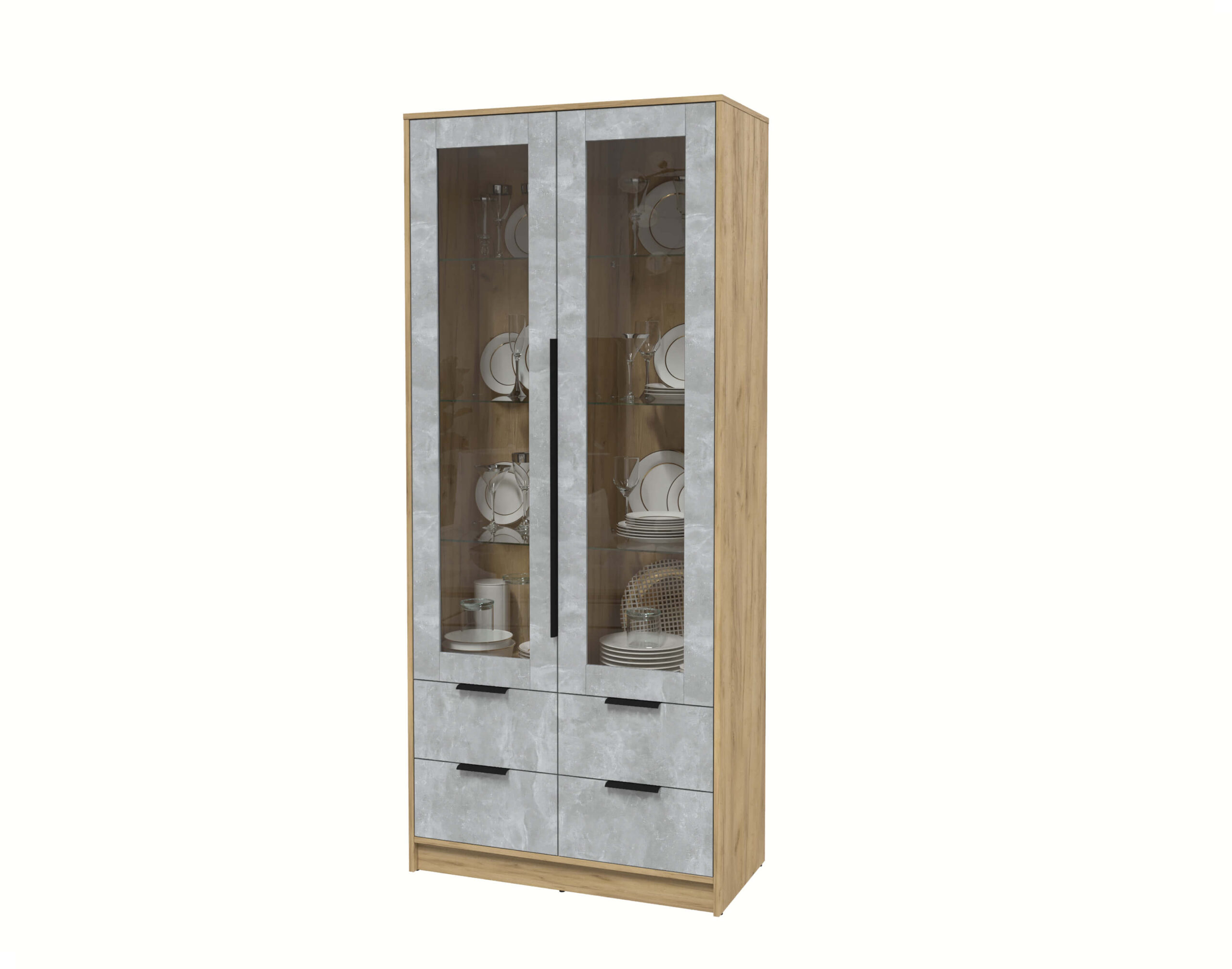 ШКАФ С ВИТРИНОЙ КТ-ШВ2 (ДУБ ЗОЛОТОЙ ЛДСП/ БЕТОН ЛДСП) Ш918 В2128 Г451
