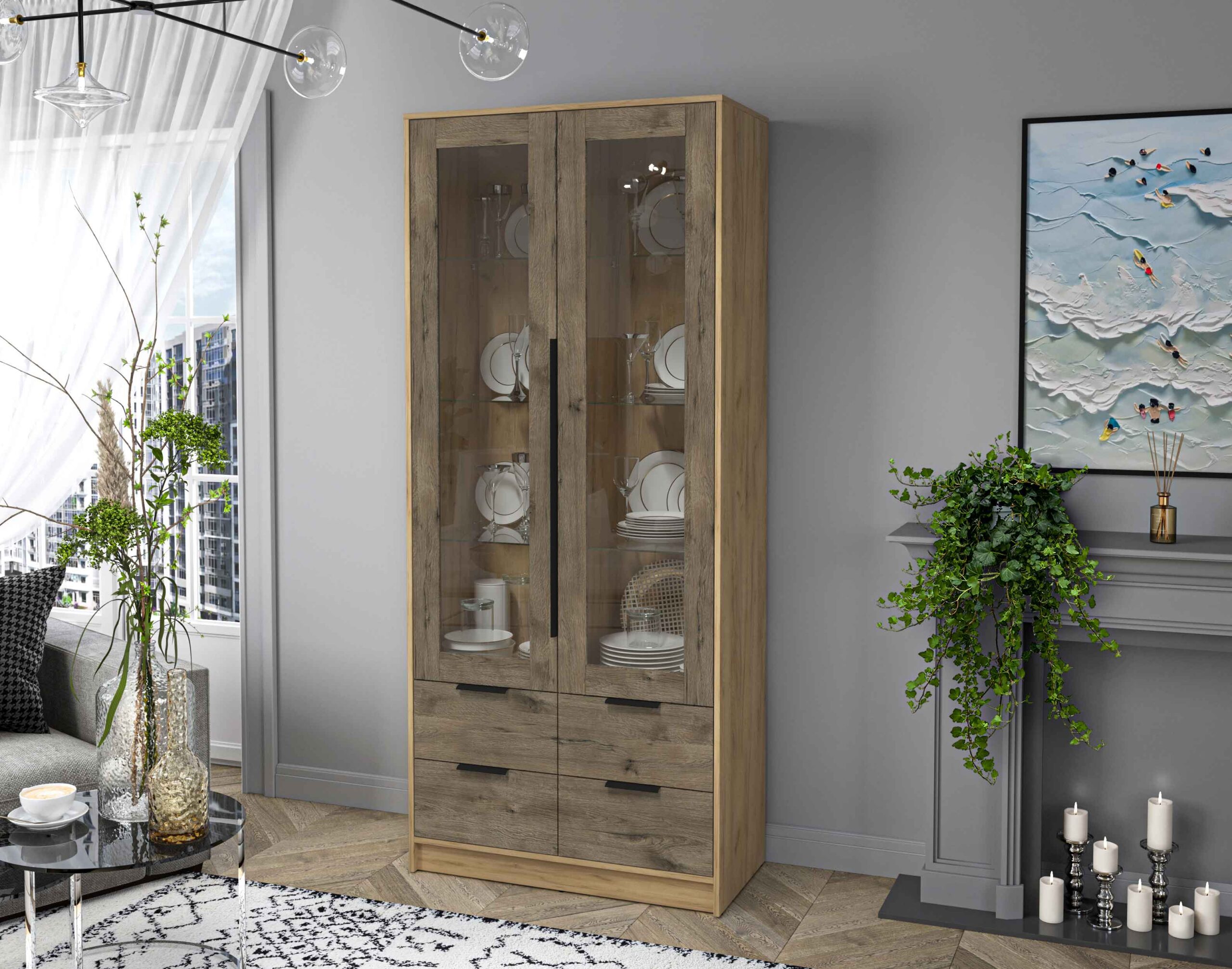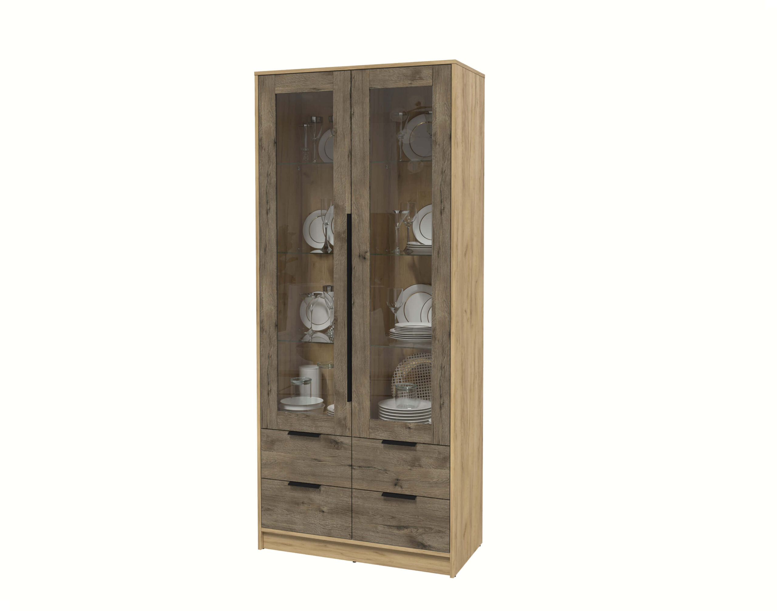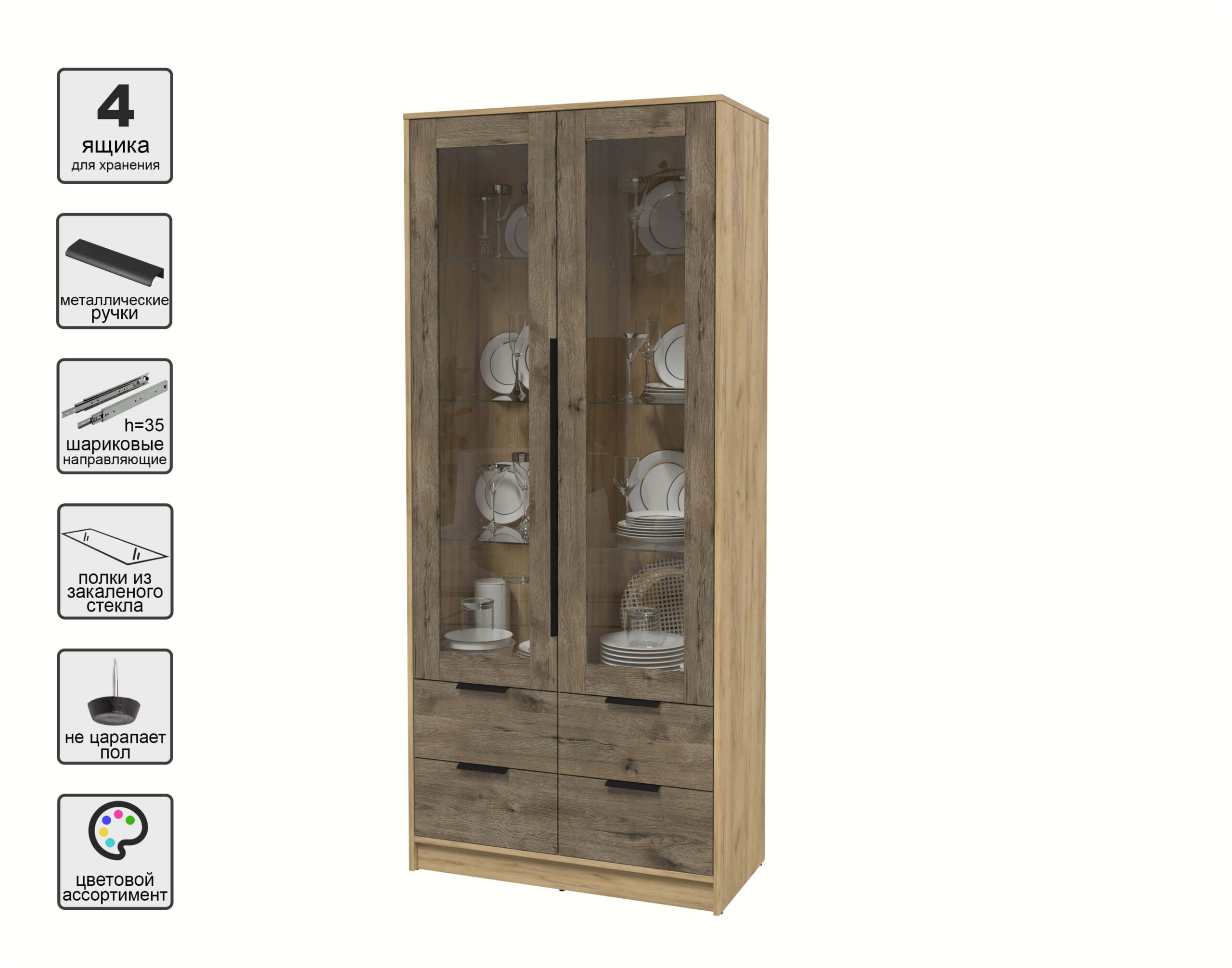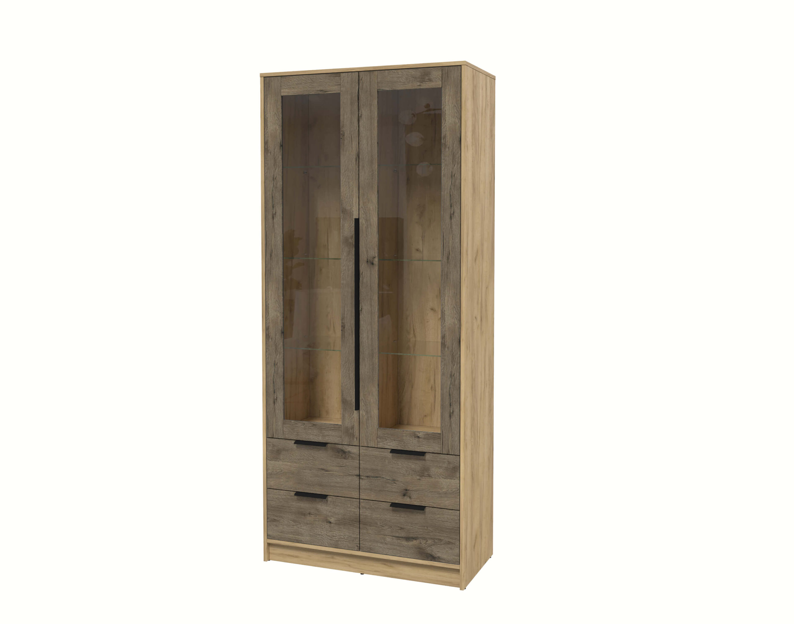 ШКАФ С ВИТРИНОЙ КТ-ШВ2 (ДУБ ЗОЛОТОЙ ЛДСП/ ДУБ ВЕЛЛИНГТОН ЛДСП) Ш918 В2128 Г451 - Yuta.by