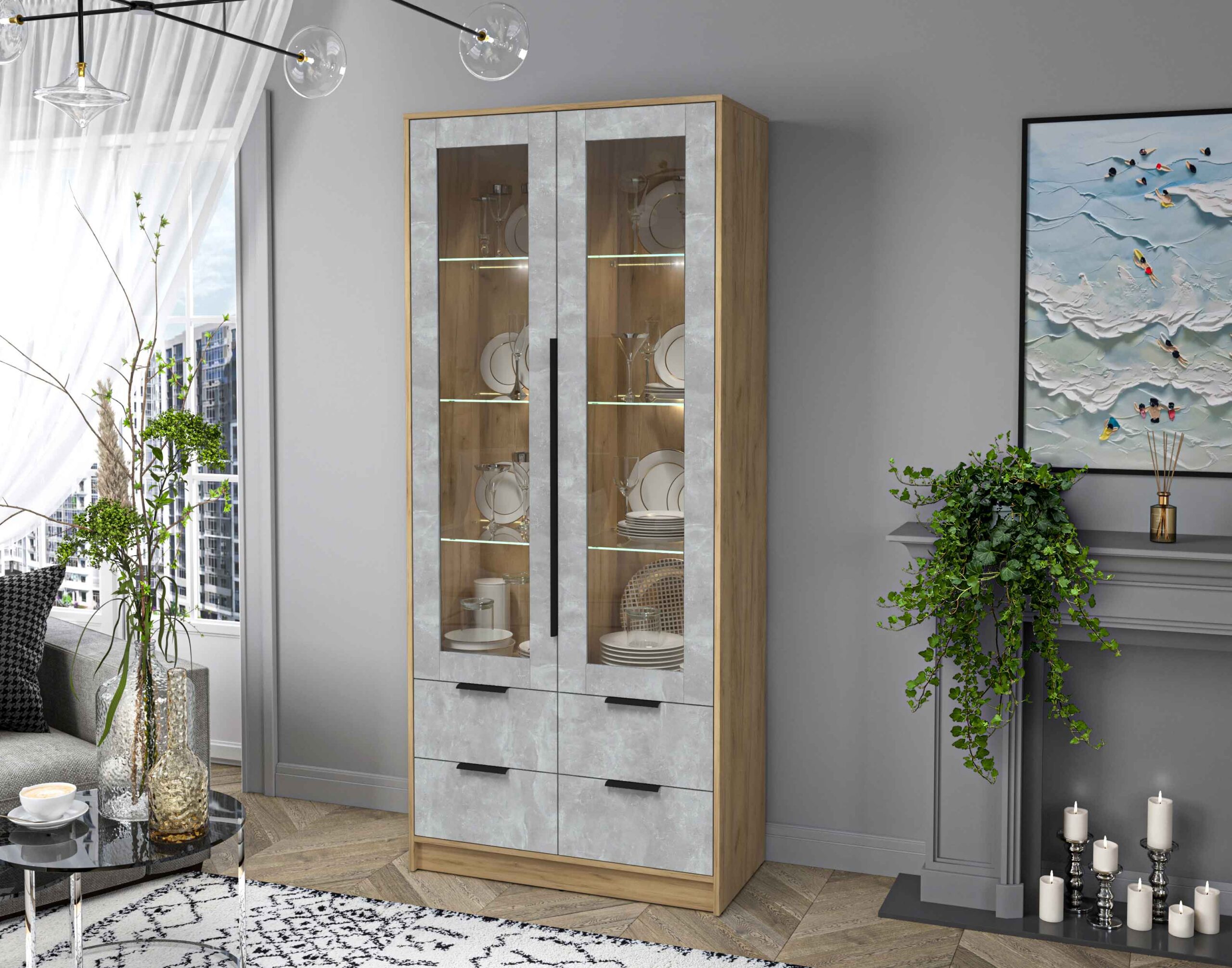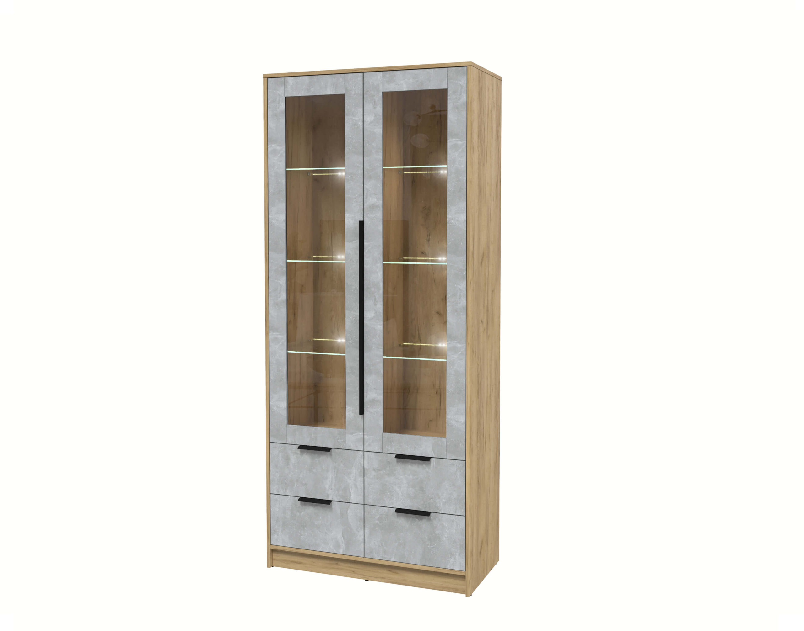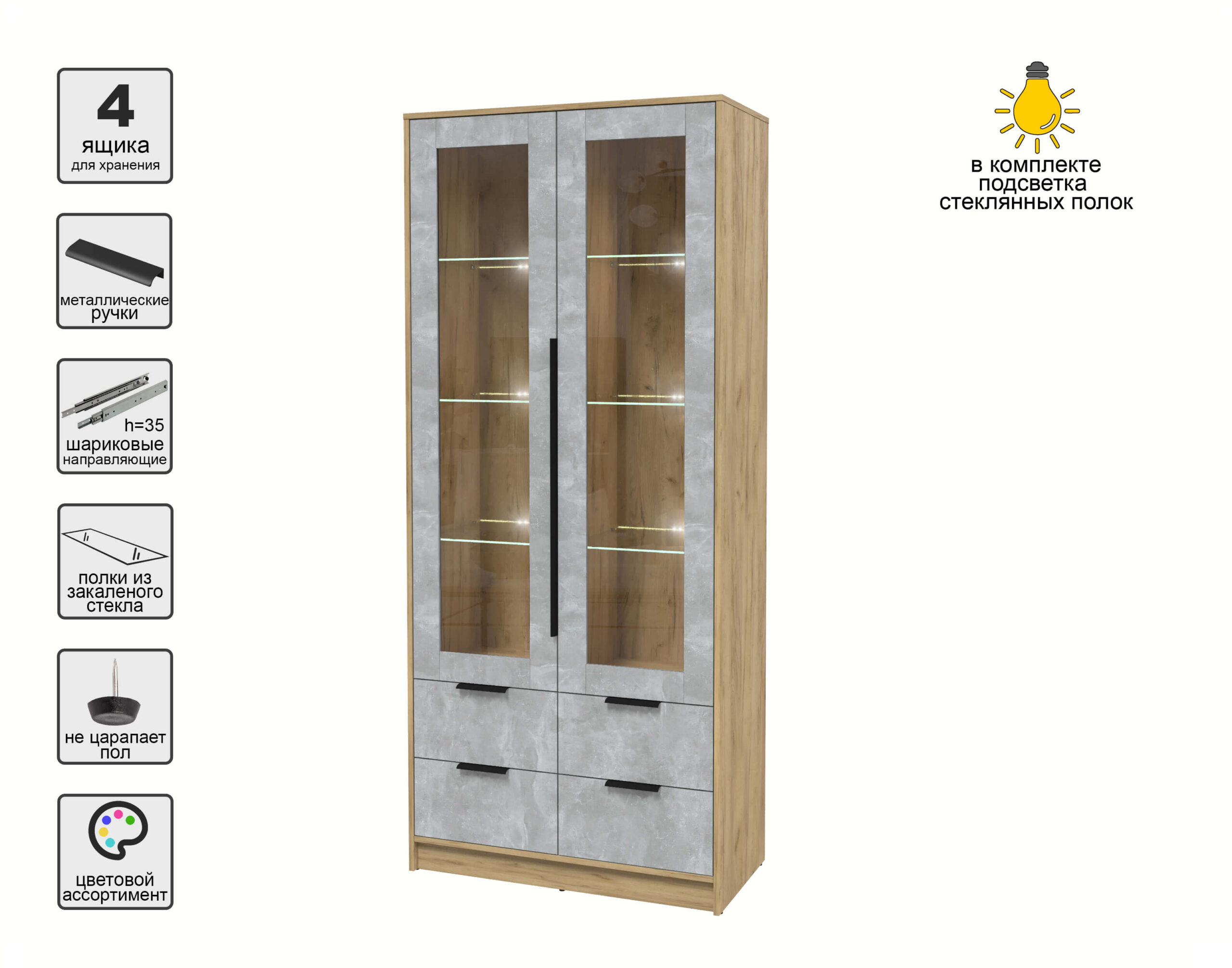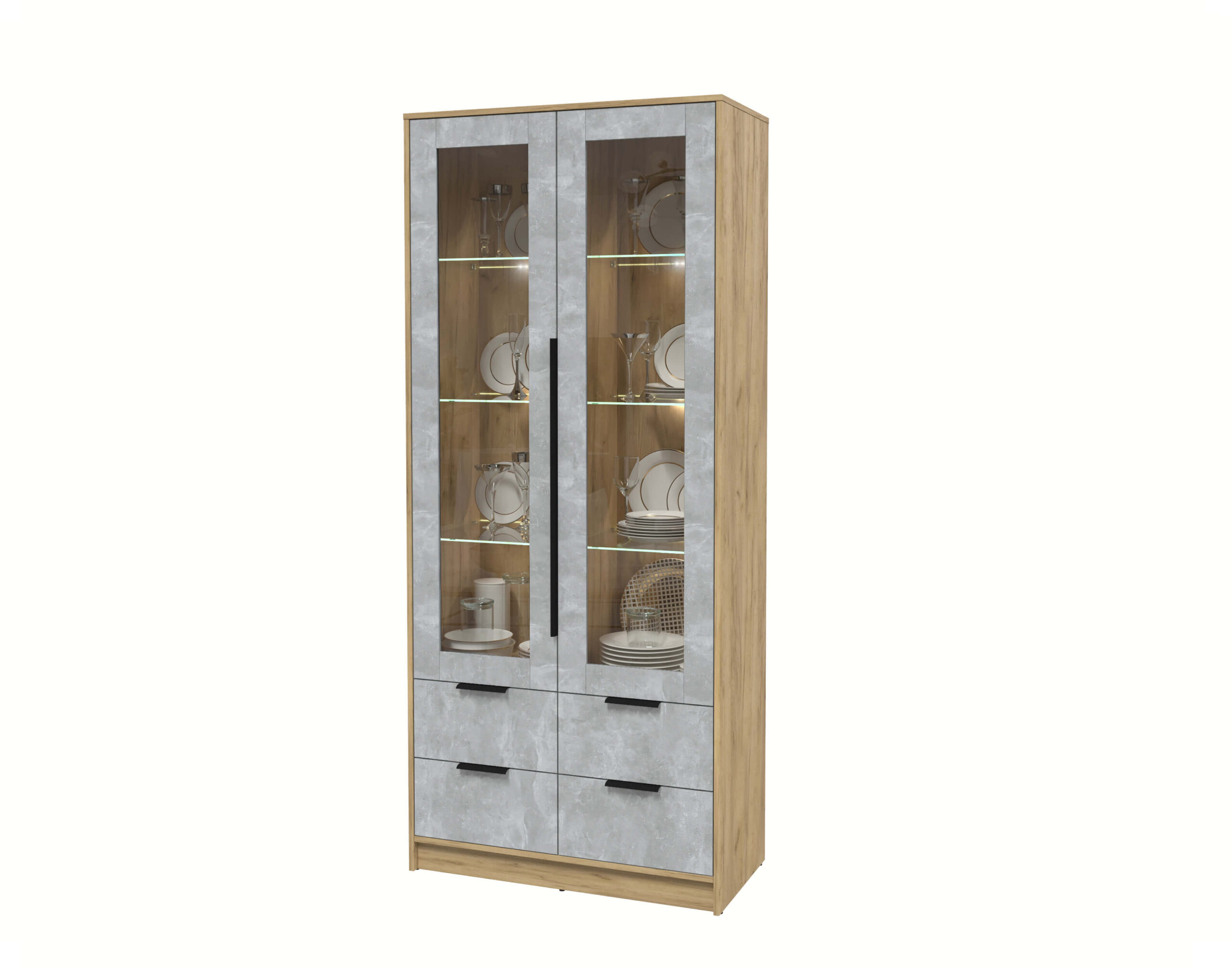 ШКАФ С ВИТРИНОЙ КТ-ШВ2 С ПОДСВЕТКОЙ (ДУБ ЗОЛОТОЙ ЛДСП/ БЕТОН ЛДСП) Ш918 В2128 Г451 - Yuta.by