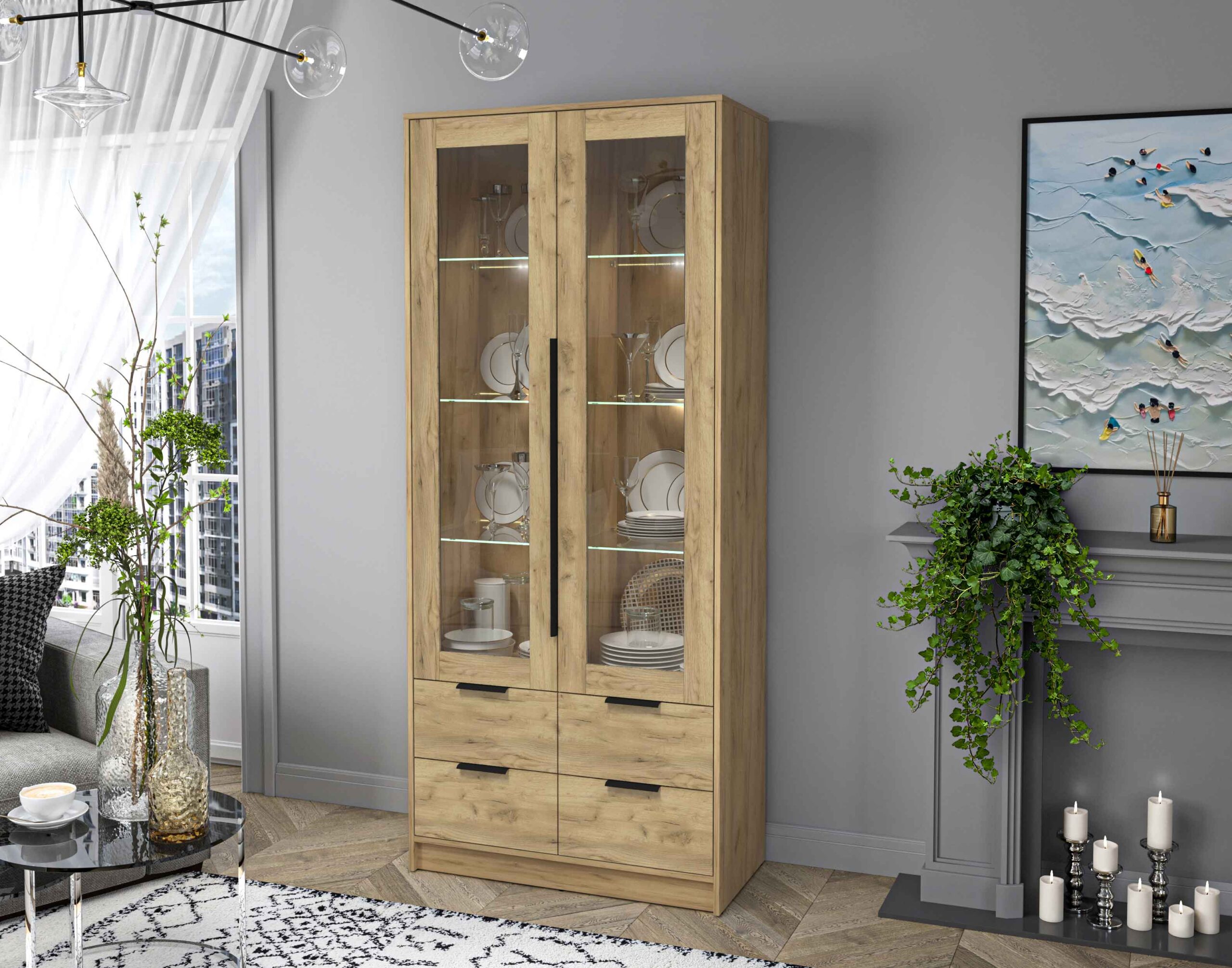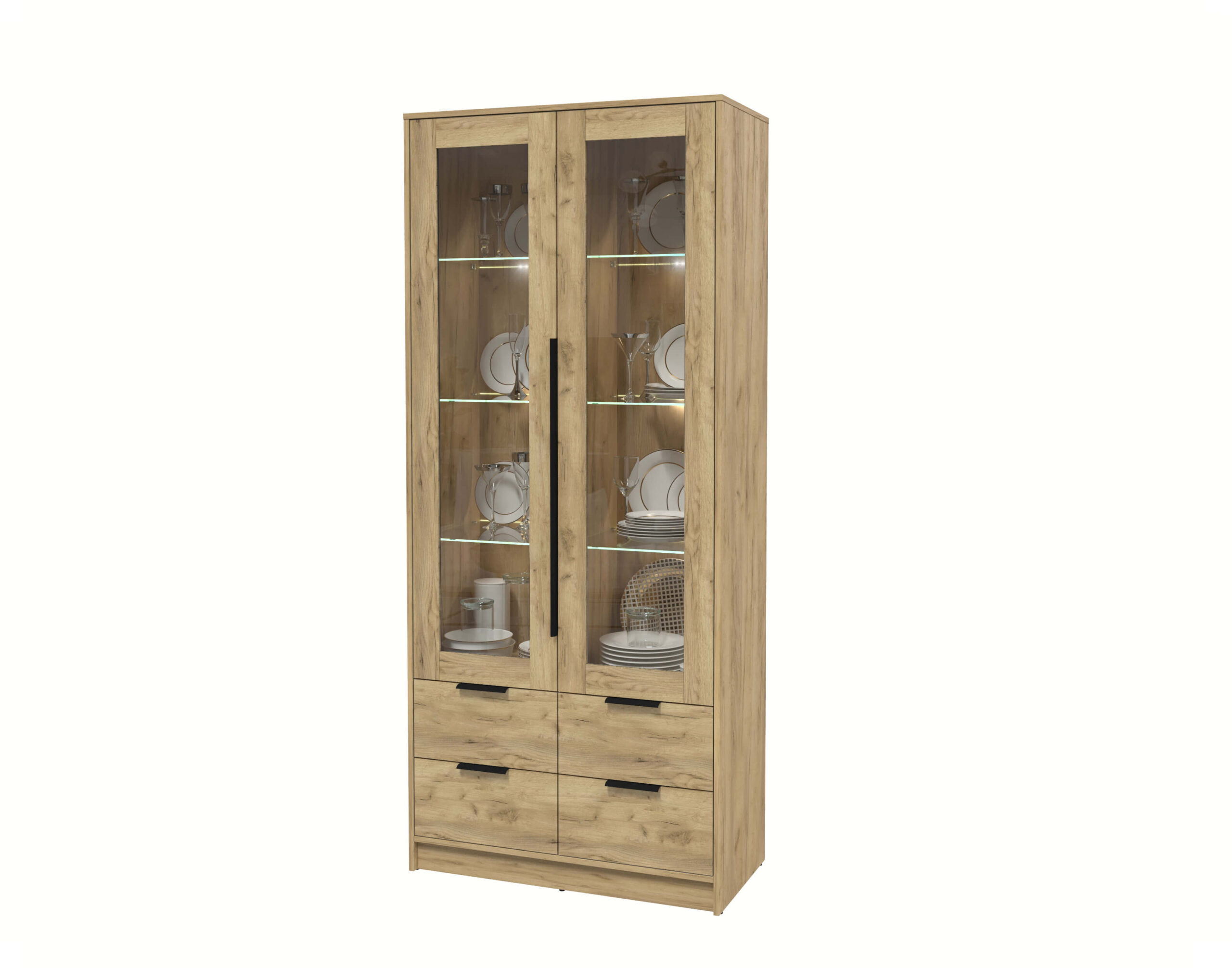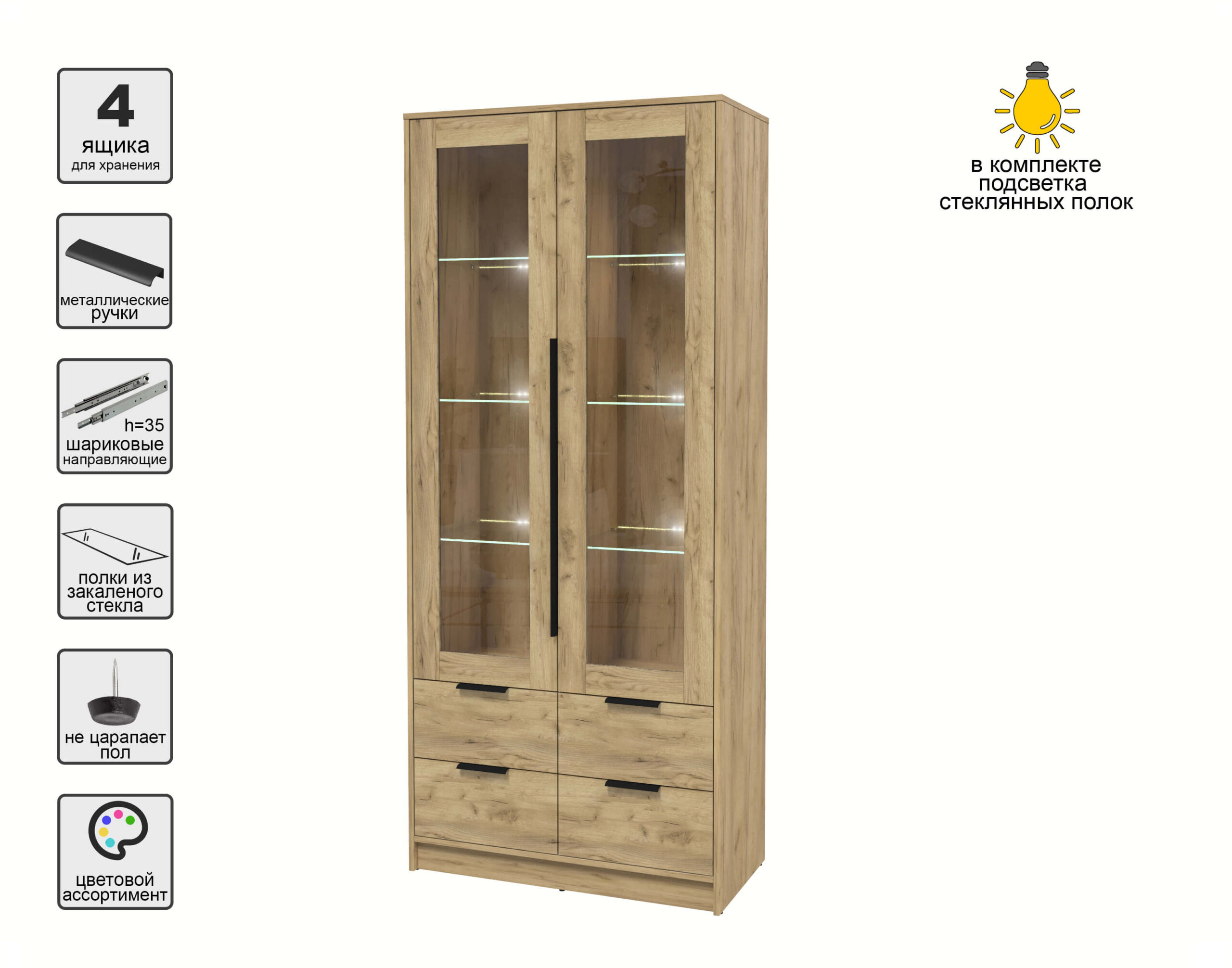 ШКАФ С ВИТРИНОЙ КТ-ШВ2 С ПОДСВЕТКОЙ (ДУБ ЗОЛОТОЙ ЛДСП/ ДУБ ЗОЛОТОЙ ЛДСП) Ш918 В2128 Г451 - Yuta.by