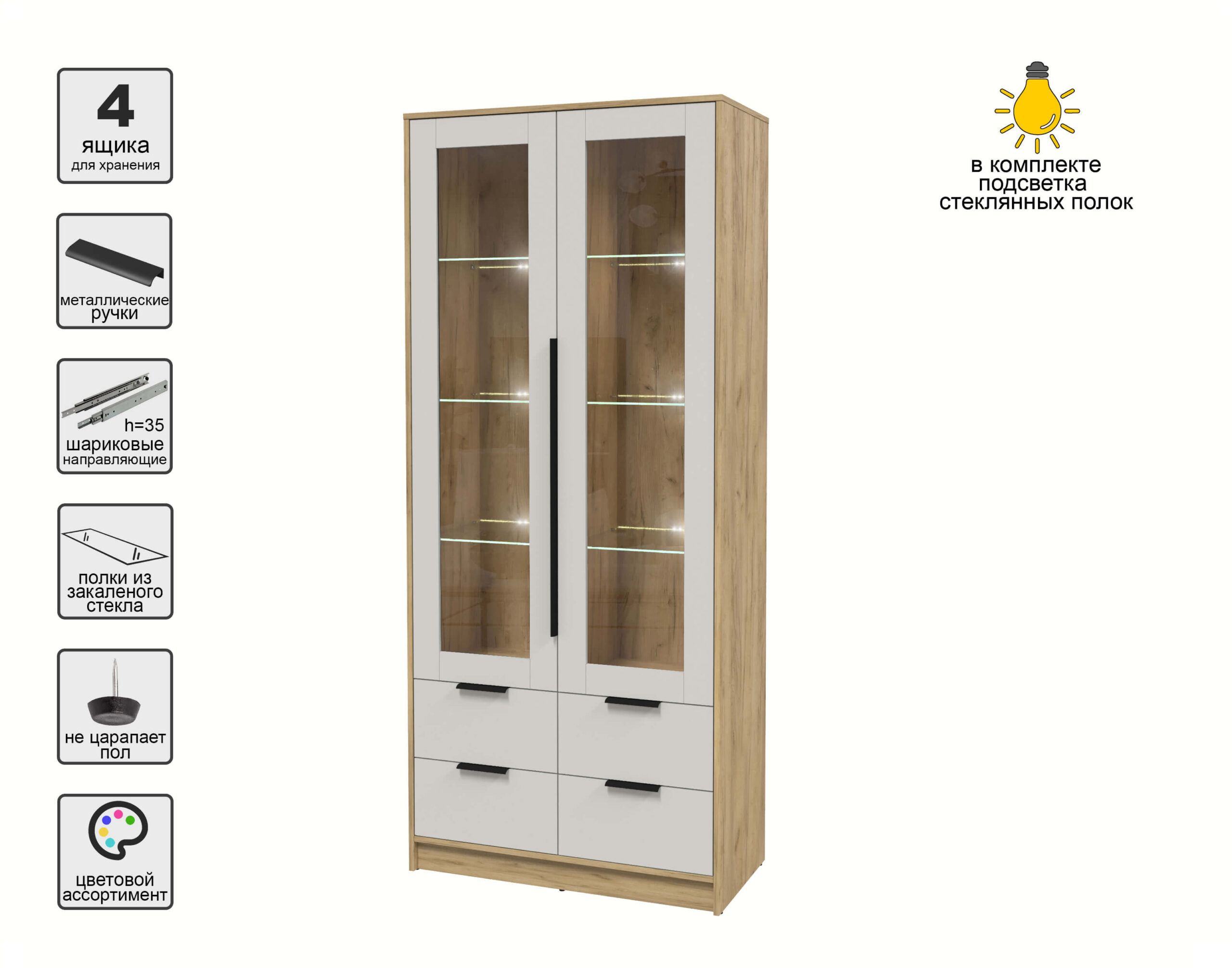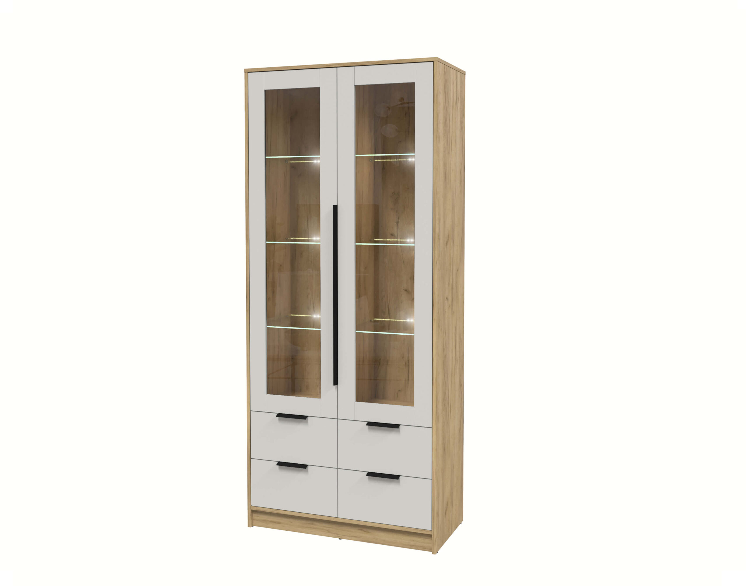 ШКАФ С ВИТРИНОЙ КТ-ШВ2 С ПОДСВЕТКОЙ (ДУБ ЗОЛОТОЙ ЛДСП/ ПЕРСИДСКИЙ ЖЕМЧУГ ЛДСП) Ш918 В2128 Г451