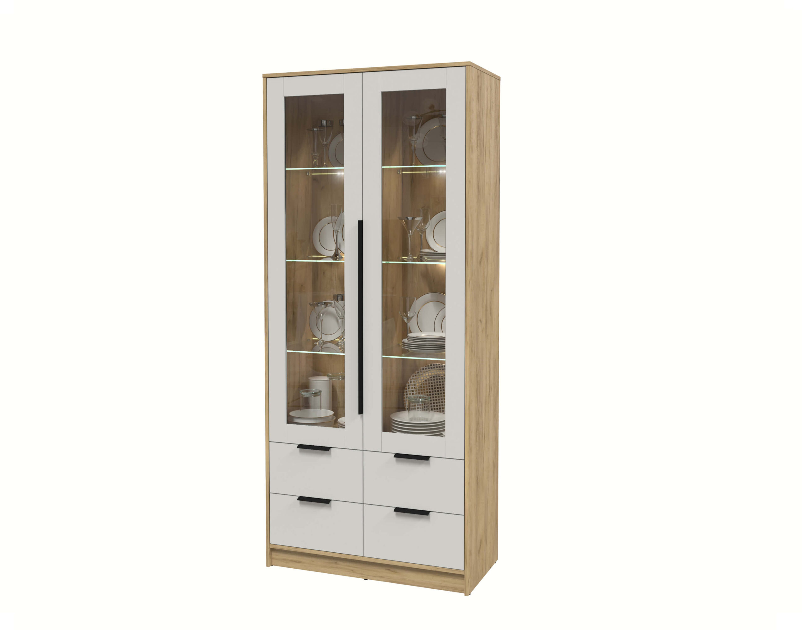 ШКАФ С ВИТРИНОЙ КТ-ШВ2 С ПОДСВЕТКОЙ (ДУБ ЗОЛОТОЙ ЛДСП/ ПЕРСИДСКИЙ ЖЕМЧУГ ЛДСП) Ш918 В2128 Г451 - Yuta.by