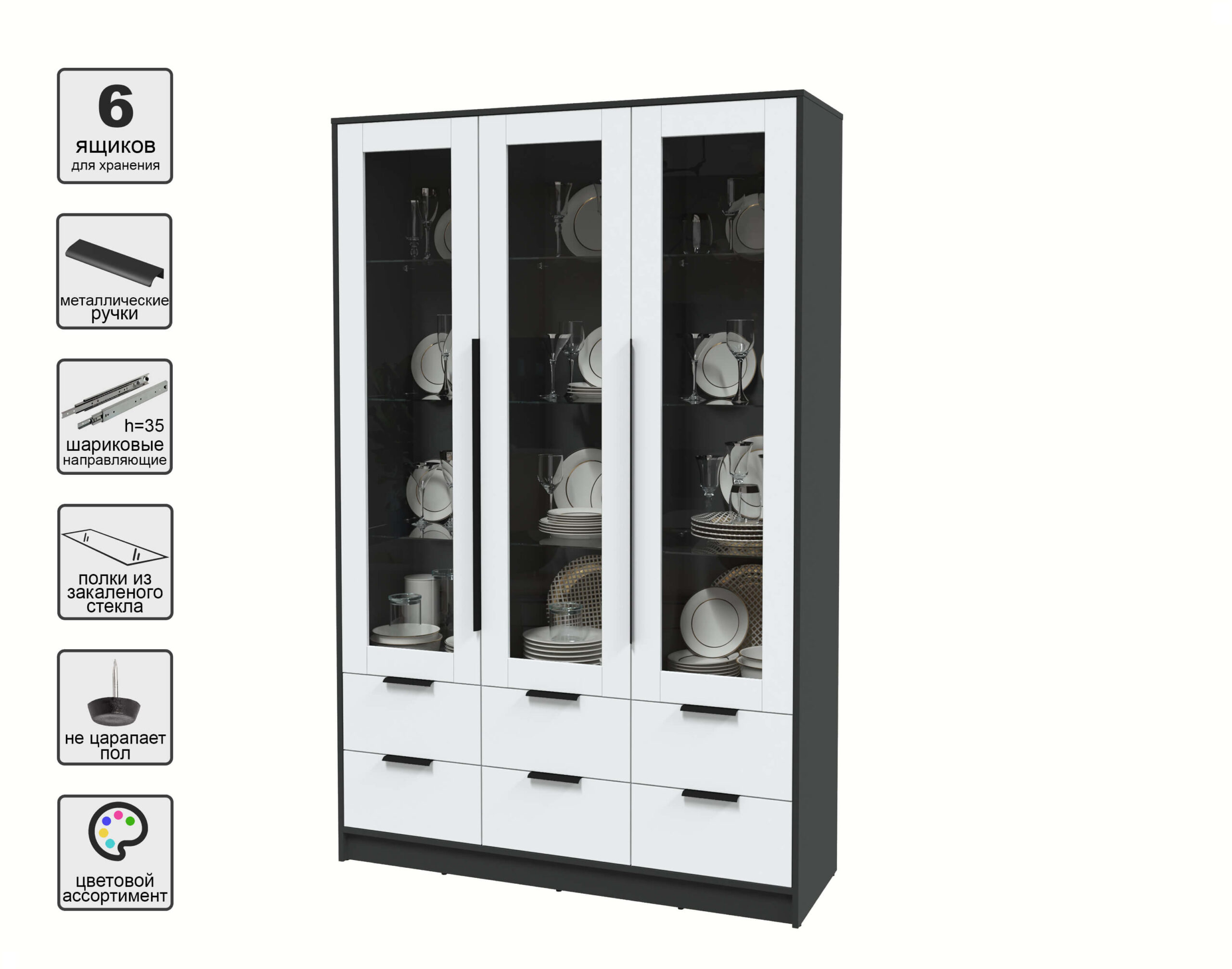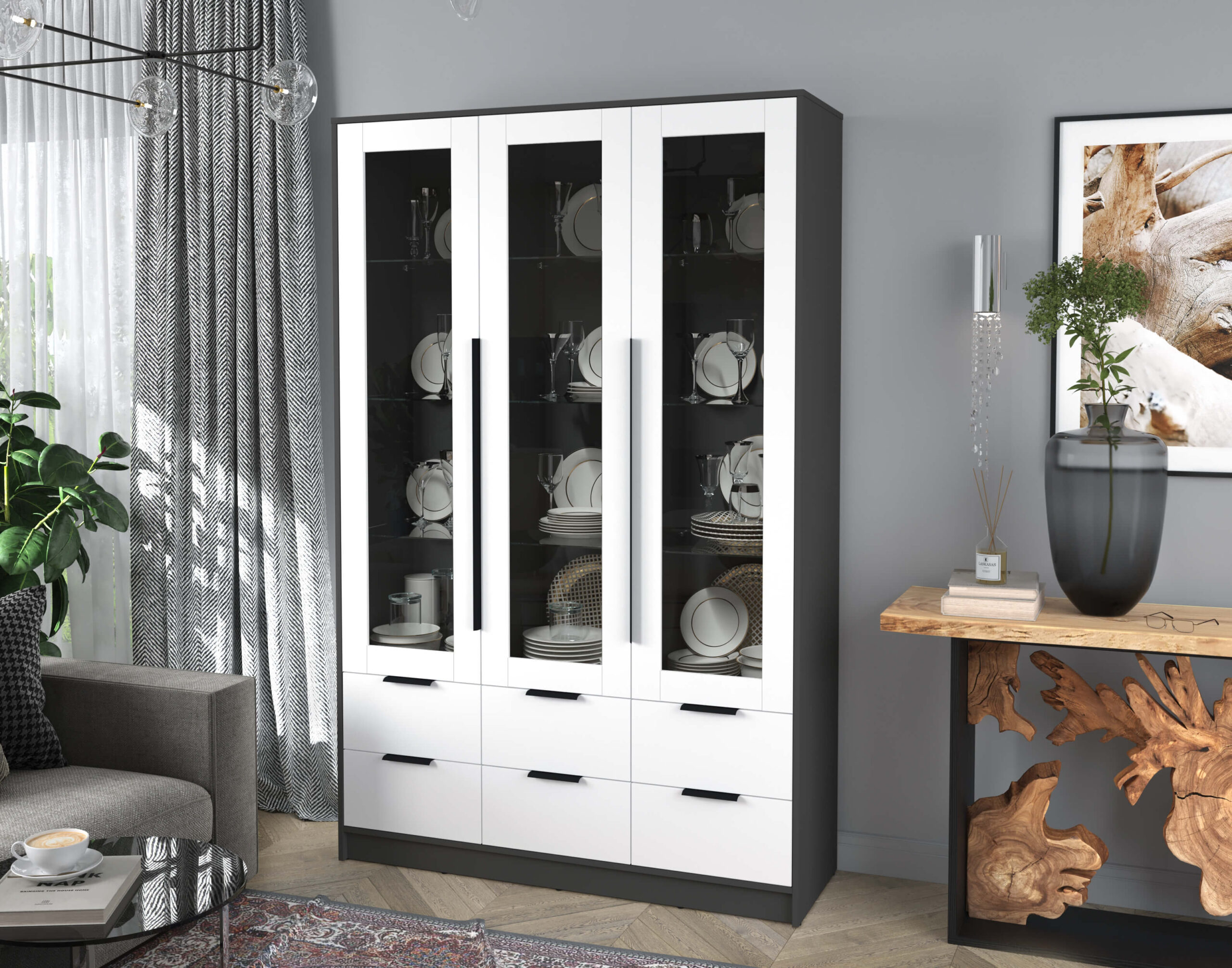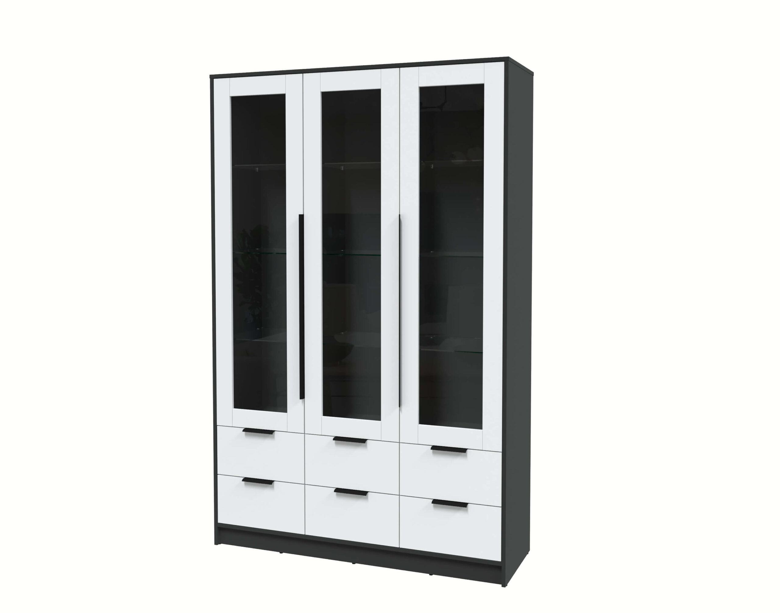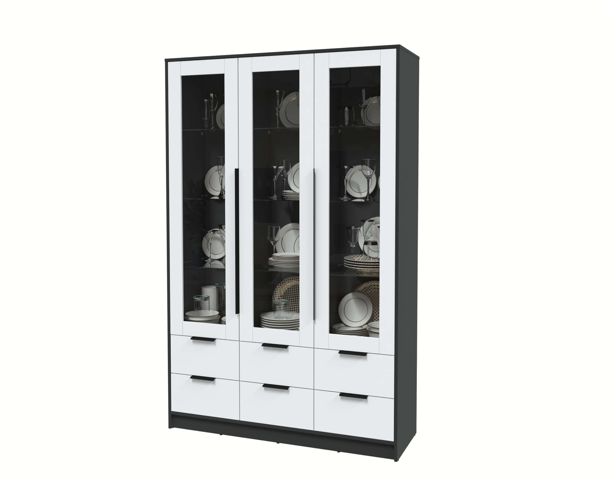 ШКАФ С ВИТРИНОЙ КТ-ШВ3 (АНТРАЦИТ ЛДСП/ БЕЛЫЙ ПЛАТИНУМ ЛДСП) Ш1360 В2128 Г451 - Yuta.by