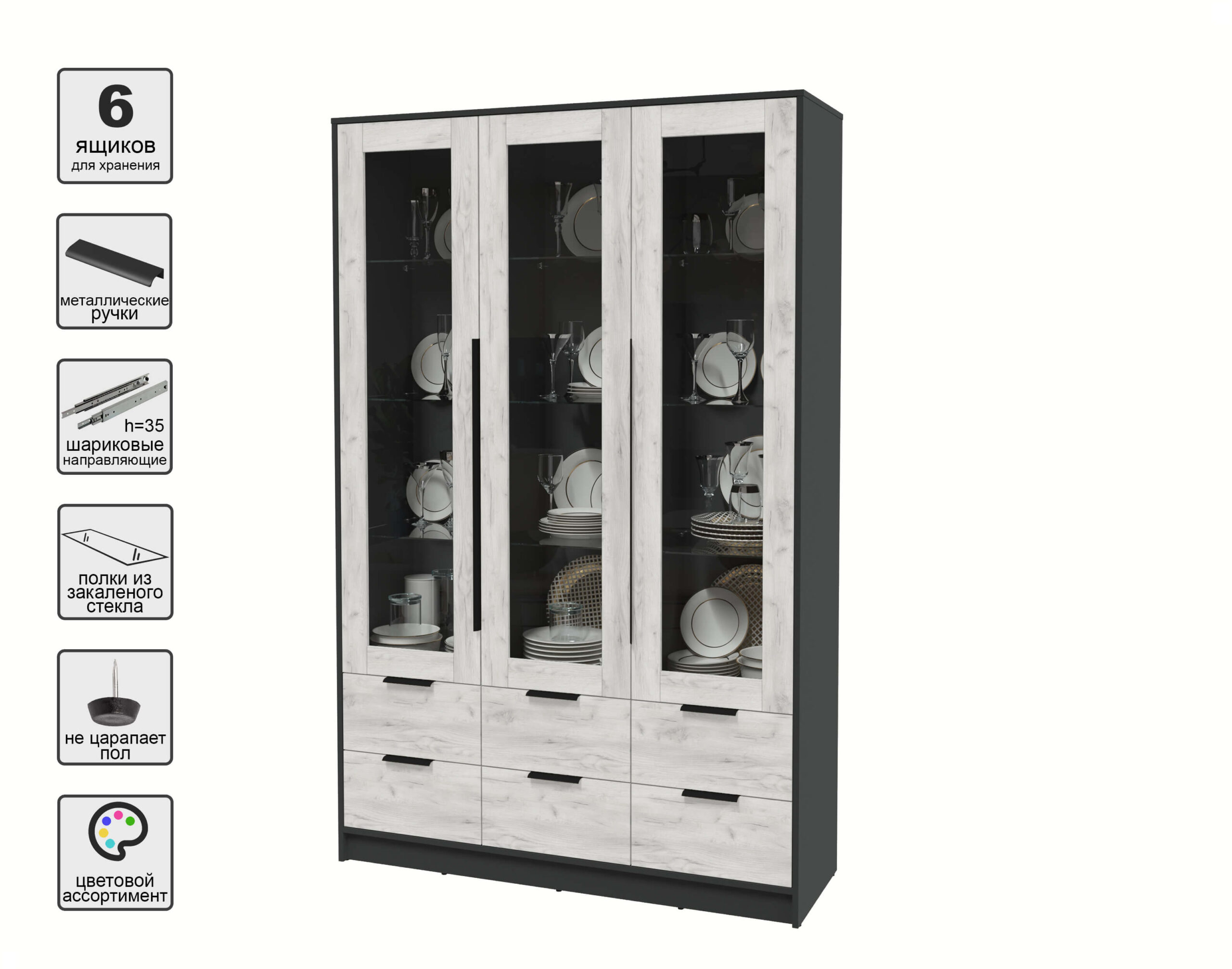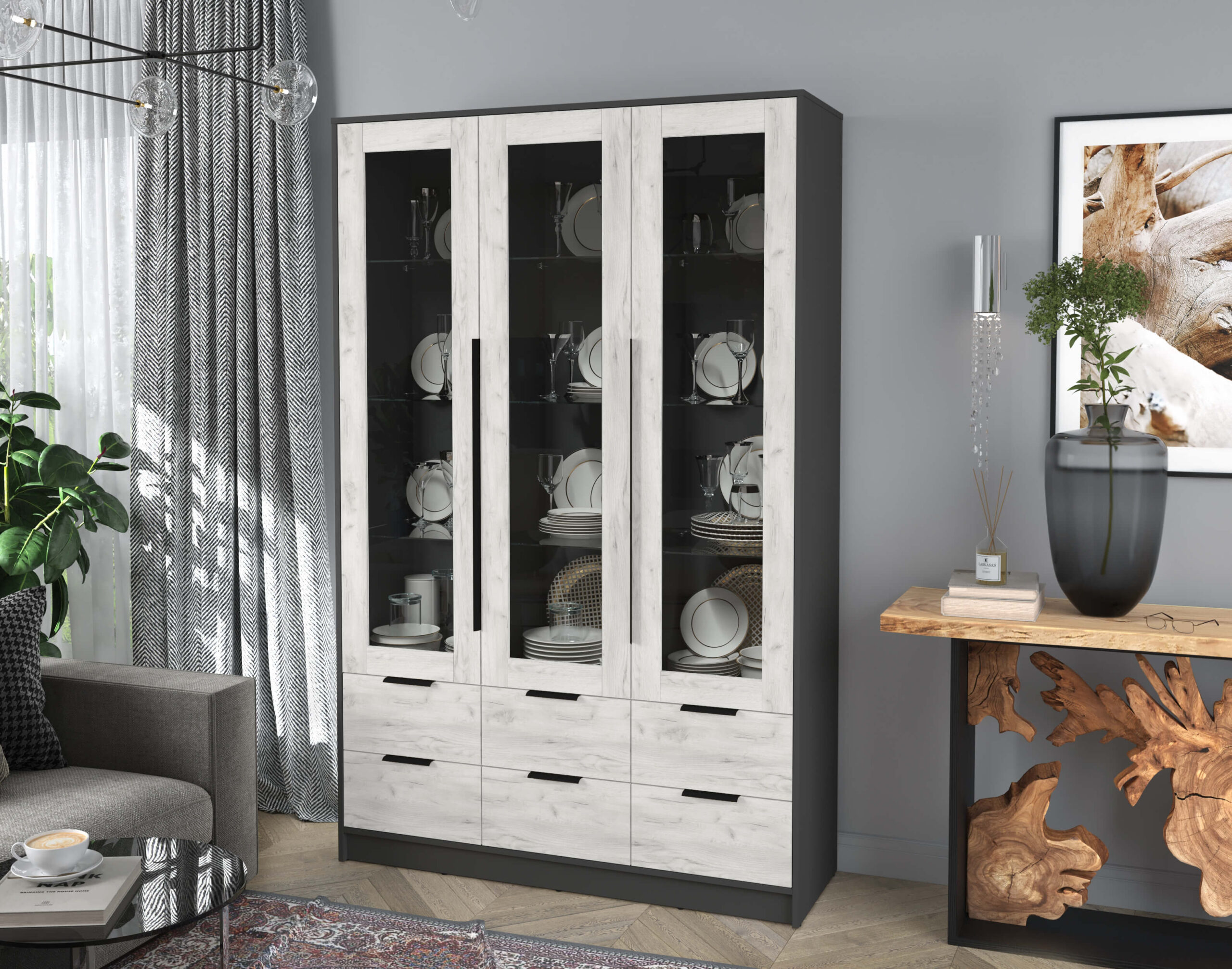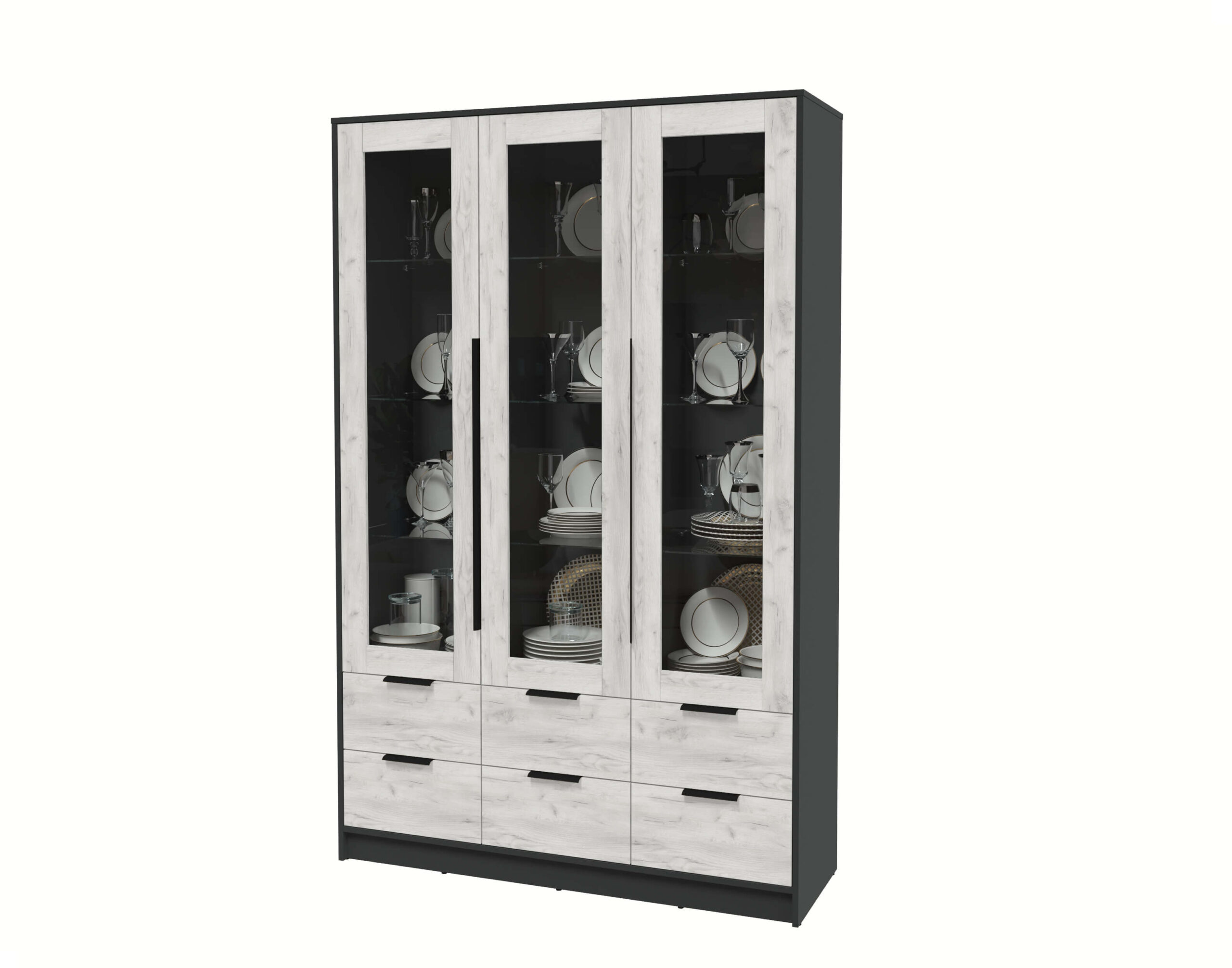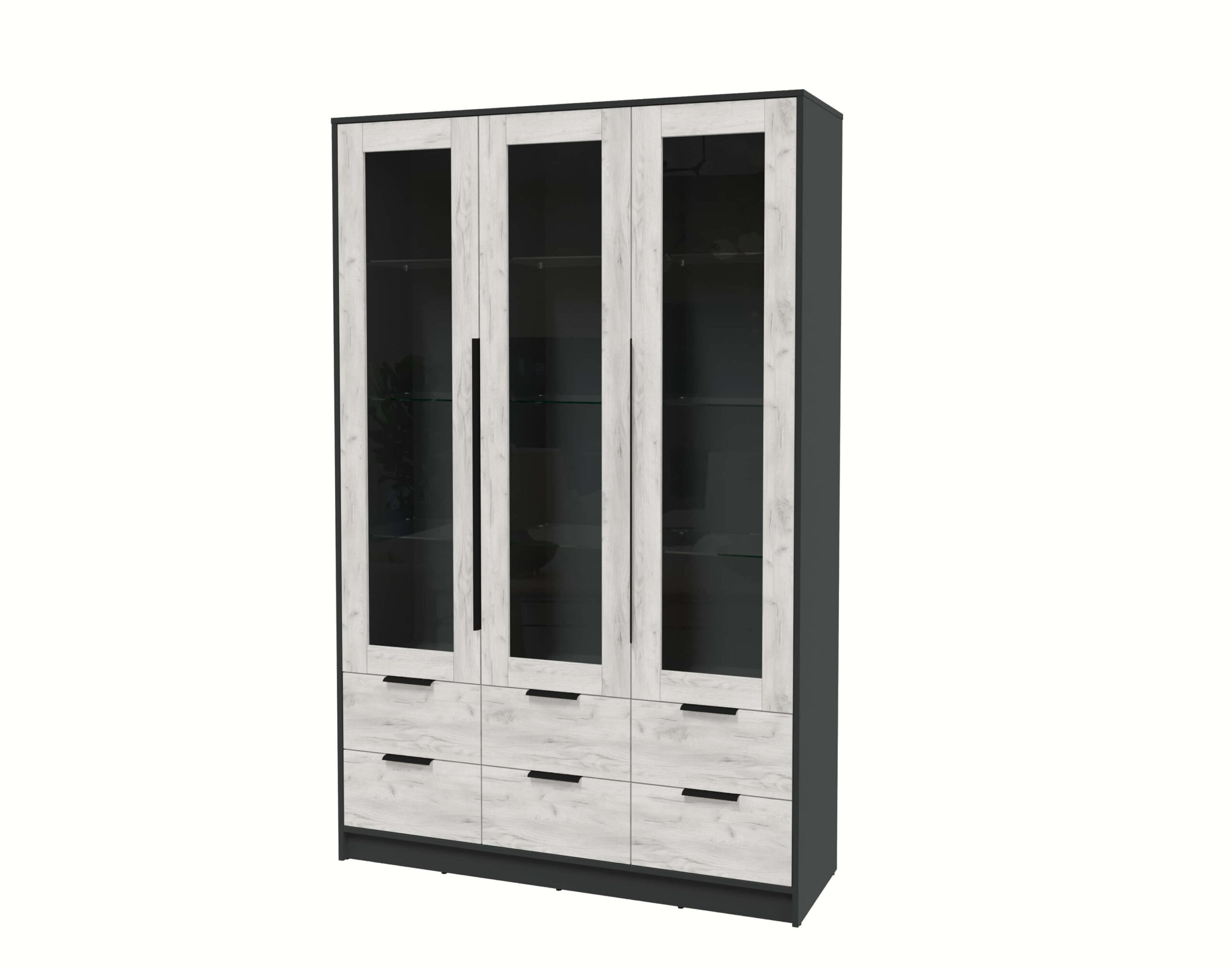 ШКАФ С ВИТРИНОЙ КТ-ШВ3 (АНТРАЦИТ ЛДСП/ ДУБ БЕЛЫЙ ЛДСП) Ш1360 В2128 Г451 - Yuta.by