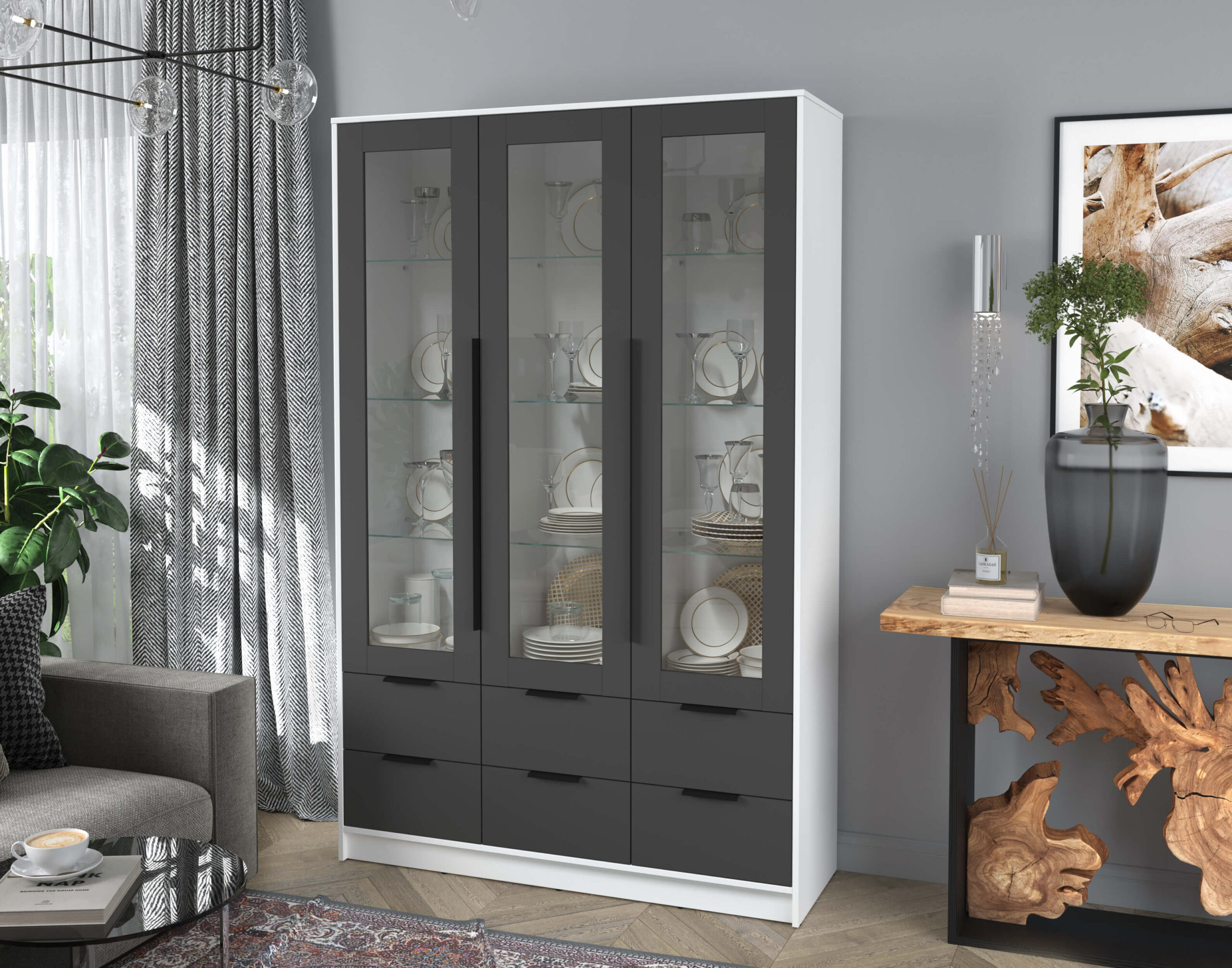ШКАФ С ВИТРИНОЙ КТ-ШВ3 (БЕЛЫЙ ЛДСП/ АНТРАЦИТ ЛДСП) Ш1360 В2128 Г451