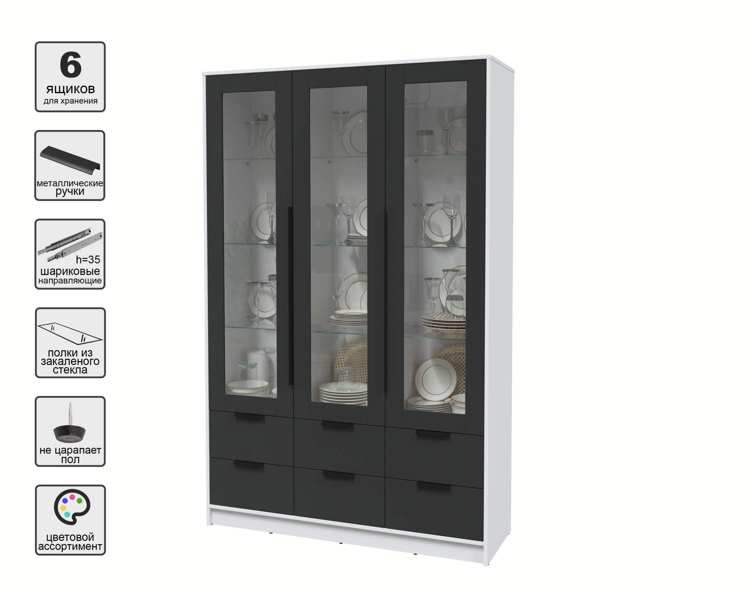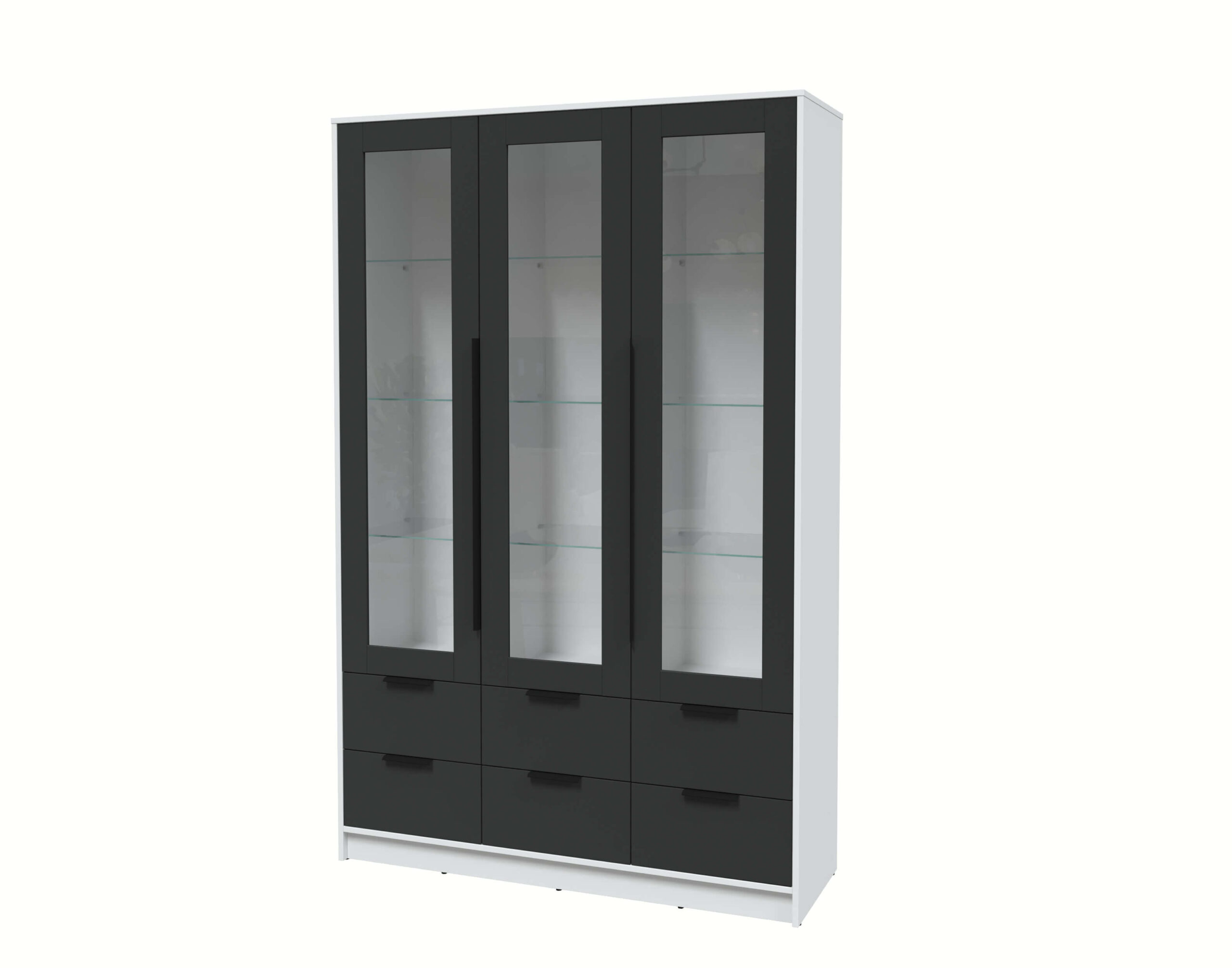 ШКАФ С ВИТРИНОЙ КТ-ШВ3 (БЕЛЫЙ ЛДСП/ АНТРАЦИТ ЛДСП) Ш1360 В2128 Г451 - Yuta.by
