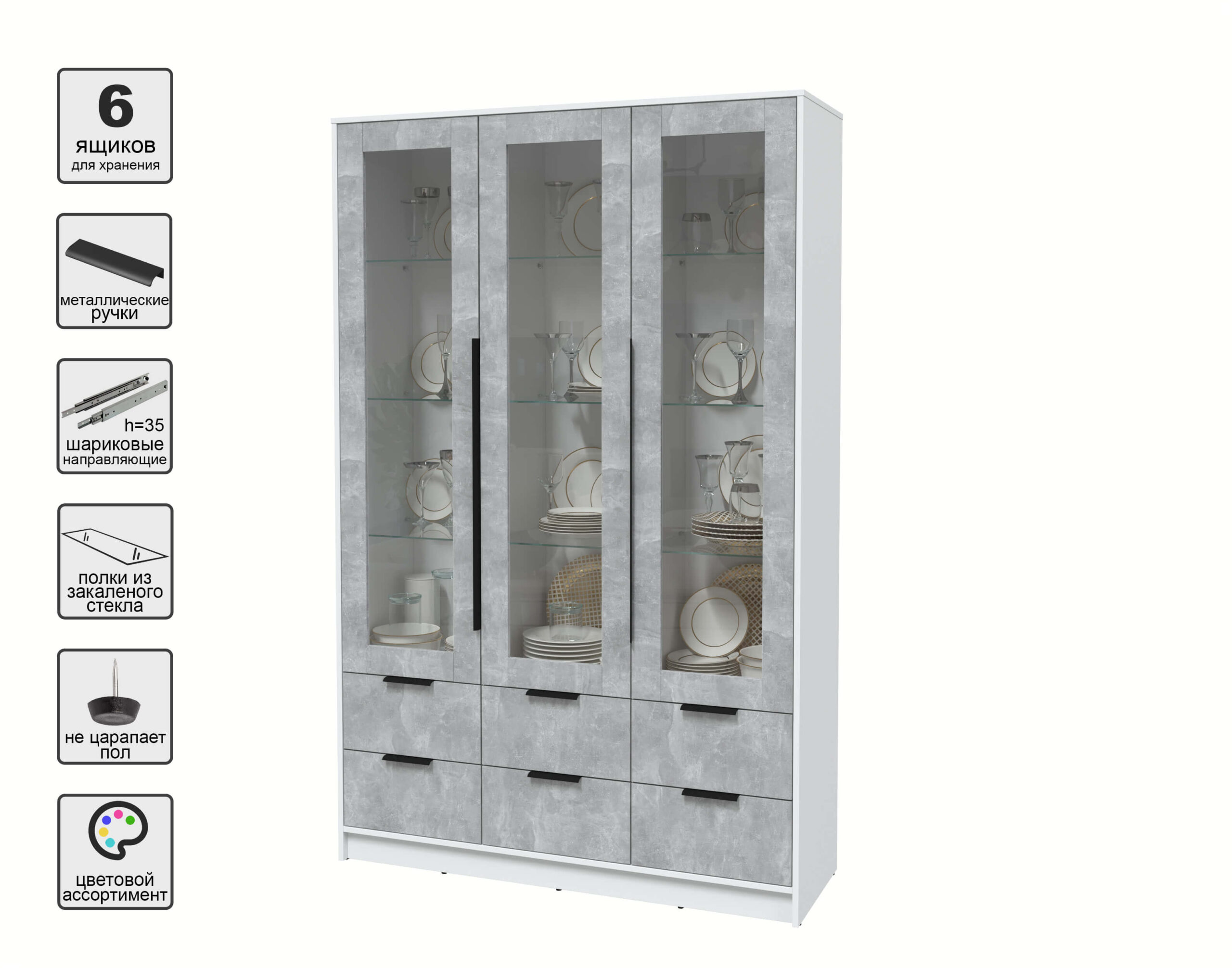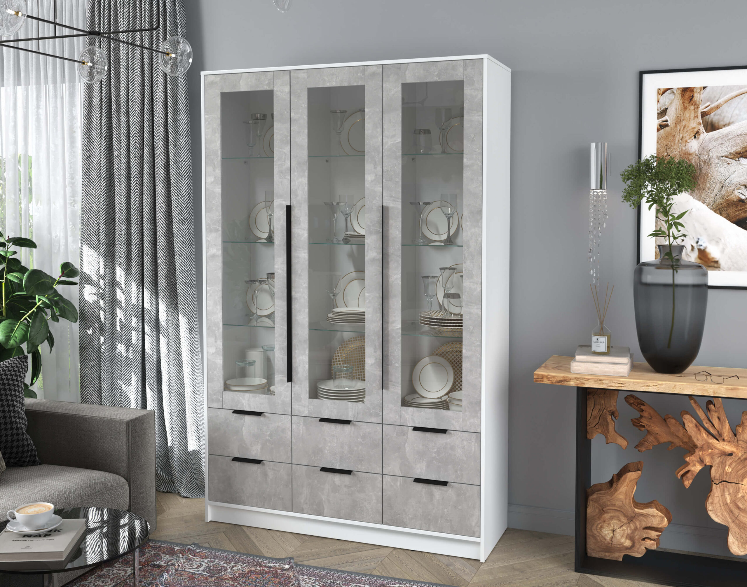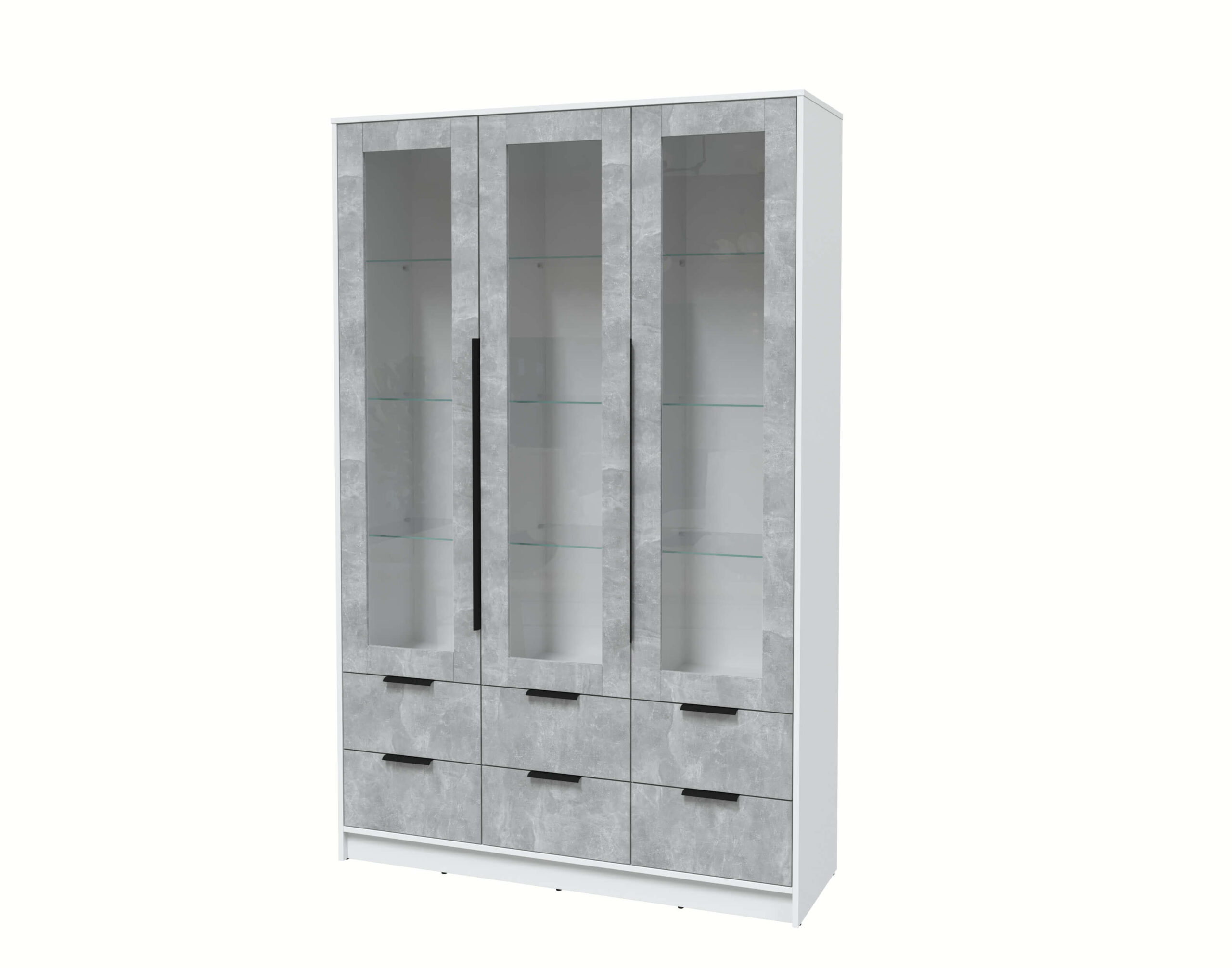 ШКАФ С ВИТРИНОЙ КТ-ШВ3 (БЕЛЫЙ ЛДСП/ БЕТОН ЛДСП) Ш1360 В2128 Г451 - Yuta.by