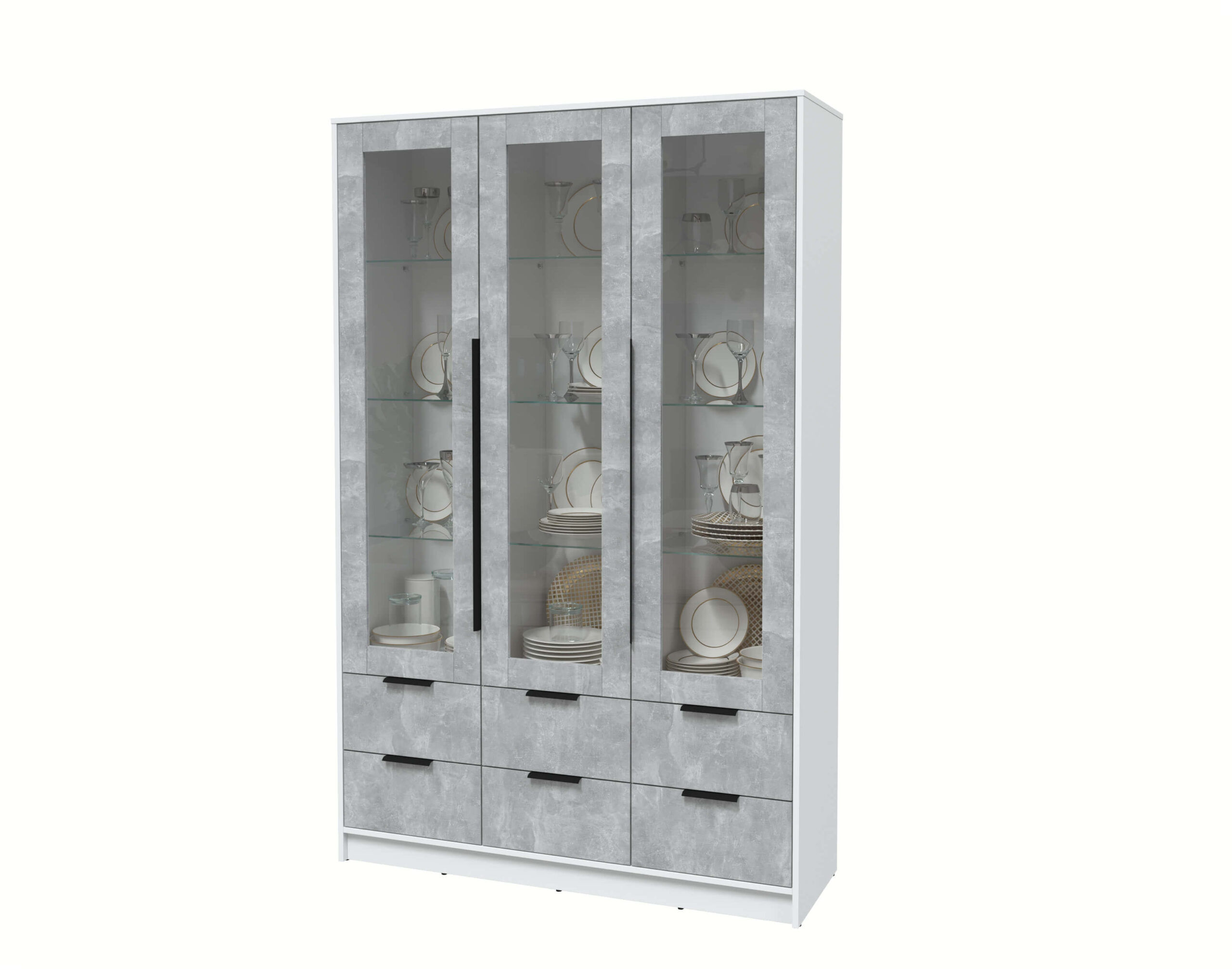 ШКАФ С ВИТРИНОЙ КТ-ШВ3 (БЕЛЫЙ ЛДСП/ БЕТОН ЛДСП) Ш1360 В2128 Г451