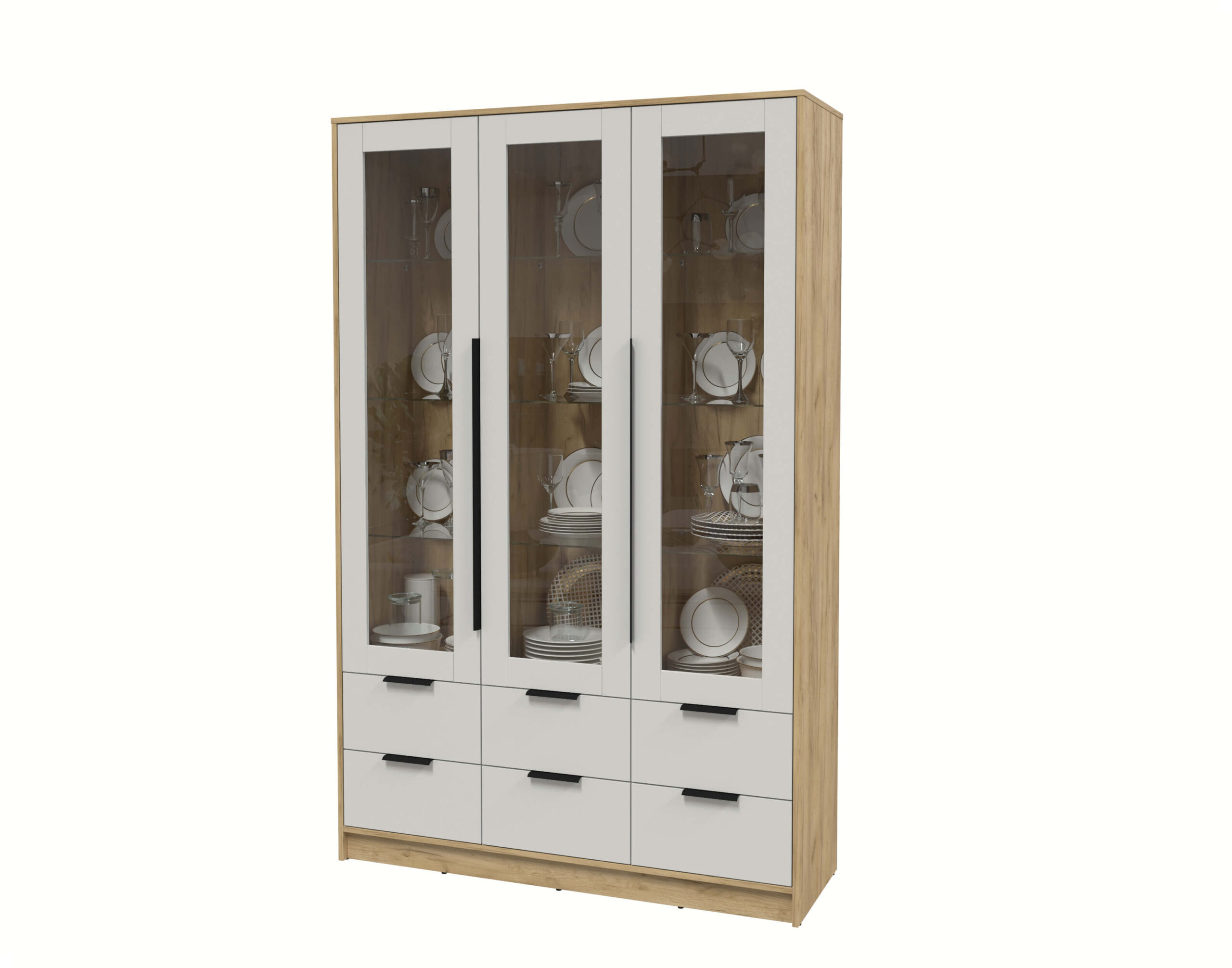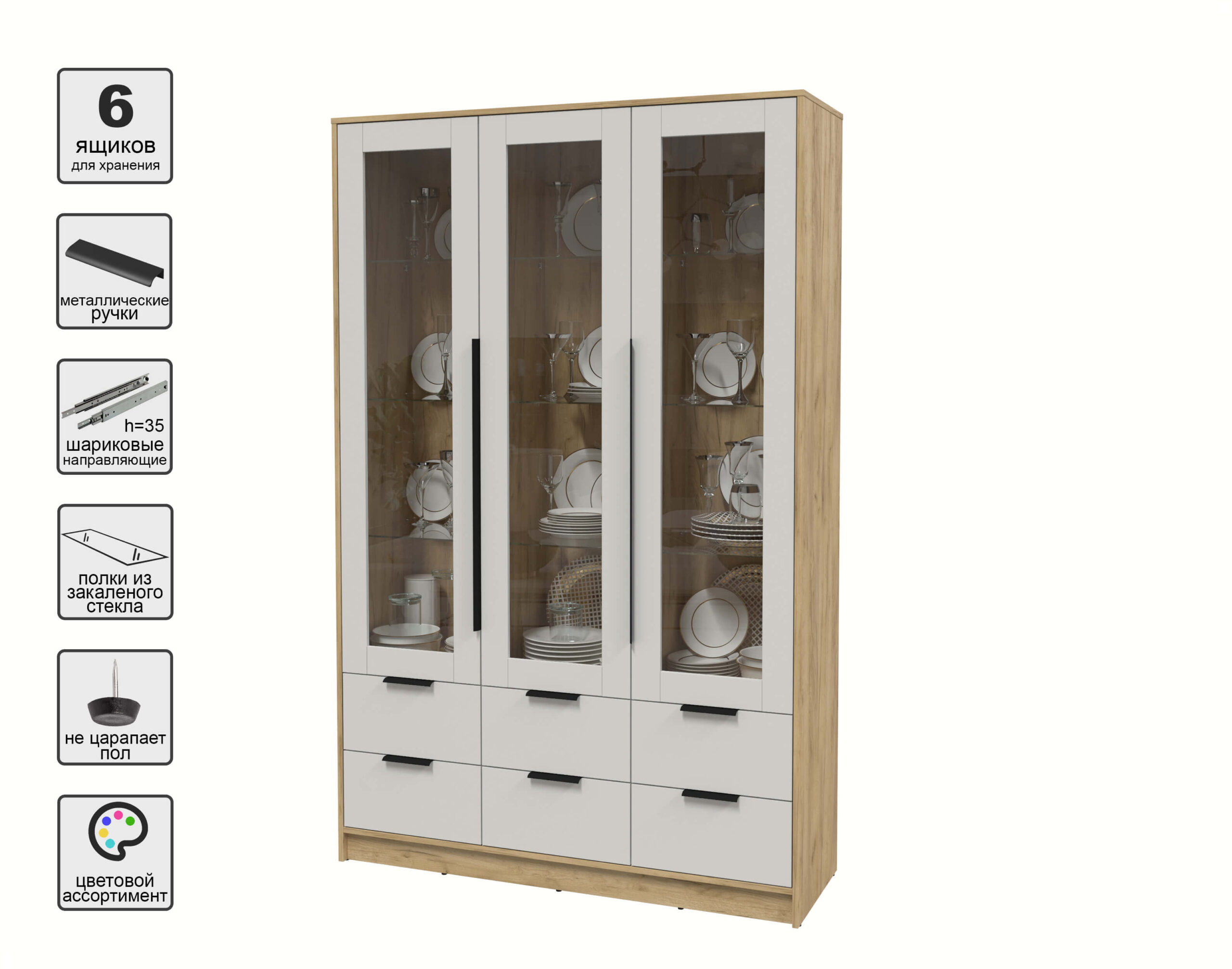 ШКАФ С ВИТРИНОЙ КТ-ШВ3 (ДУБ ЗОЛОТОЙ ЛДСП/ ПЕРСИДСКИЙ ЖЕМЧУГ ЛДСП) Ш1360 В2128 Г451 - Yuta.by