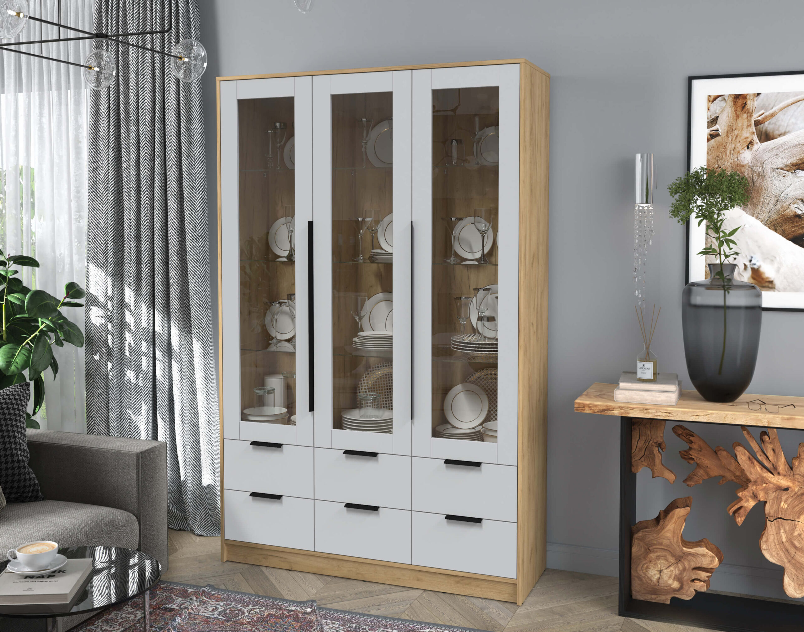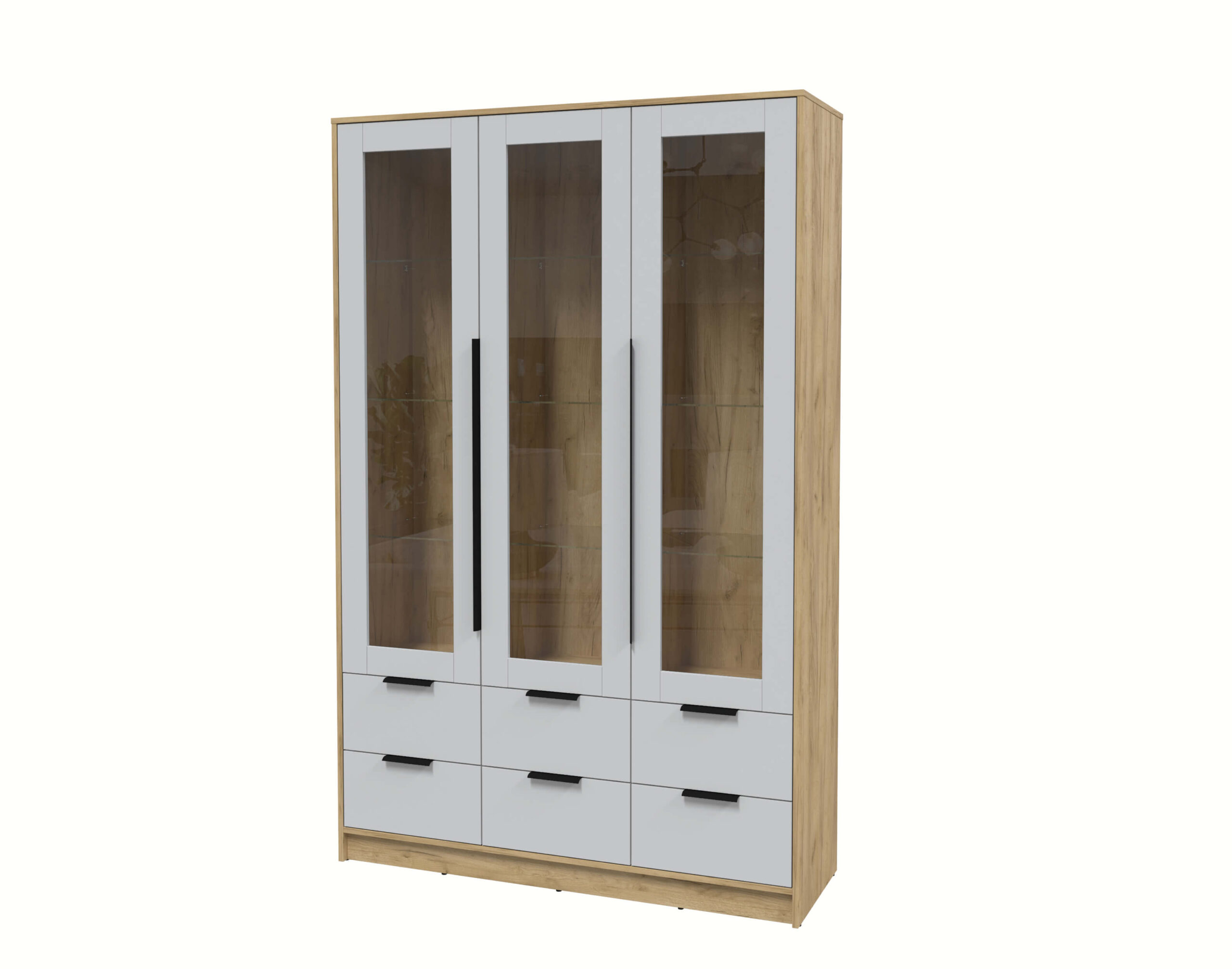 ШКАФ С ВИТРИНОЙ КТ-ШВ3 (ДУБ ЗОЛОТОЙ ЛДСП/ СЕРЫЙ ЛДСП) Ш1360 В2128 Г451 - Yuta.by