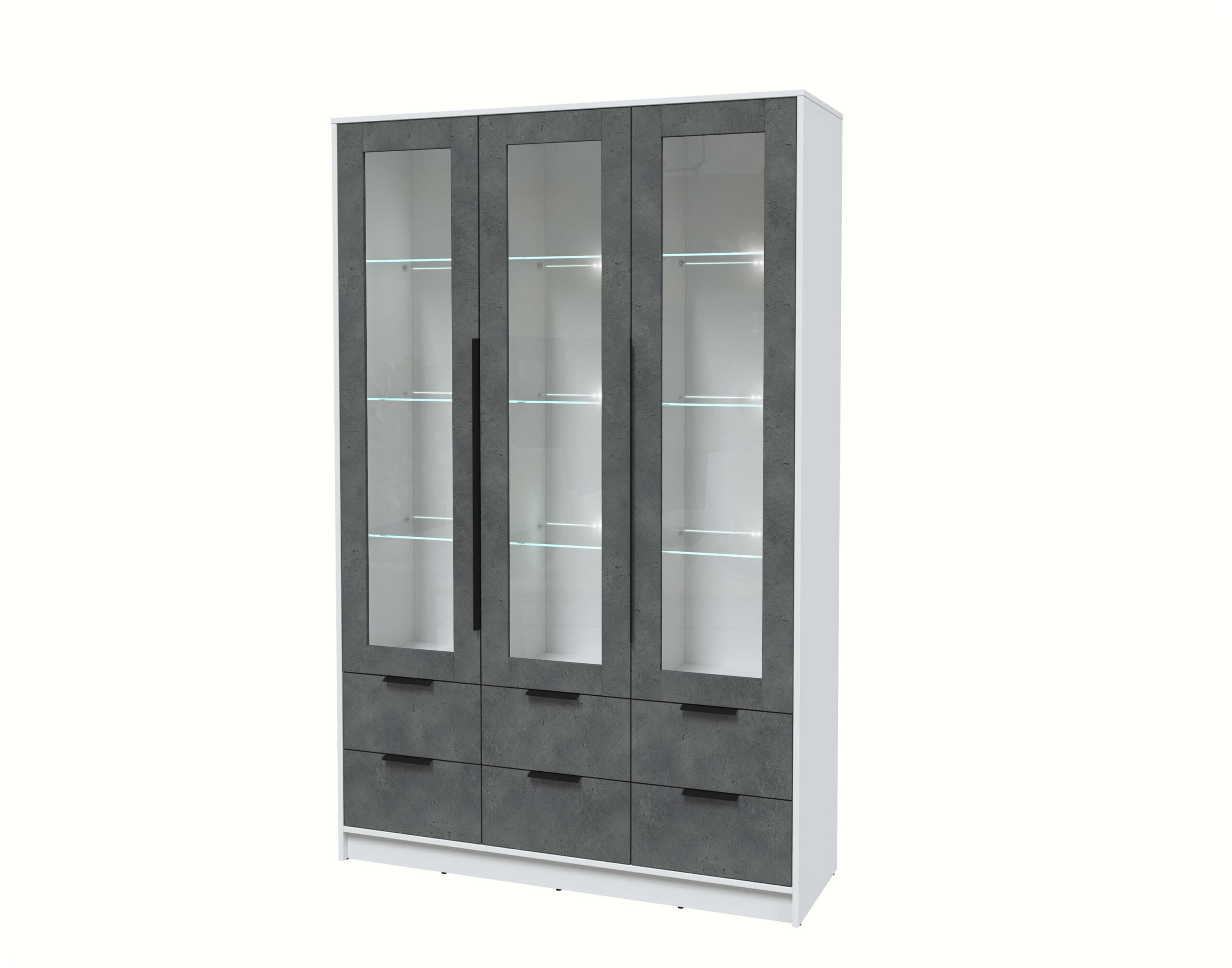 ШКАФ С ВИТРИНОЙ КТ-ШВ3 С ПОДСВЕТКОЙ (БЕЛЫЙ ЛДСП/ БЕТОН ПОРТЛЕНД ЛДСП) Ш1360 В2128 Г451