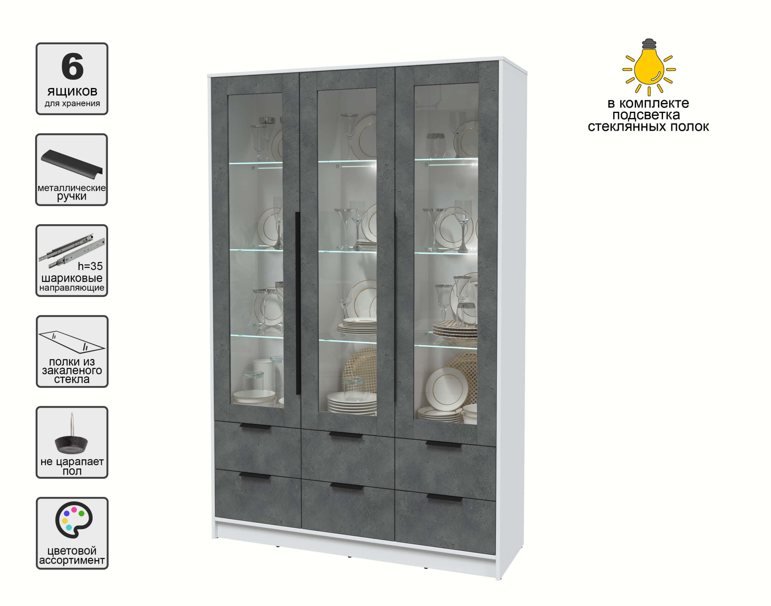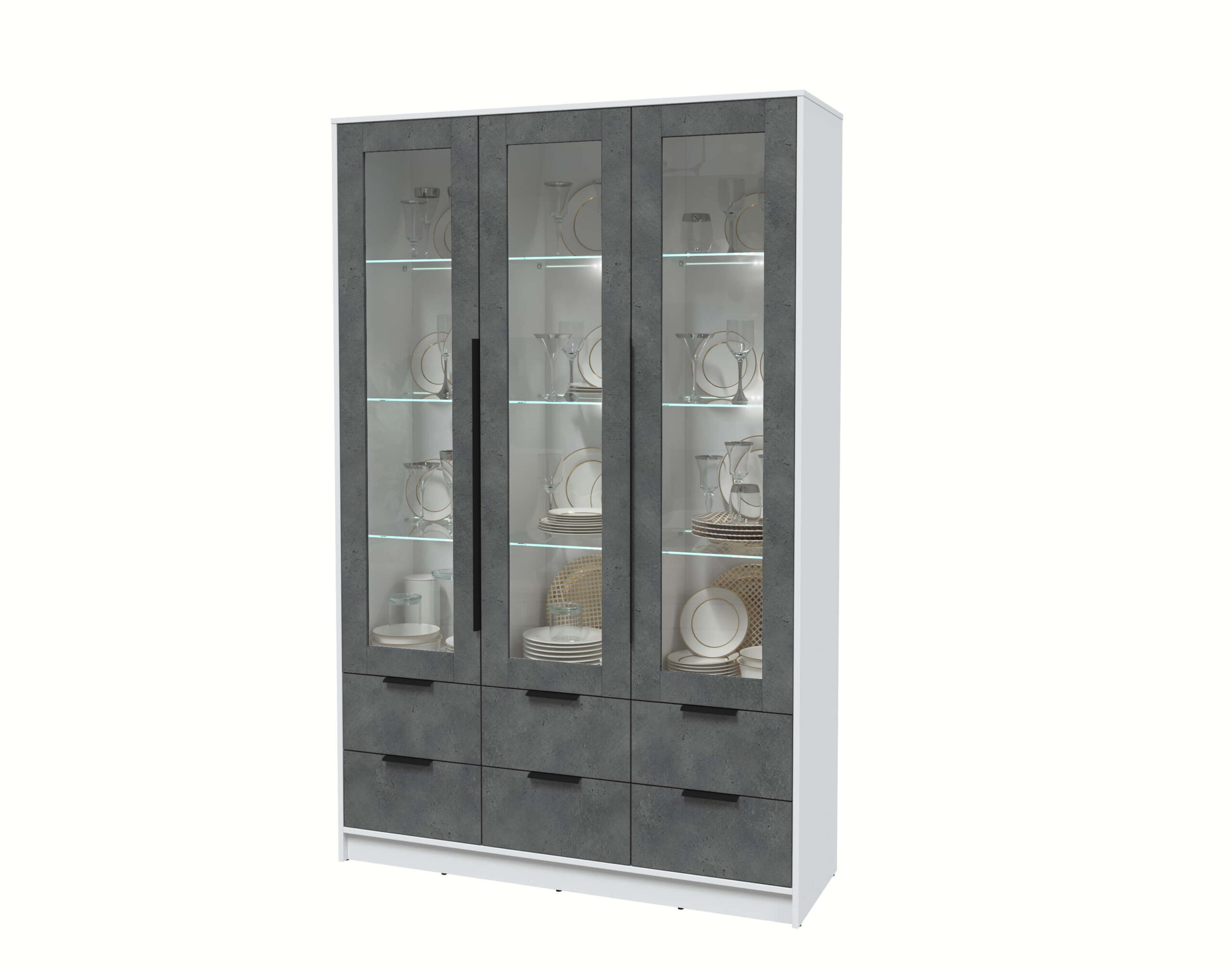 ШКАФ С ВИТРИНОЙ КТ-ШВ3 С ПОДСВЕТКОЙ (БЕЛЫЙ ЛДСП/ БЕТОН ПОРТЛЕНД ЛДСП) Ш1360 В2128 Г451 - Yuta.by