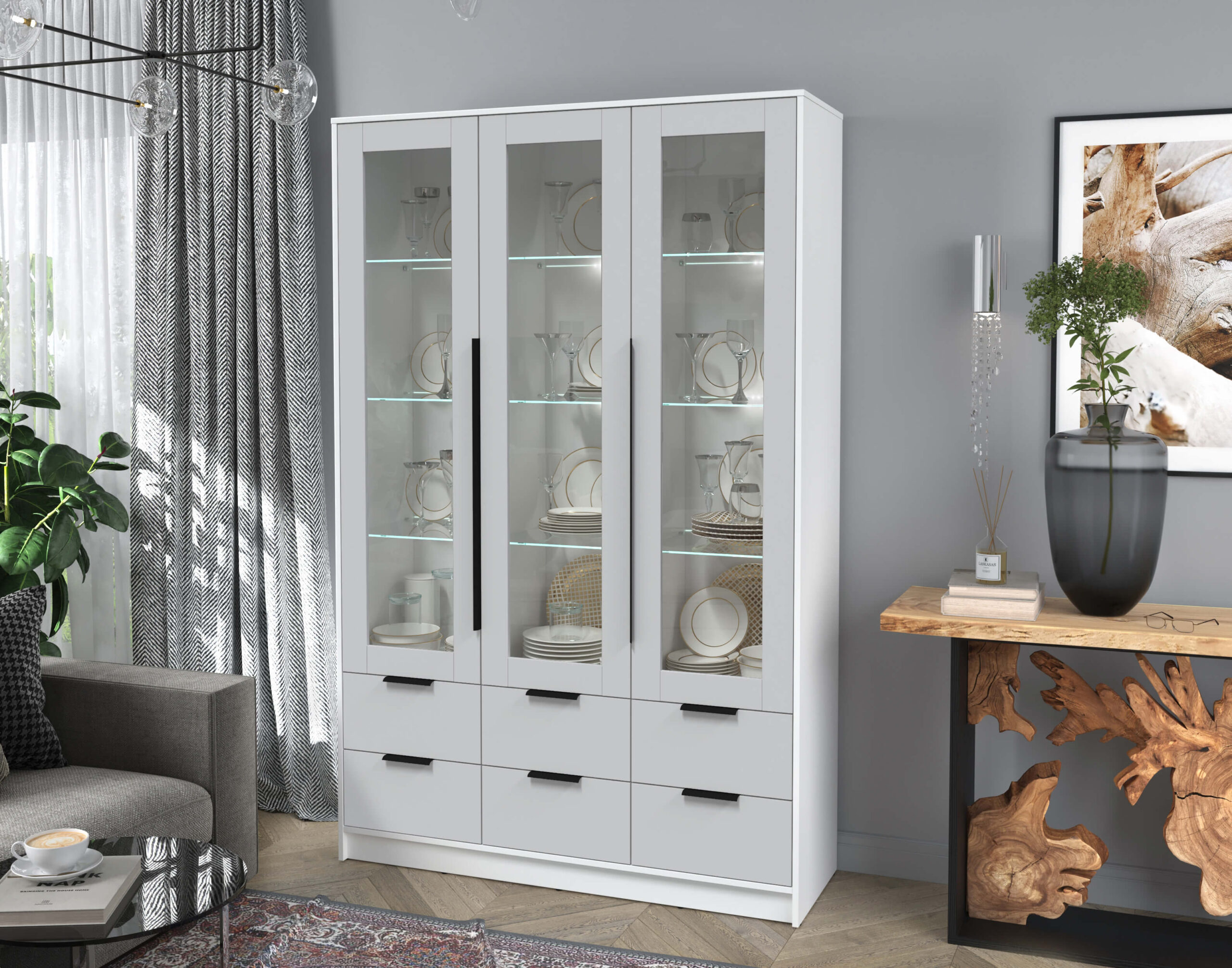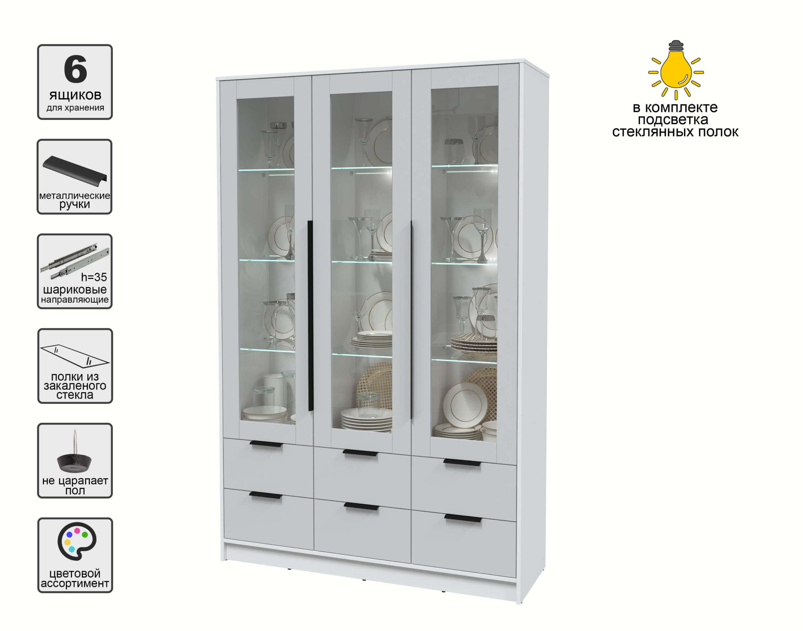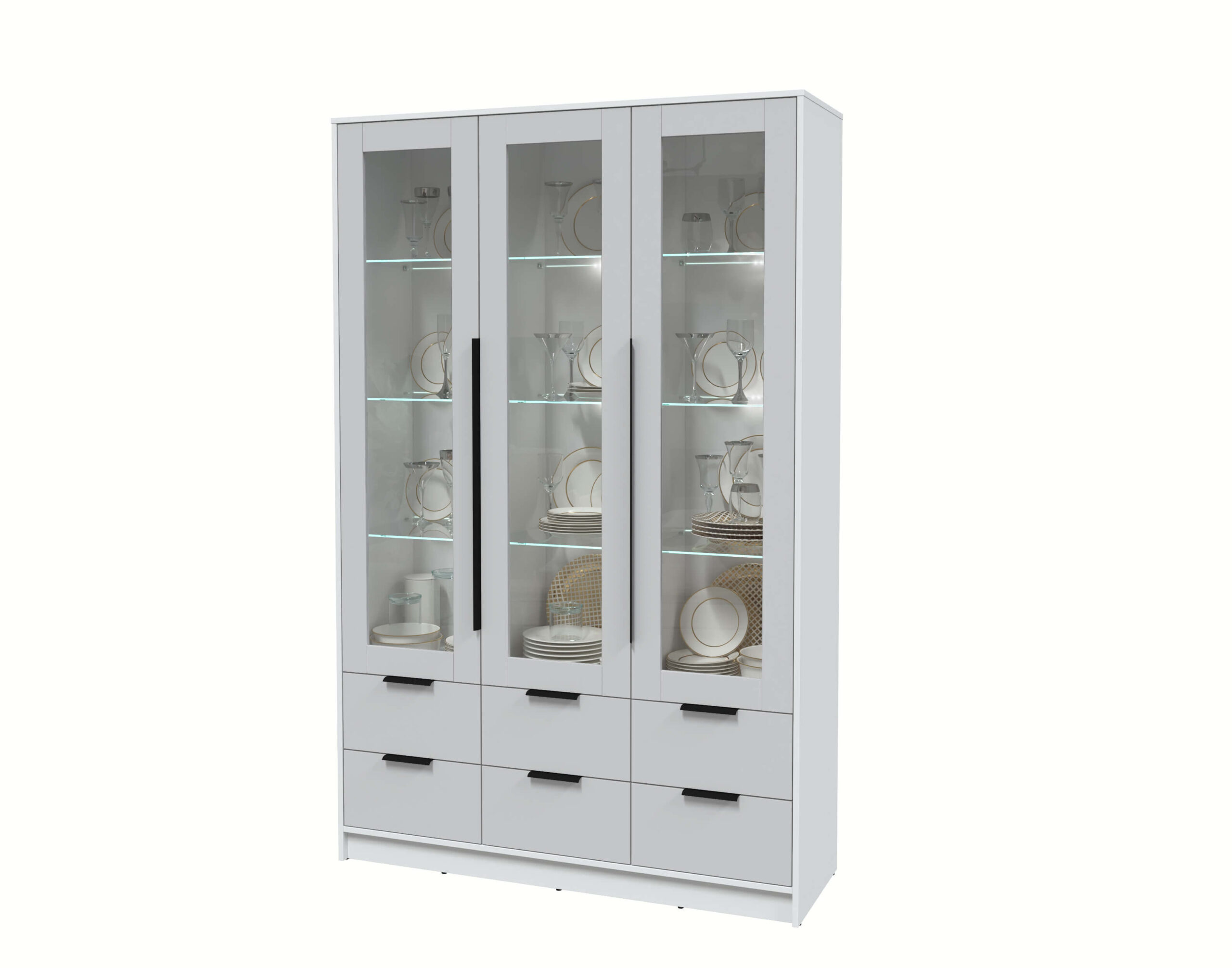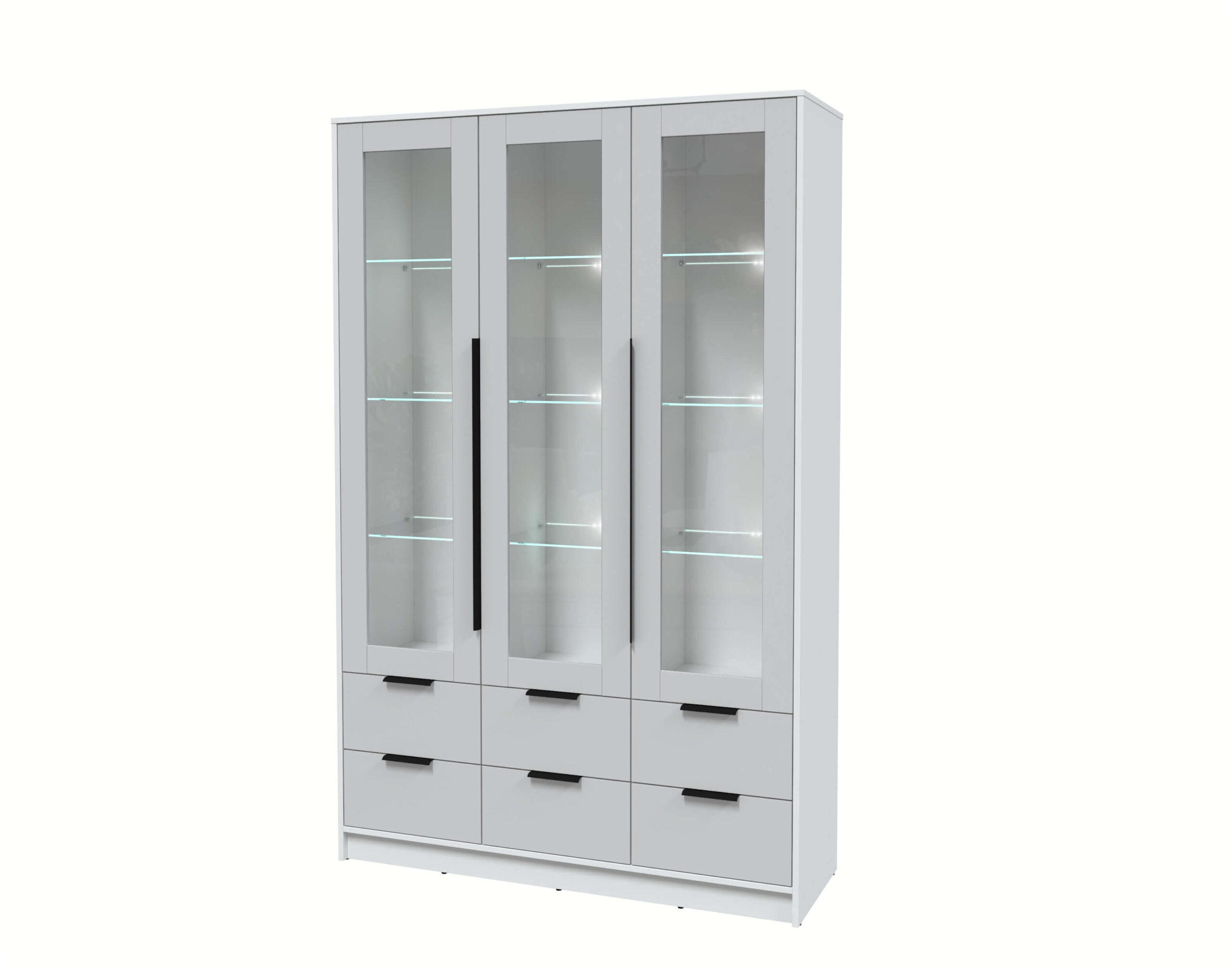 ШКАФ С ВИТРИНОЙ КТ-ШВ3 С ПОДСВЕТКОЙ (БЕЛЫЙ ЛДСП/ СЕРЫЙ ЛДСП) Ш1360 В2128 Г451 - Yuta.by