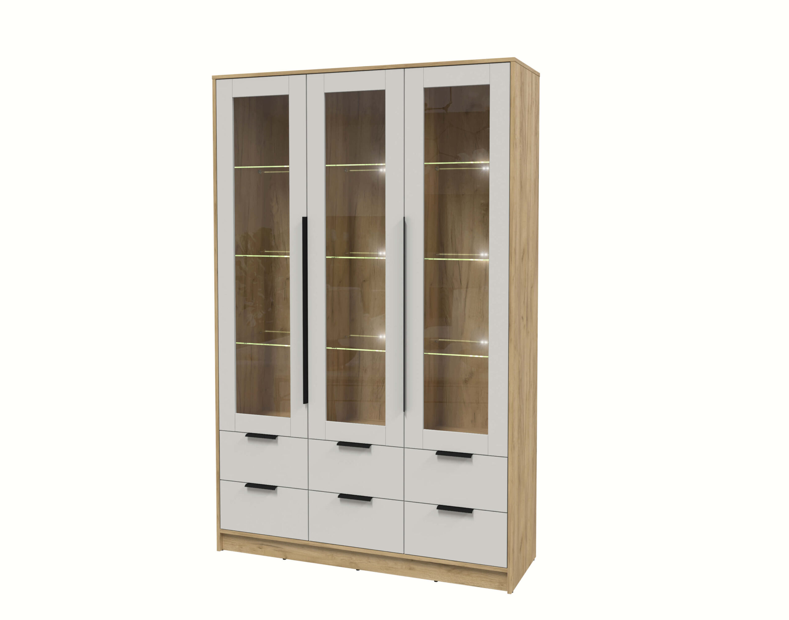 ШКАФ С ВИТРИНОЙ КТ-ШВ3 С ПОДСВЕТКОЙ (ДУБ ЗОЛОТОЙ ЛДСП/ ПЕРСИДСКИЙ ЖЕМЧУГ ЛДСП) Ш1360 В2128 Г451