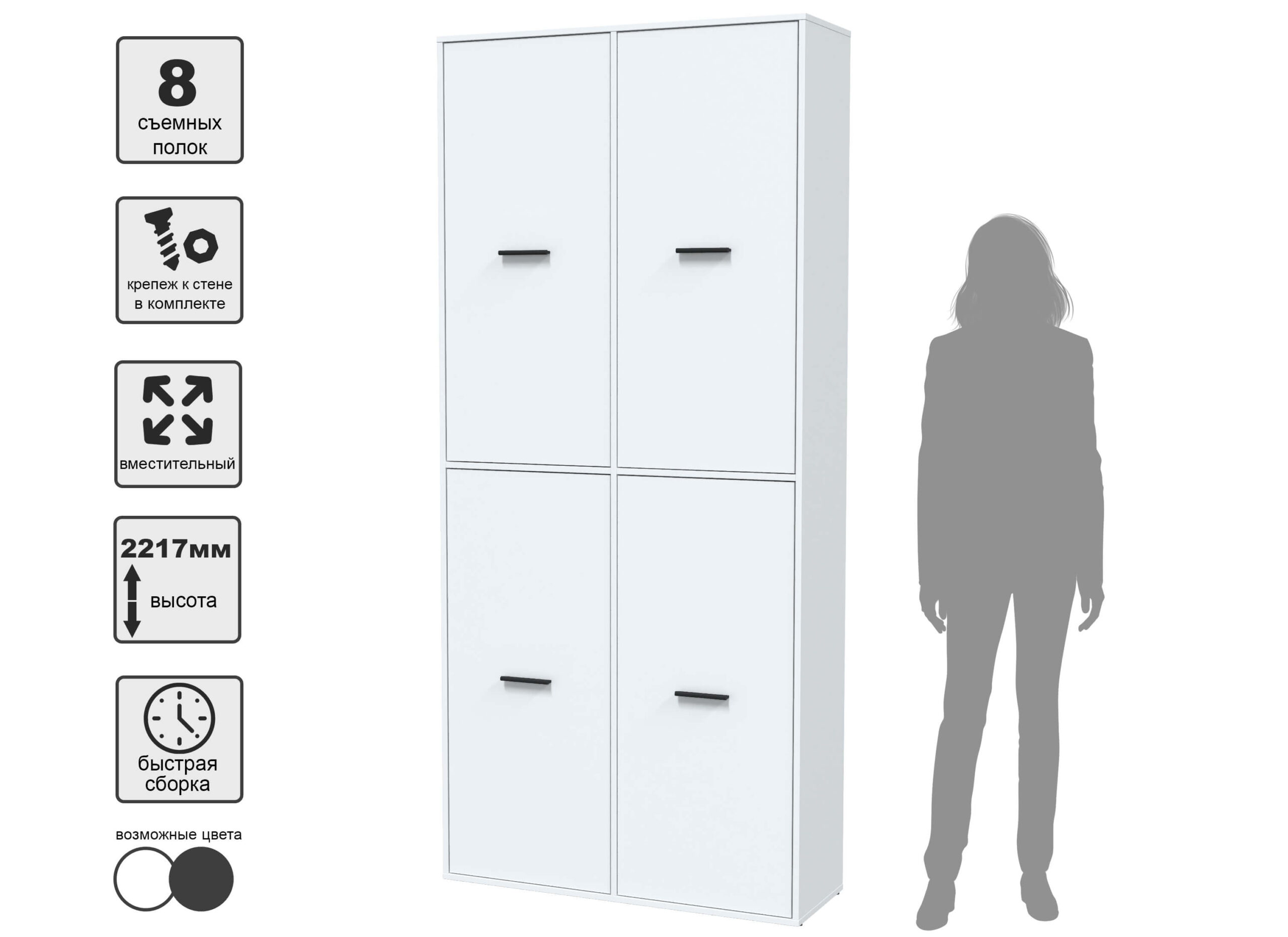 ШКАФ SKILL-20-4 (БЕЛЫЙ) Ш1000 В2217 Г355 - Yuta.by