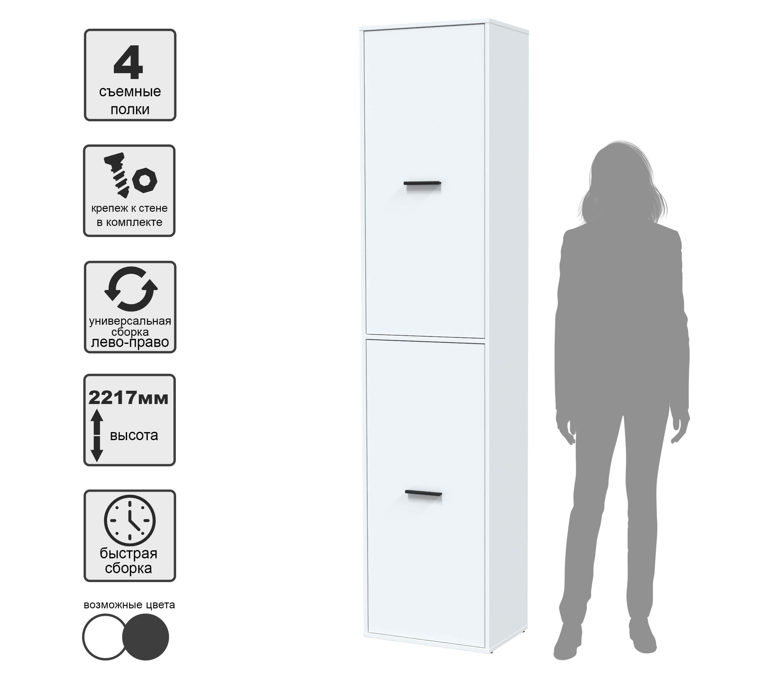 ШКАФ SKILL-21-2 (БЕЛЫЙ) Ш509 В2217 Г355