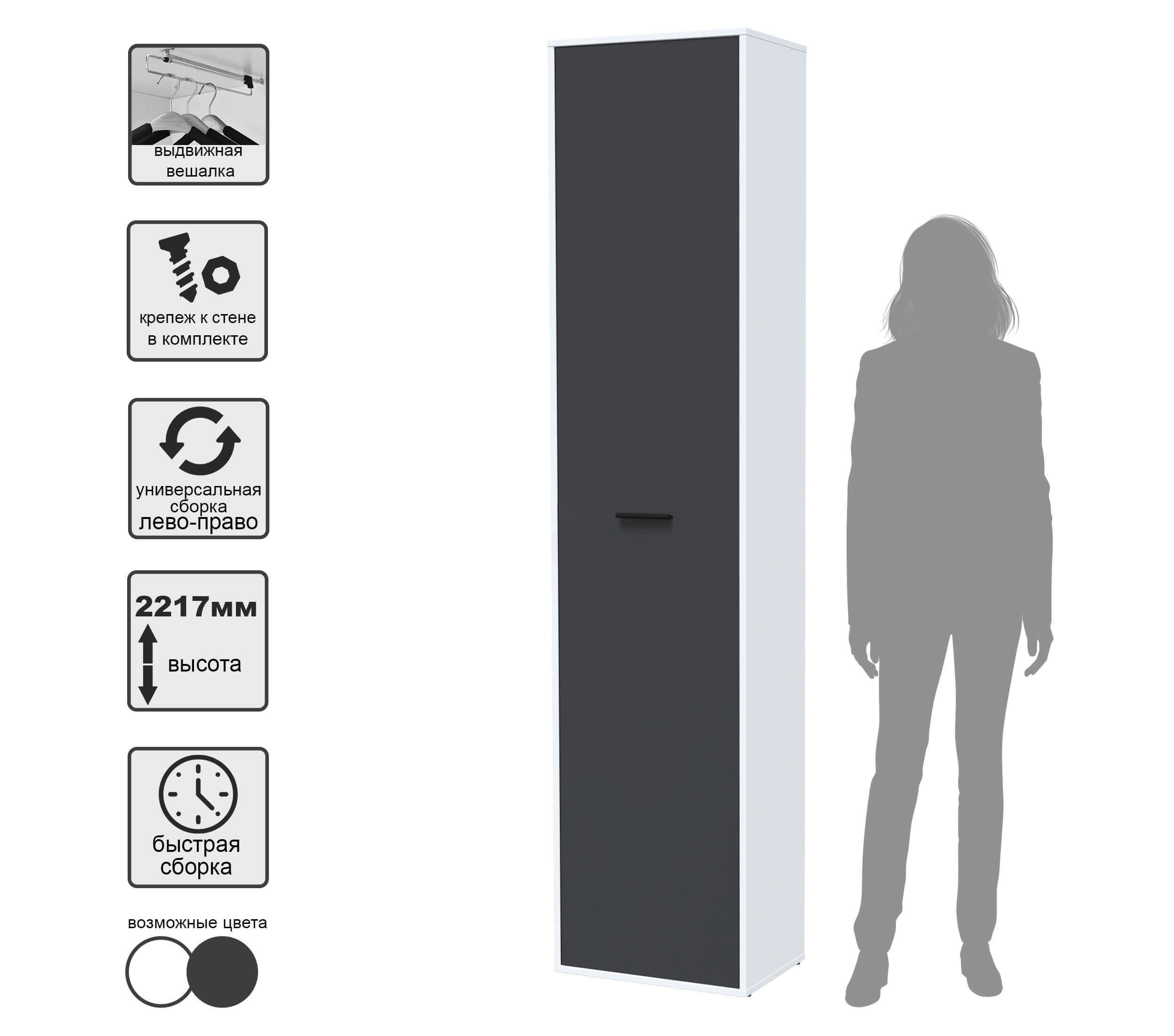 ШКАФ SKILL-23-1 (БЕЛЫЙ/ АНТРАЦИТ ФАСАД) Ш509 В2217 Г355 - Yuta.by