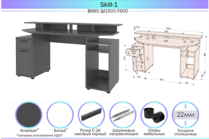 СТОЛ КОМПЬЮТЕРНЫЙ SKILL-1 (АНТРАЦИТ) Ш1600 В885 Г600 - Yuta.by