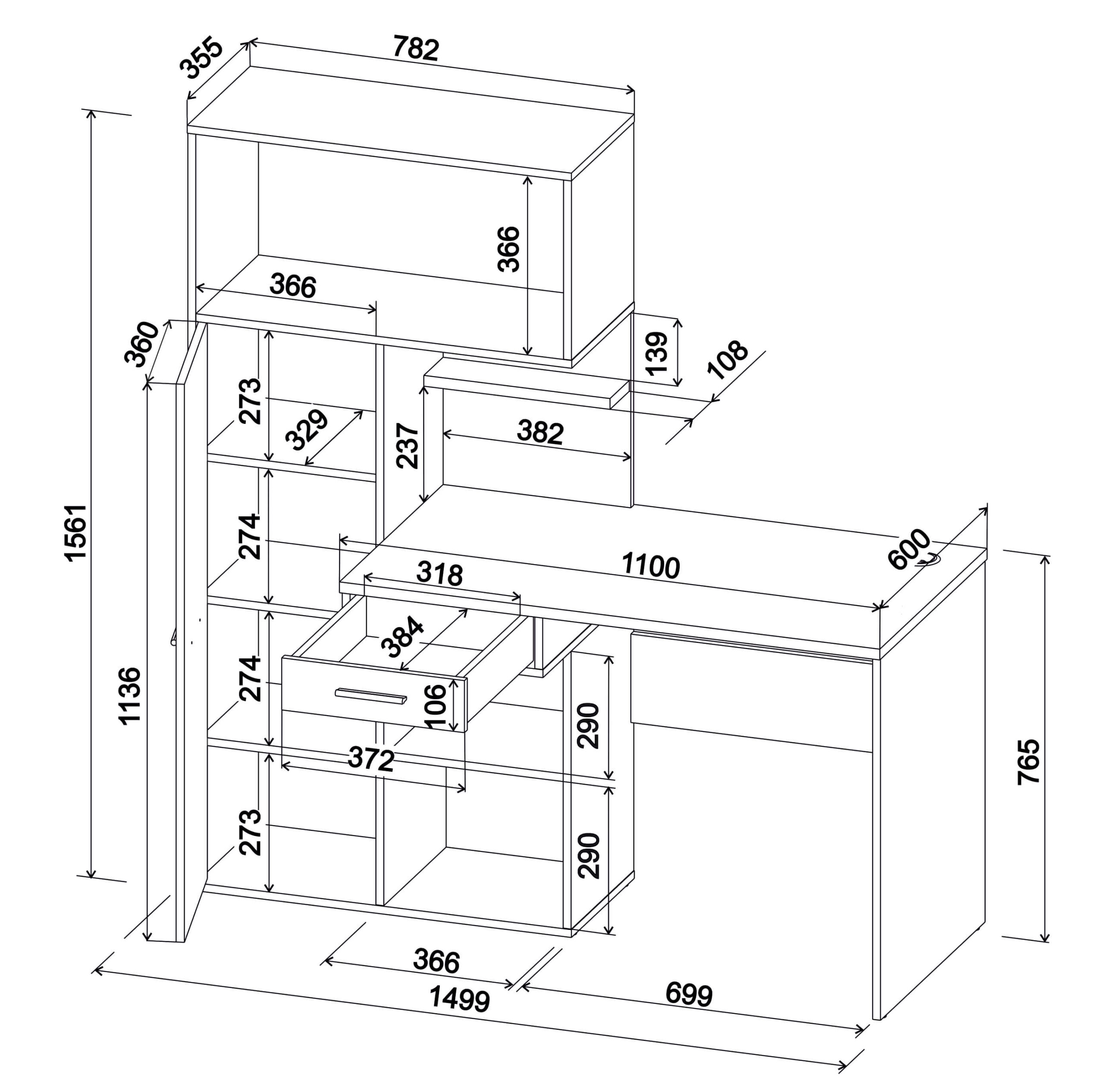 СТОЛ КОМПЬЮТЕРНЫЙ SKILL-6 (БЕЛЫЙ) Ш1499 В1561 Г600 - Yuta.by
