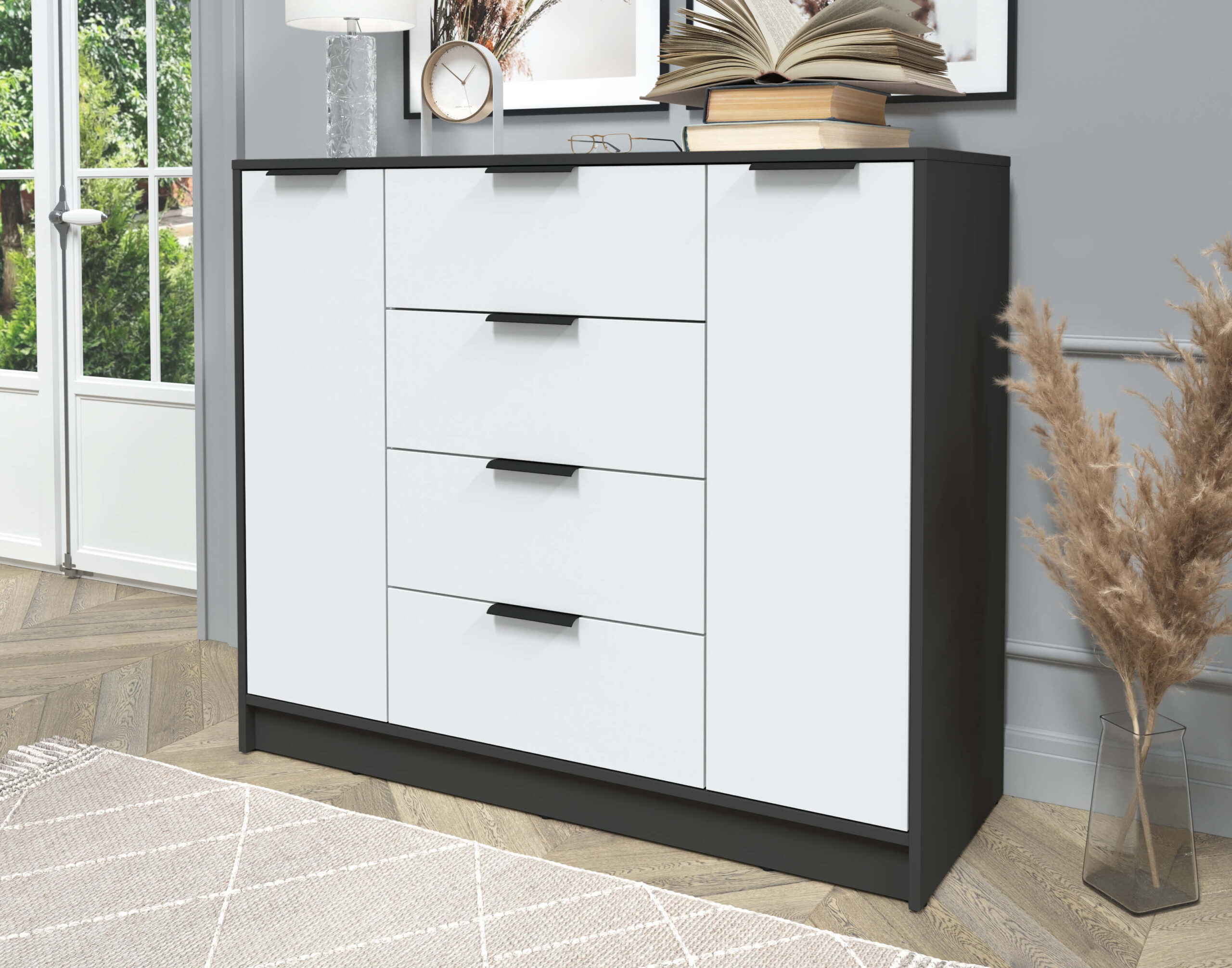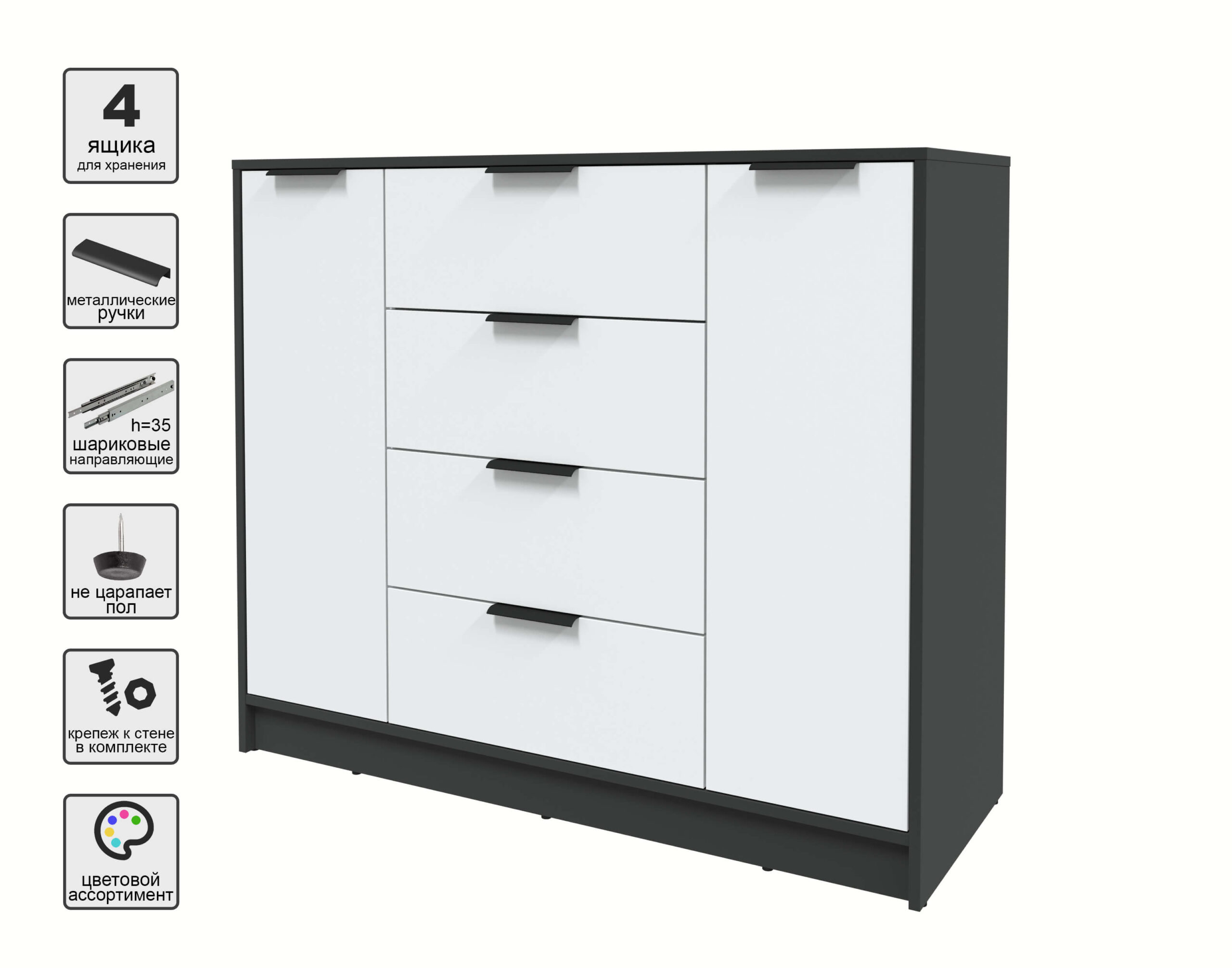 ТУМБА КТ-Т120 (АНТРАЦИТ ЛДСП/ БЕЛЫЙ ПЛАТИНУМ ЛДСП) Ш1200 В1020 Г451 - Yuta.by