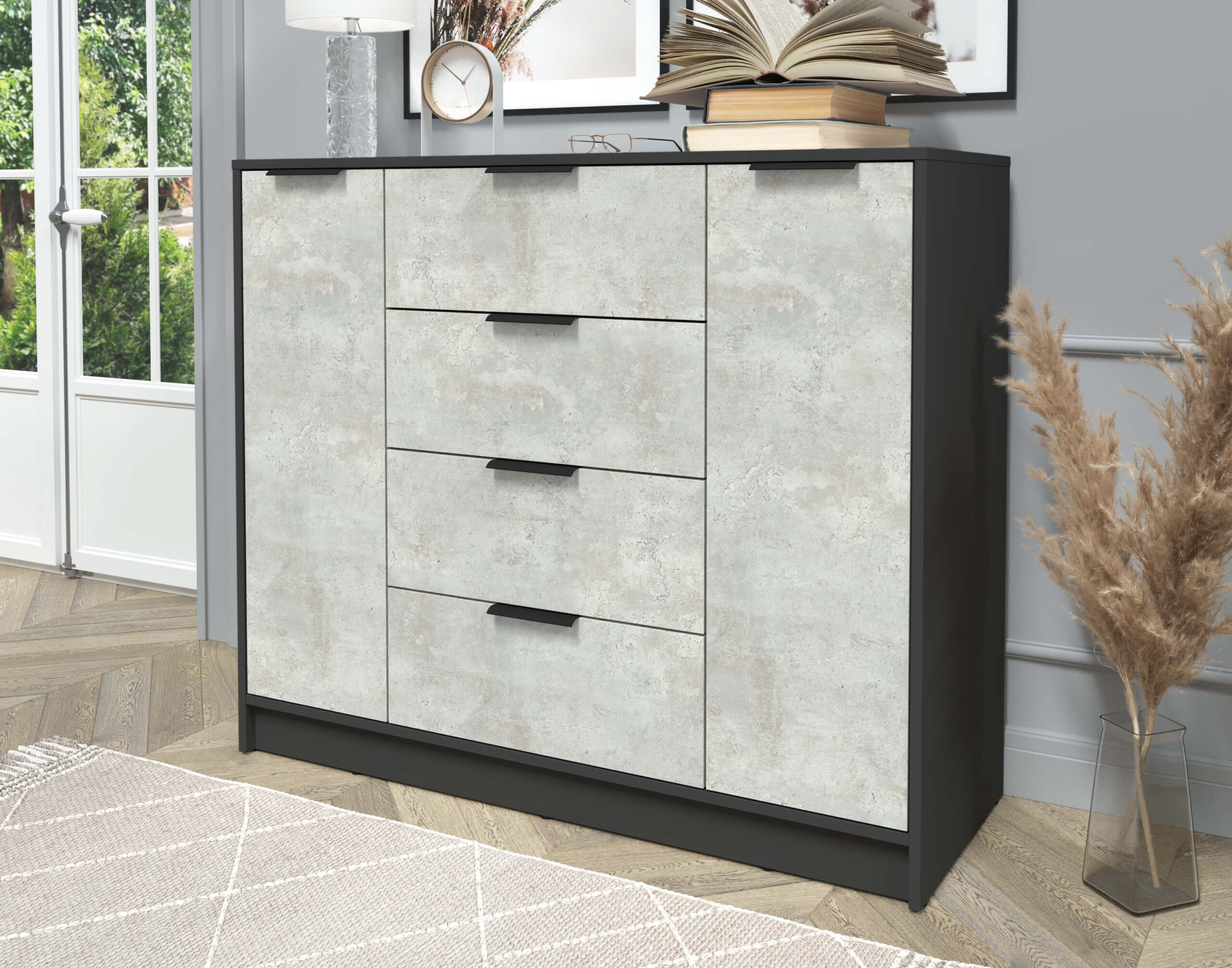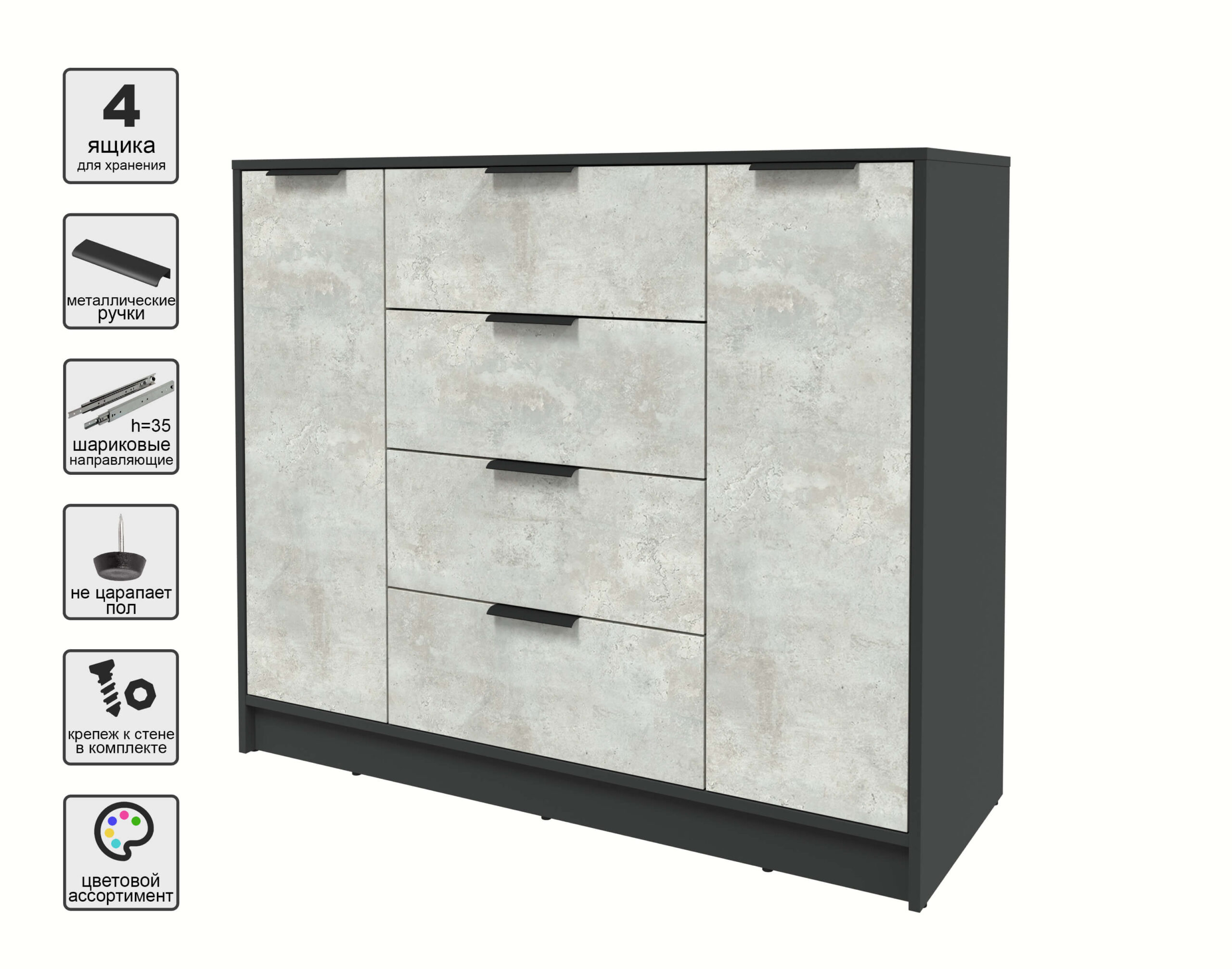 ТУМБА КТ-Т120 (АНТРАЦИТ ЛДСП/ БЕТОН ЛАЙТ ЛДСП) Ш1200 В1020 Г451 - Yuta.by