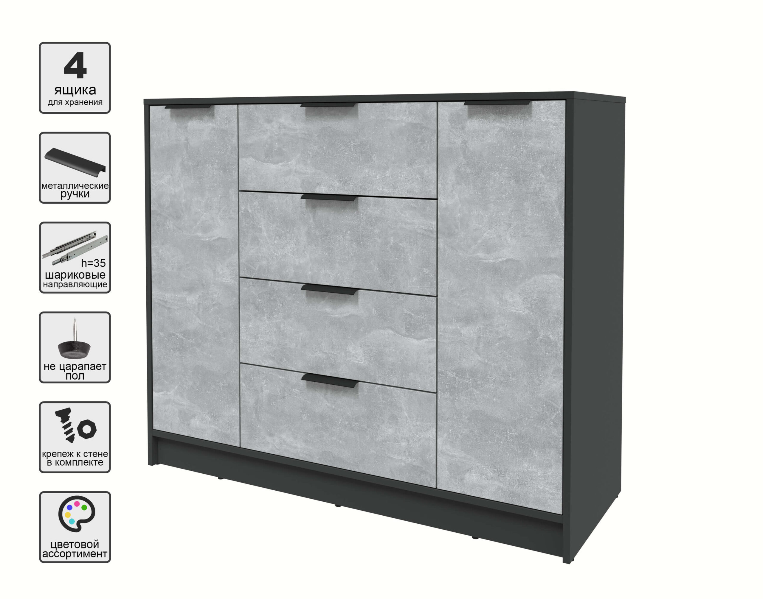 ТУМБА КТ-Т120 (АНТРАЦИТ ЛДСП/ БЕТОН ЛДСП) Ш1200 В1020 Г451 - Yuta.by