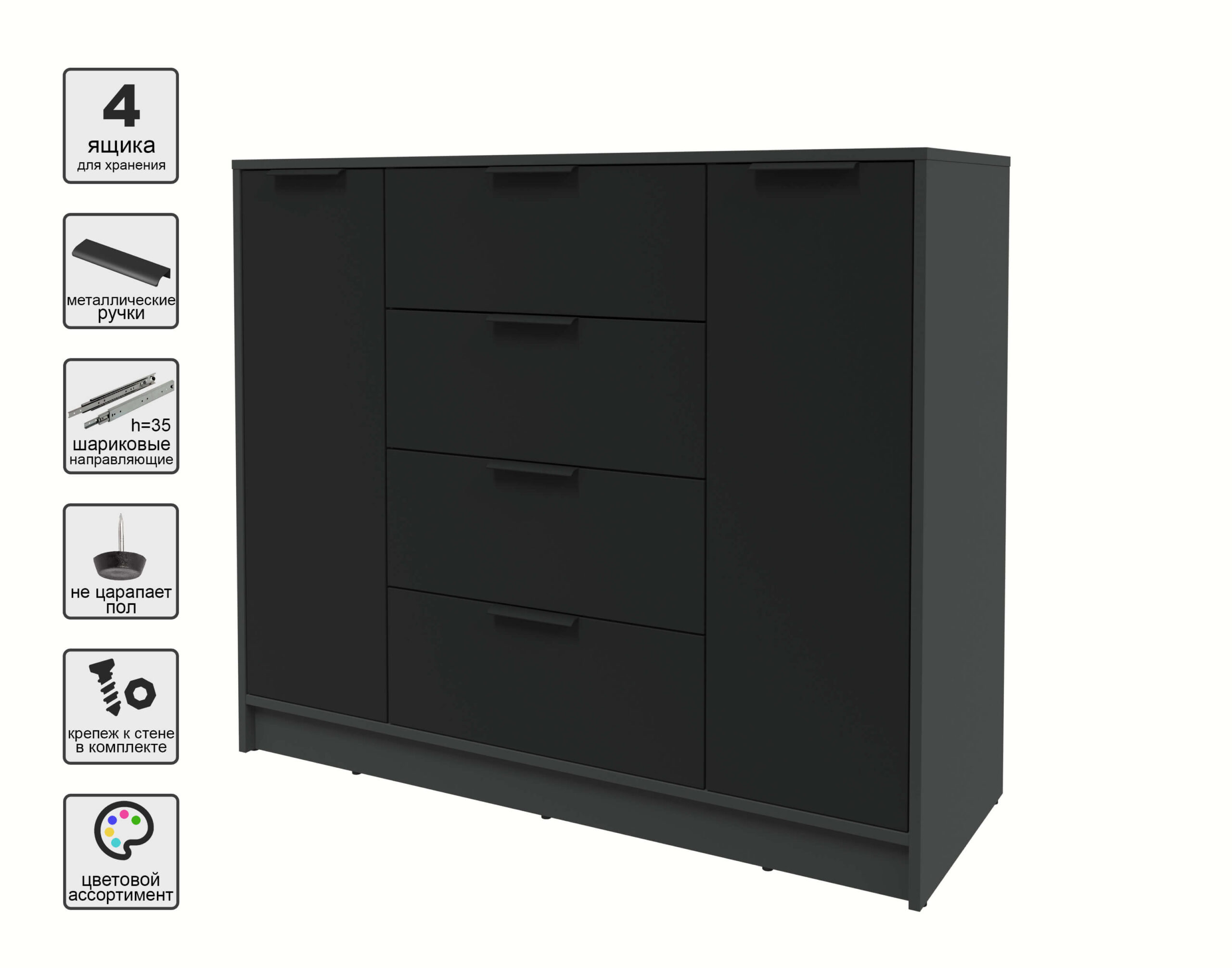 ТУМБА КТ-Т120 (АНТРАЦИТ ЛДСП/ ЧЕРНЫЙ ЛДСП) Ш1200 В1020 Г451 - Yuta.by