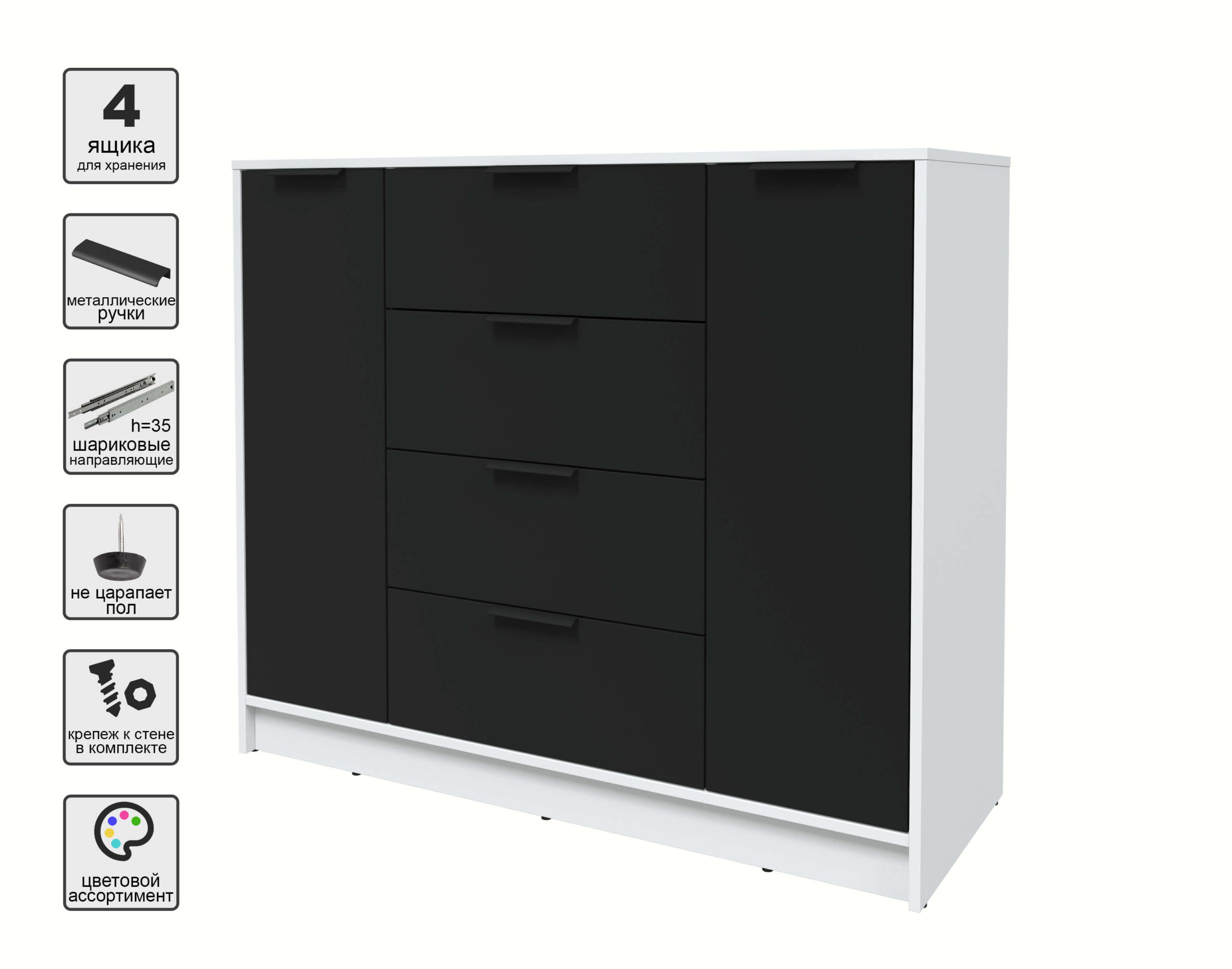 ТУМБА КТ-Т120 (БЕЛЫЙ ЛДСП/ ЧЕРНЫЙ ЛДСП) Ш1200 В1020 Г451 - Yuta.by