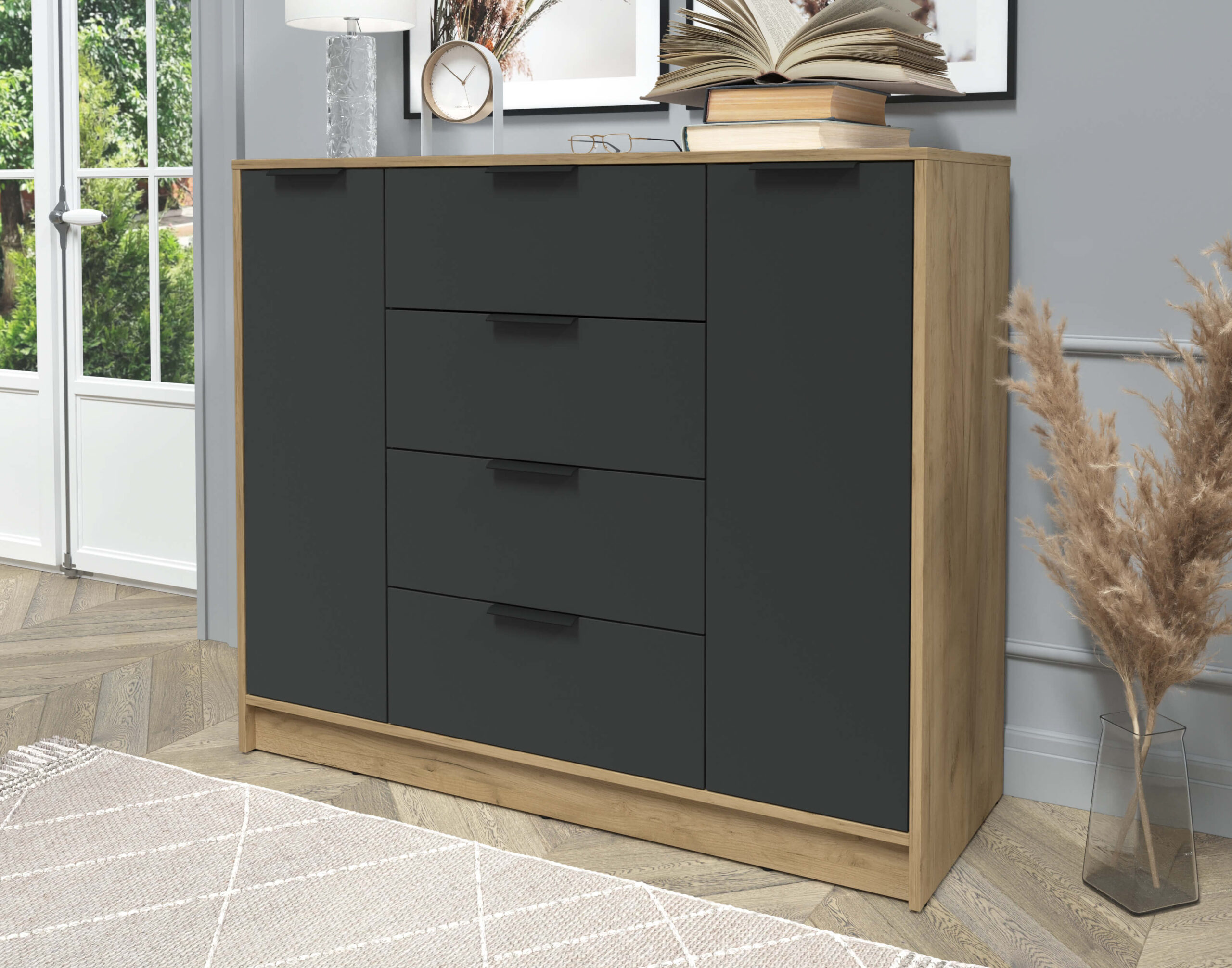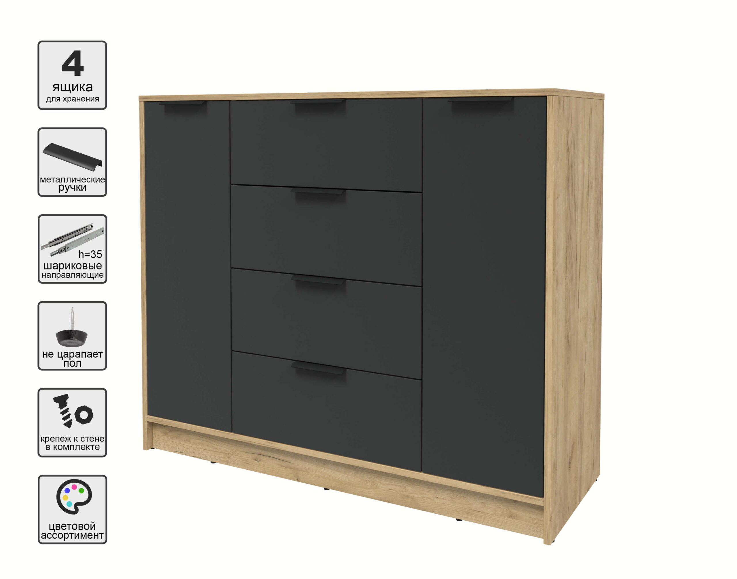 ТУМБА КТ-Т120 (ДУБ ЗОЛОТОЙ ЛДСП/ АНТРАЦИТ ЛДСП) Ш1200 В1020 Г451 - Yuta.by