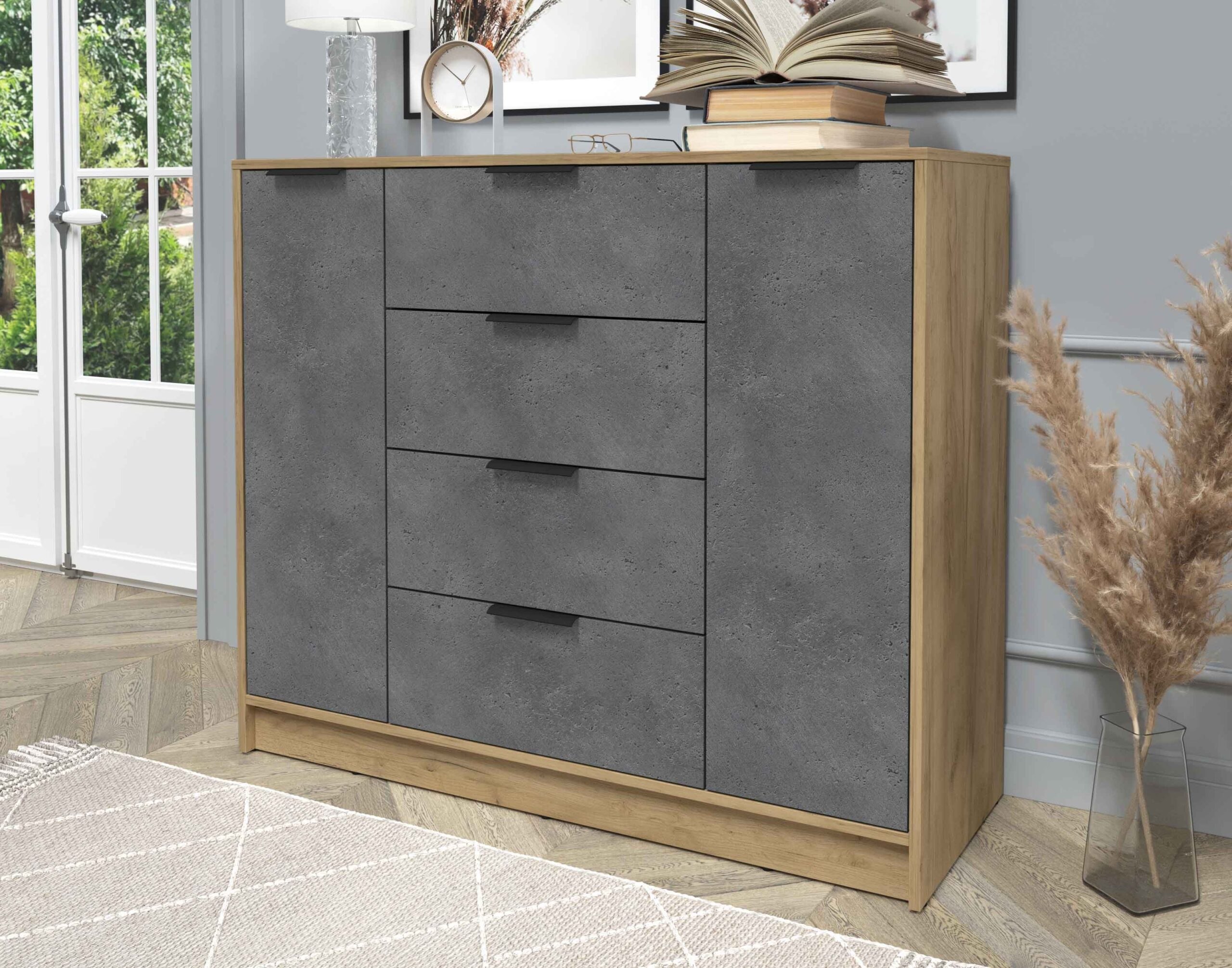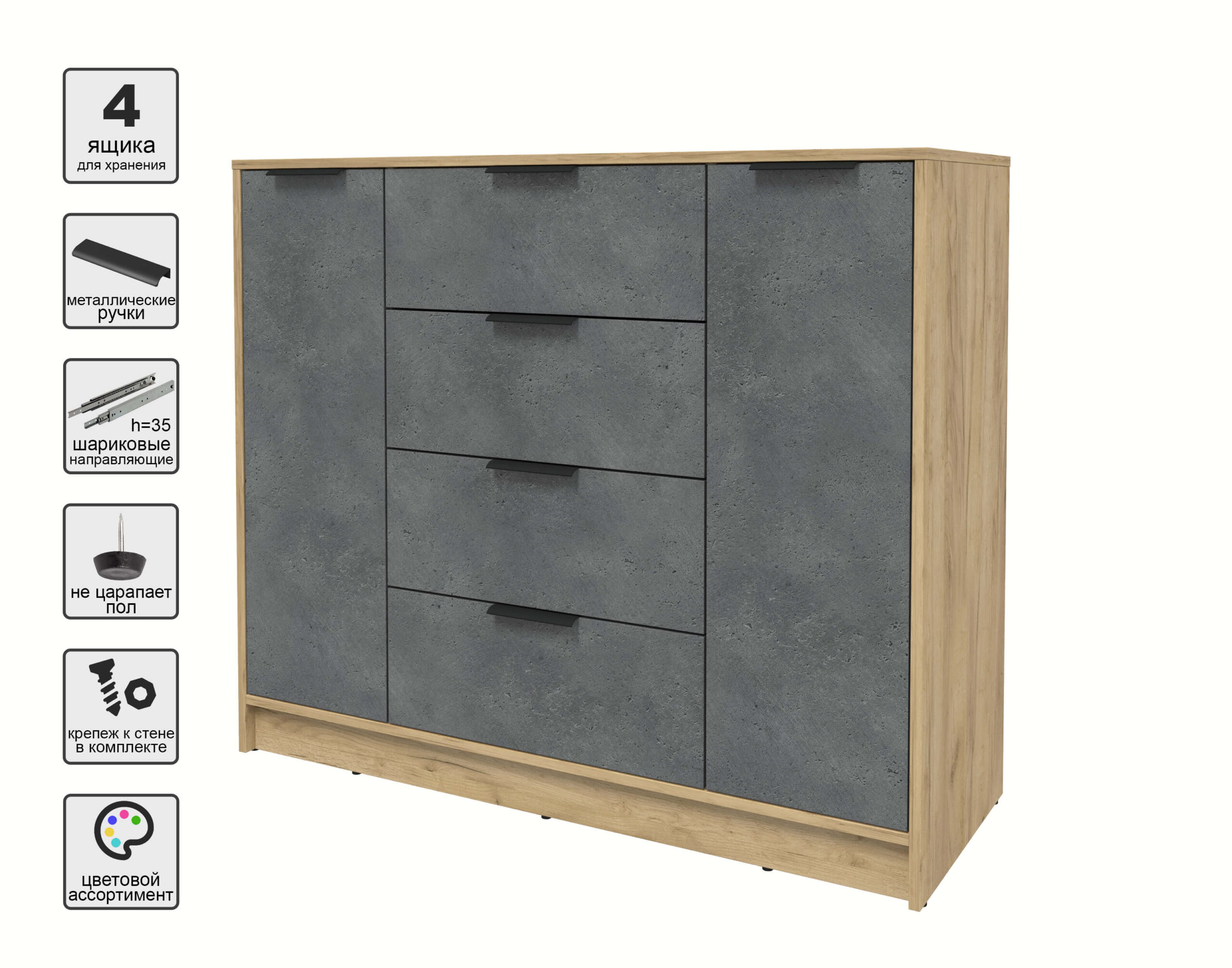 ТУМБА КТ-Т120 (ДУБ ЗОЛОТОЙ ЛДСП/ БЕТОН ПОРТЛЕНД ЛДСП) Ш1200 В1020 Г451 - Yuta.by