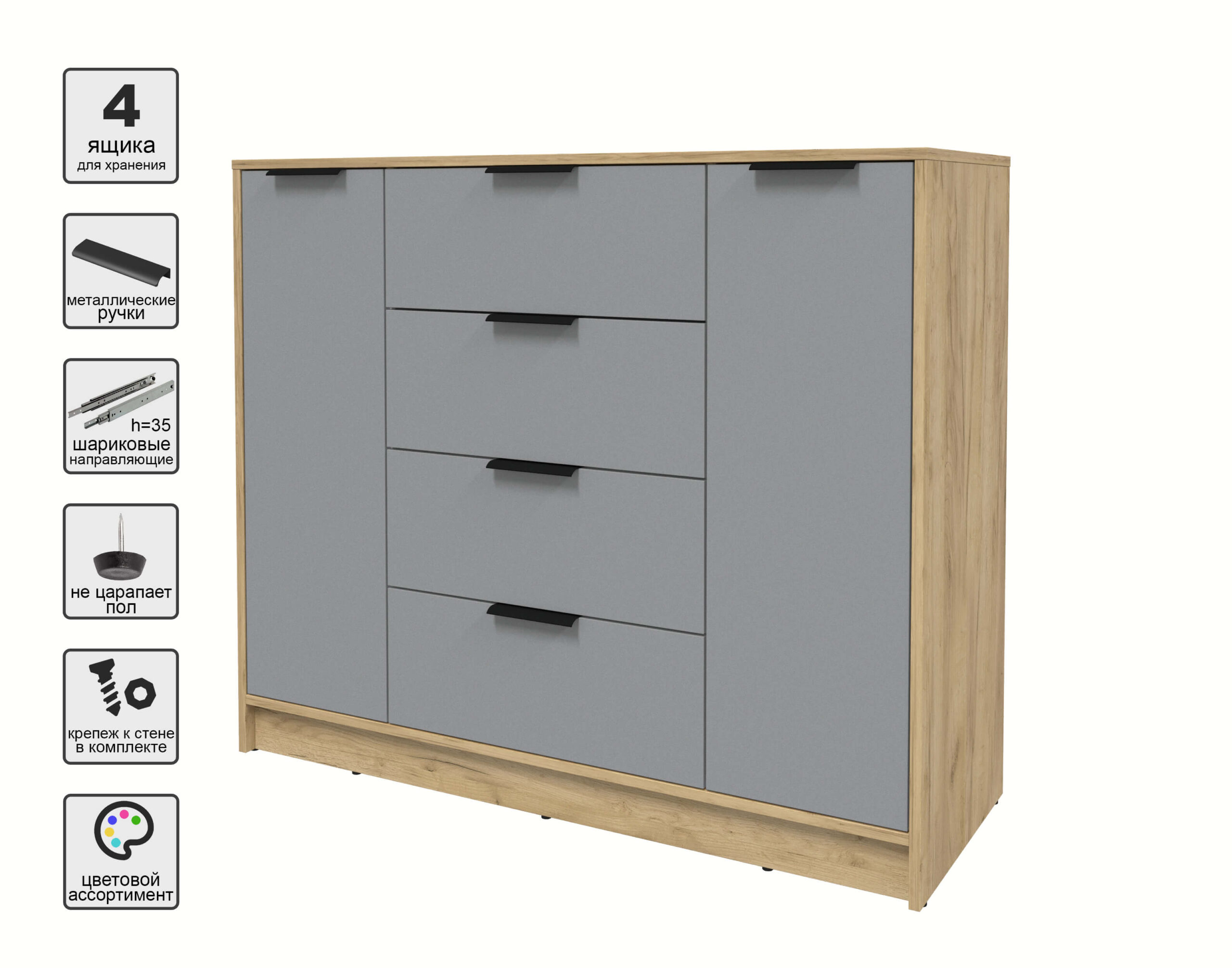 ТУМБА КТ-Т120 (ДУБ ЗОЛОТОЙ ЛДСП/ СЕРЕБРО ЛДСП) Ш1200 В1020 Г451 - Yuta.by