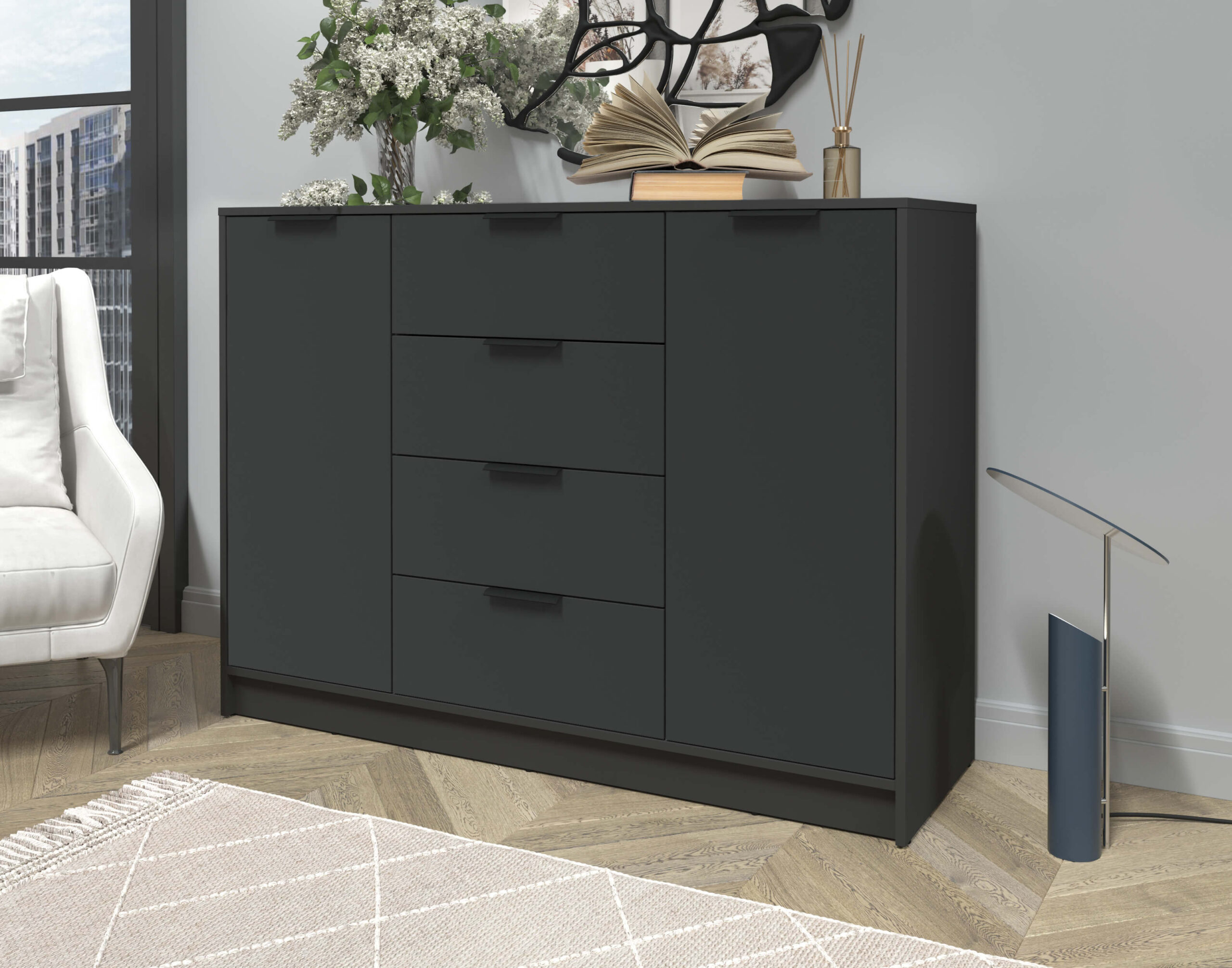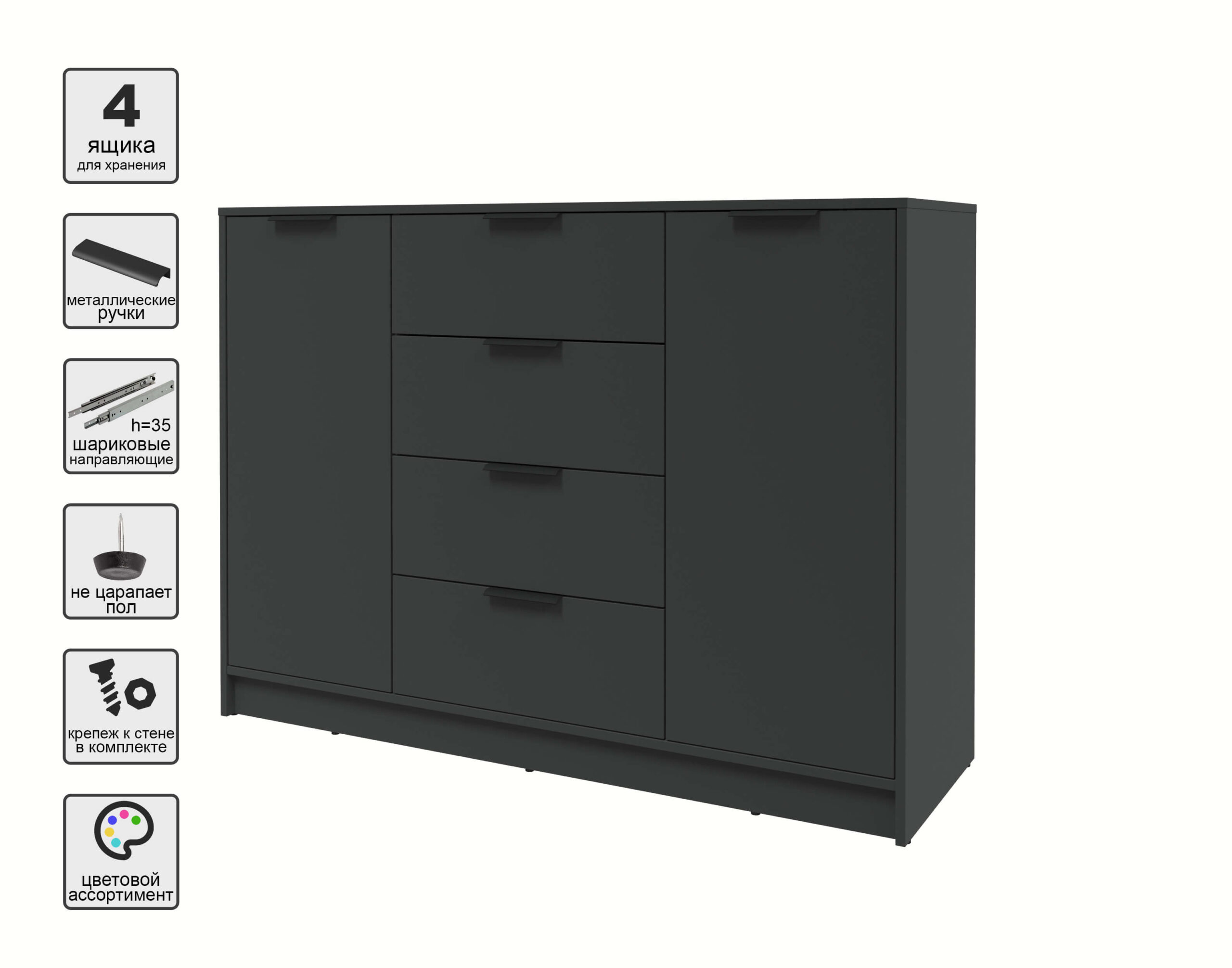 ТУМБА КТ-Т140 (АНТРАЦИТ ЛДСП/ АНТРАЦИТ ЛДСП) Ш1400 В1020 Г451 - Yuta.by