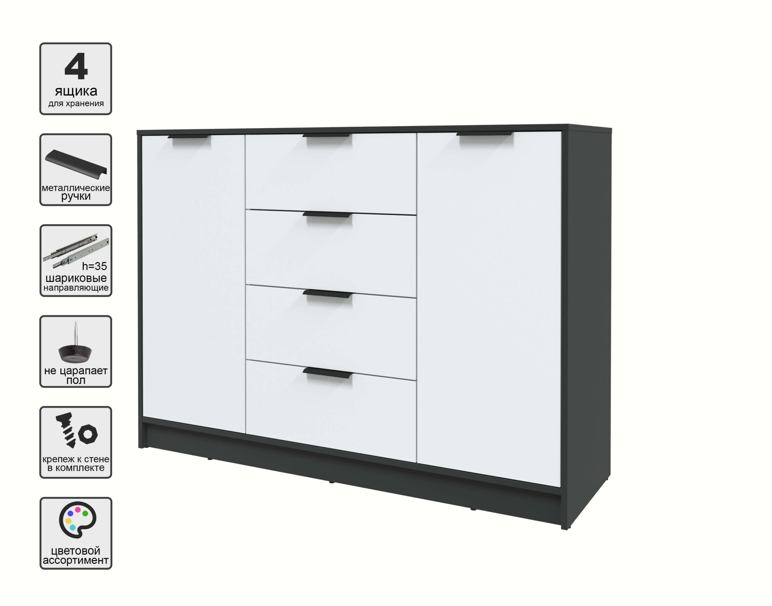 ТУМБА КТ-Т140 (АНТРАЦИТ ЛДСП/ БЕЛЫЙ ПЛАТИНУМ ЛДСП) Ш1400 В1020 Г451 - Yuta.by