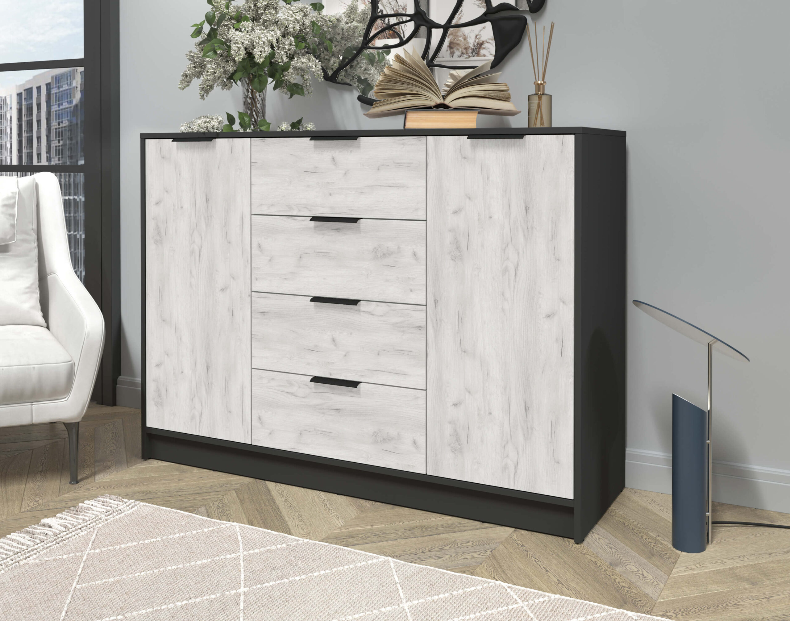ТУМБА КТ-Т140 (АНТРАЦИТ ЛДСП/ ДУБ БЕЛЫЙ ЛДСП) Ш1400 В1020 Г451
