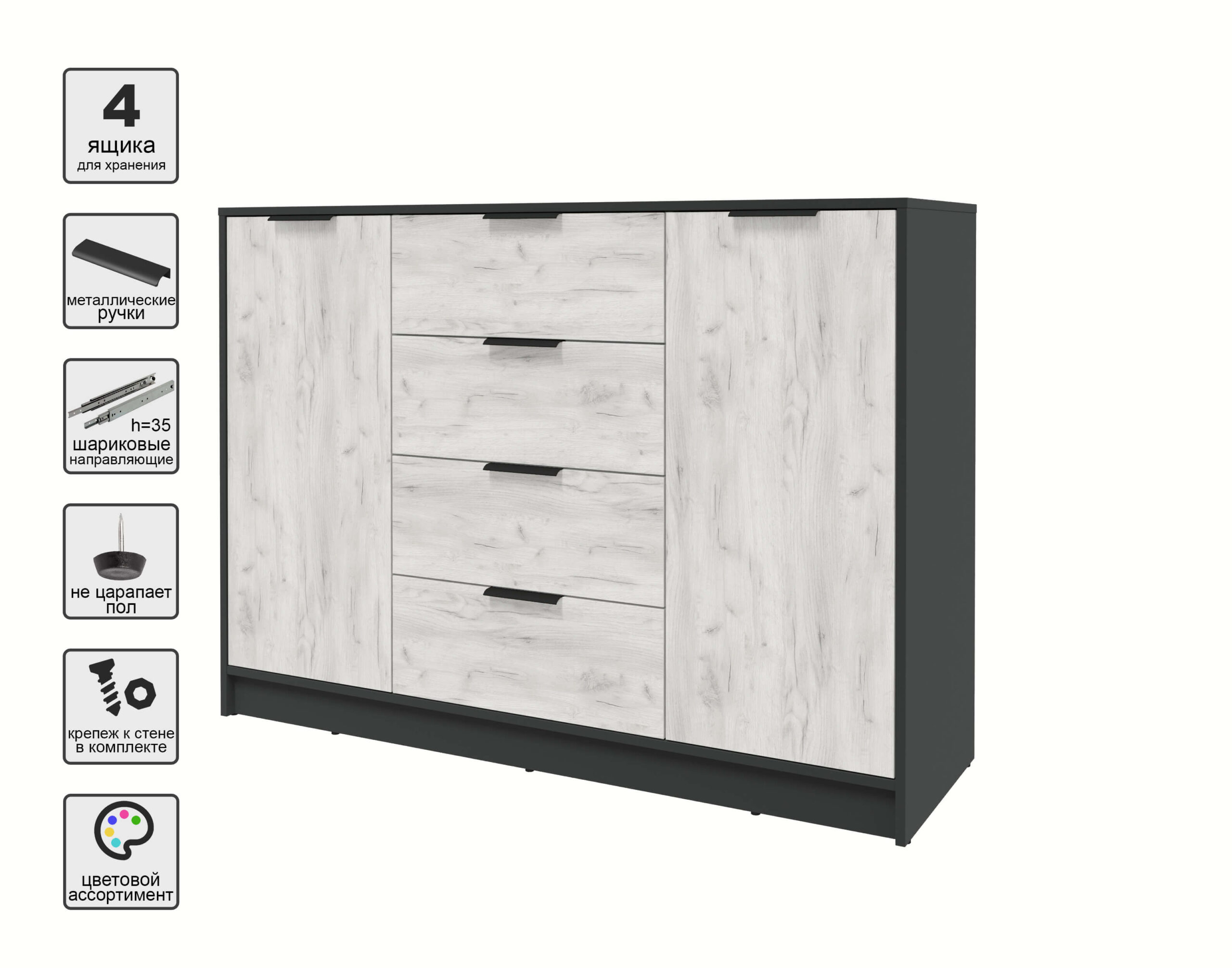 ТУМБА КТ-Т140 (АНТРАЦИТ ЛДСП/ ДУБ БЕЛЫЙ ЛДСП) Ш1400 В1020 Г451 - Yuta.by