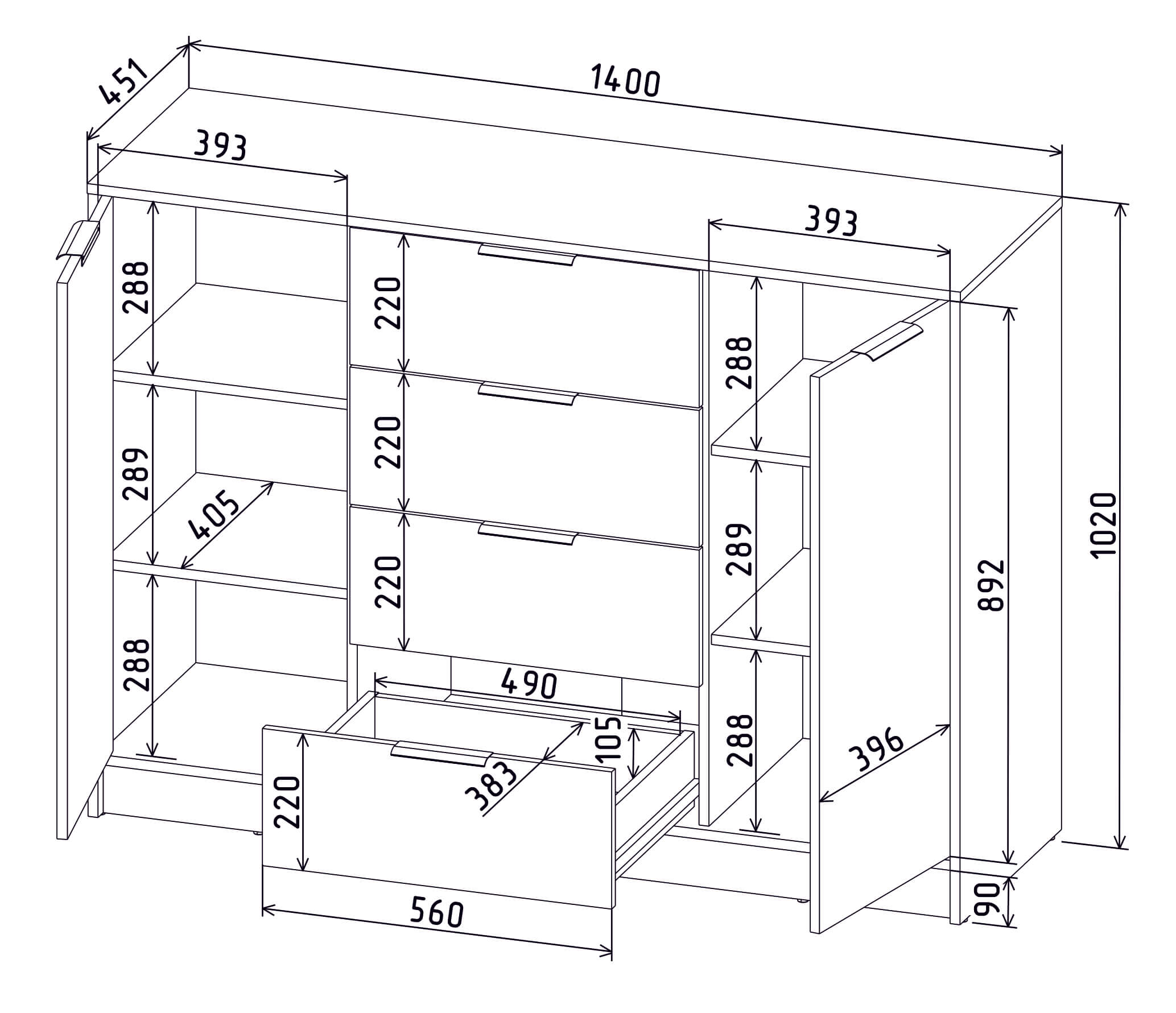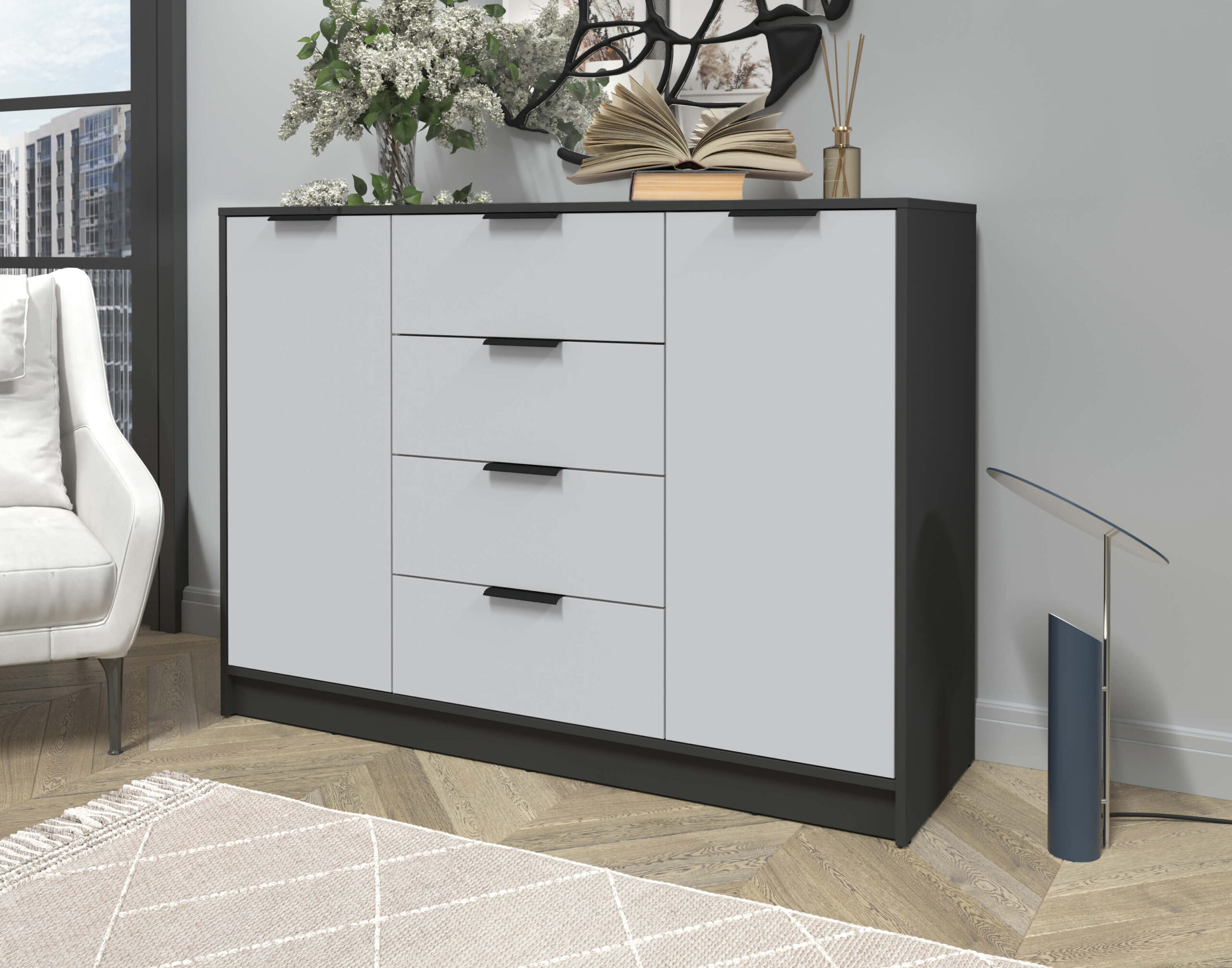 ТУМБА КТ-Т140 (АНТРАЦИТ ЛДСП/ СЕРЫЙ ЛДСП) Ш1400 В1020 Г451