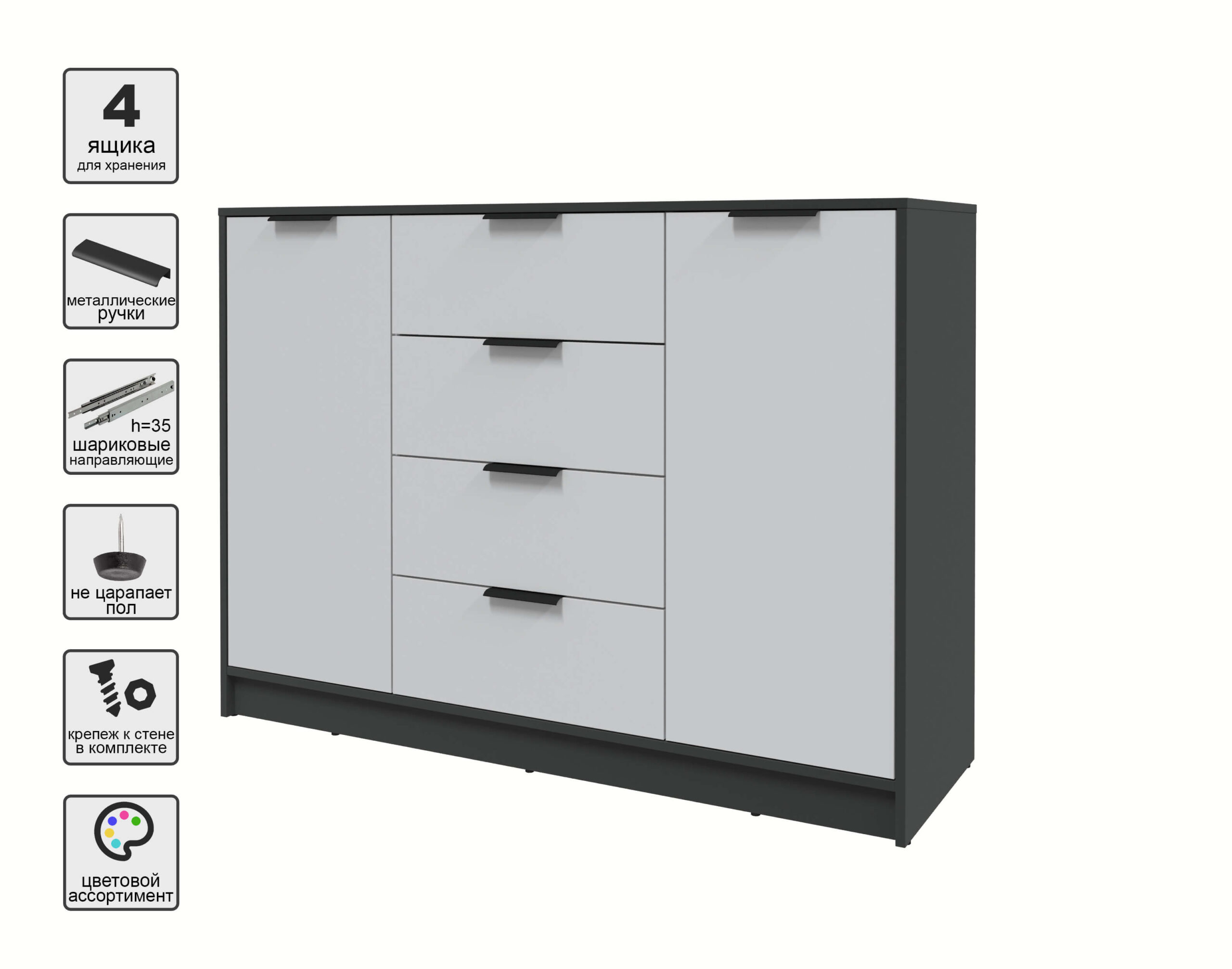 ТУМБА КТ-Т140 (АНТРАЦИТ ЛДСП/ СЕРЫЙ ЛДСП) Ш1400 В1020 Г451 - Yuta.by