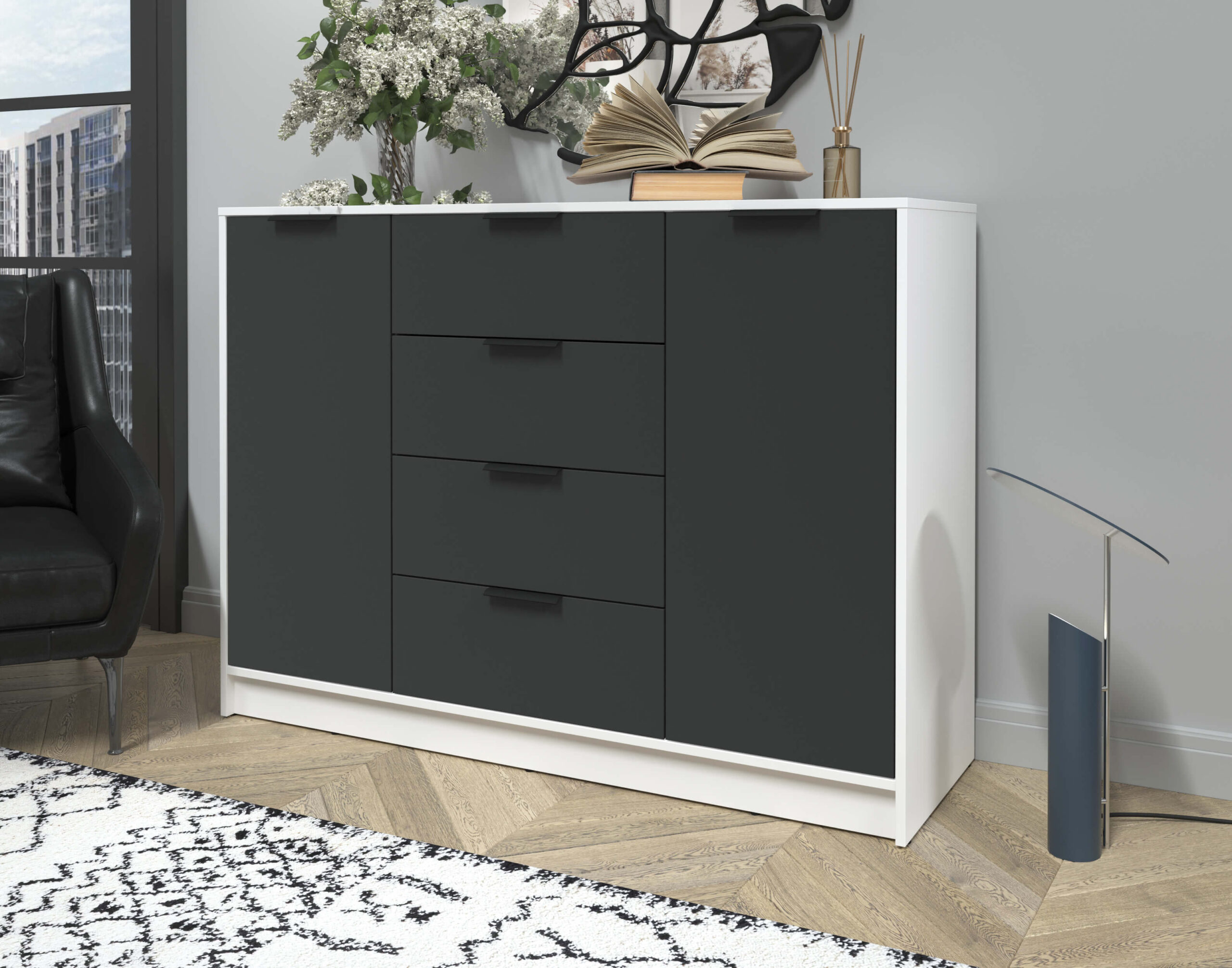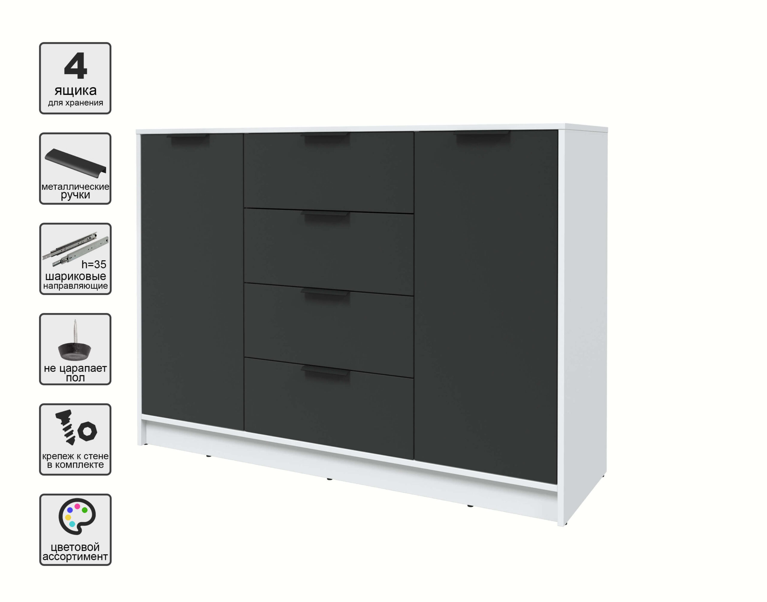ТУМБА КТ-Т140 (БЕЛЫЙ ЛДСП/ АНТРАЦИТ ЛДСП) Ш1400 В1020 Г451 - Yuta.by