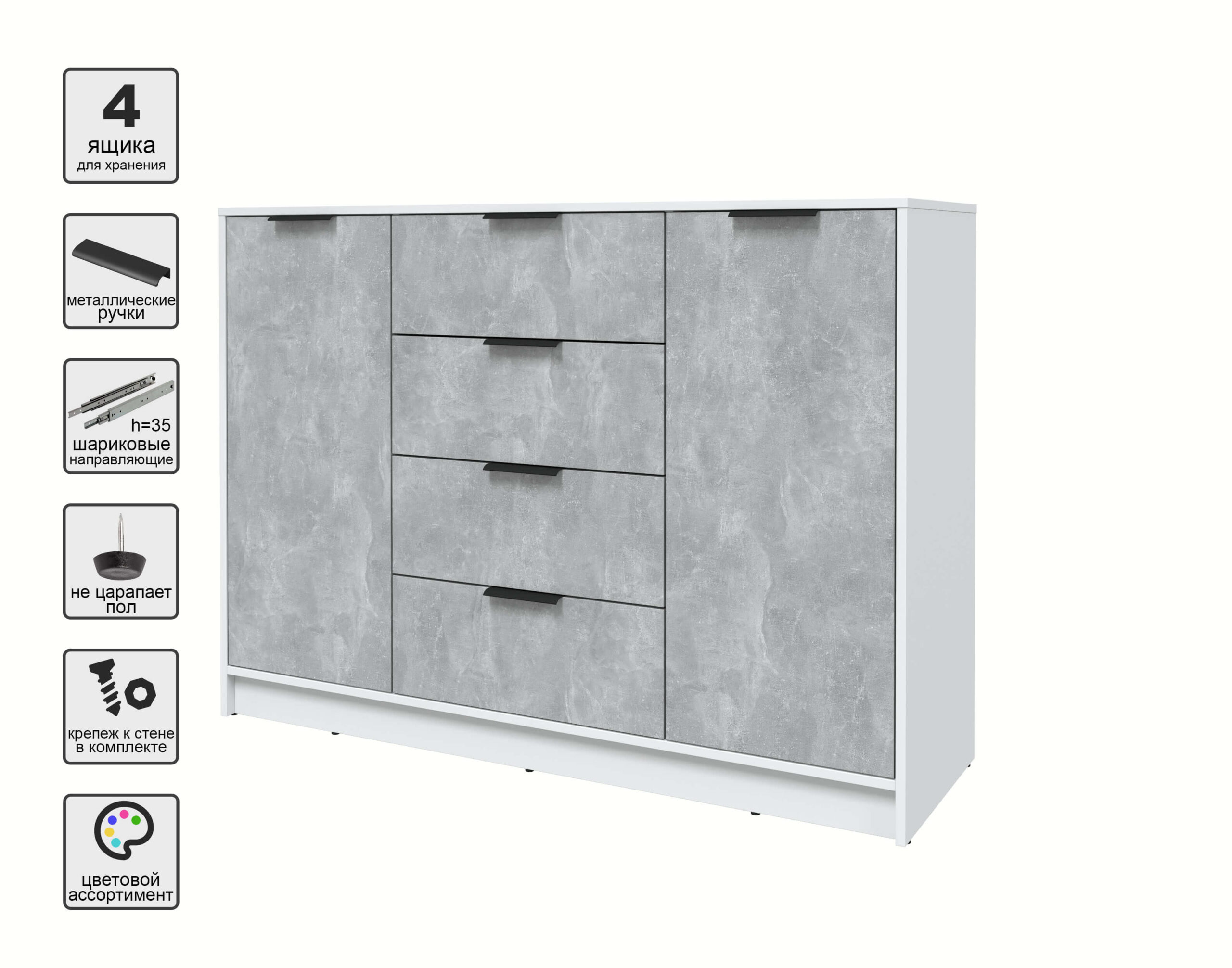 ТУМБА КТ-Т140 (БЕЛЫЙ ЛДСП/ БЕТОН ЛДСП) Ш1400 В1020 Г451 - Yuta.by