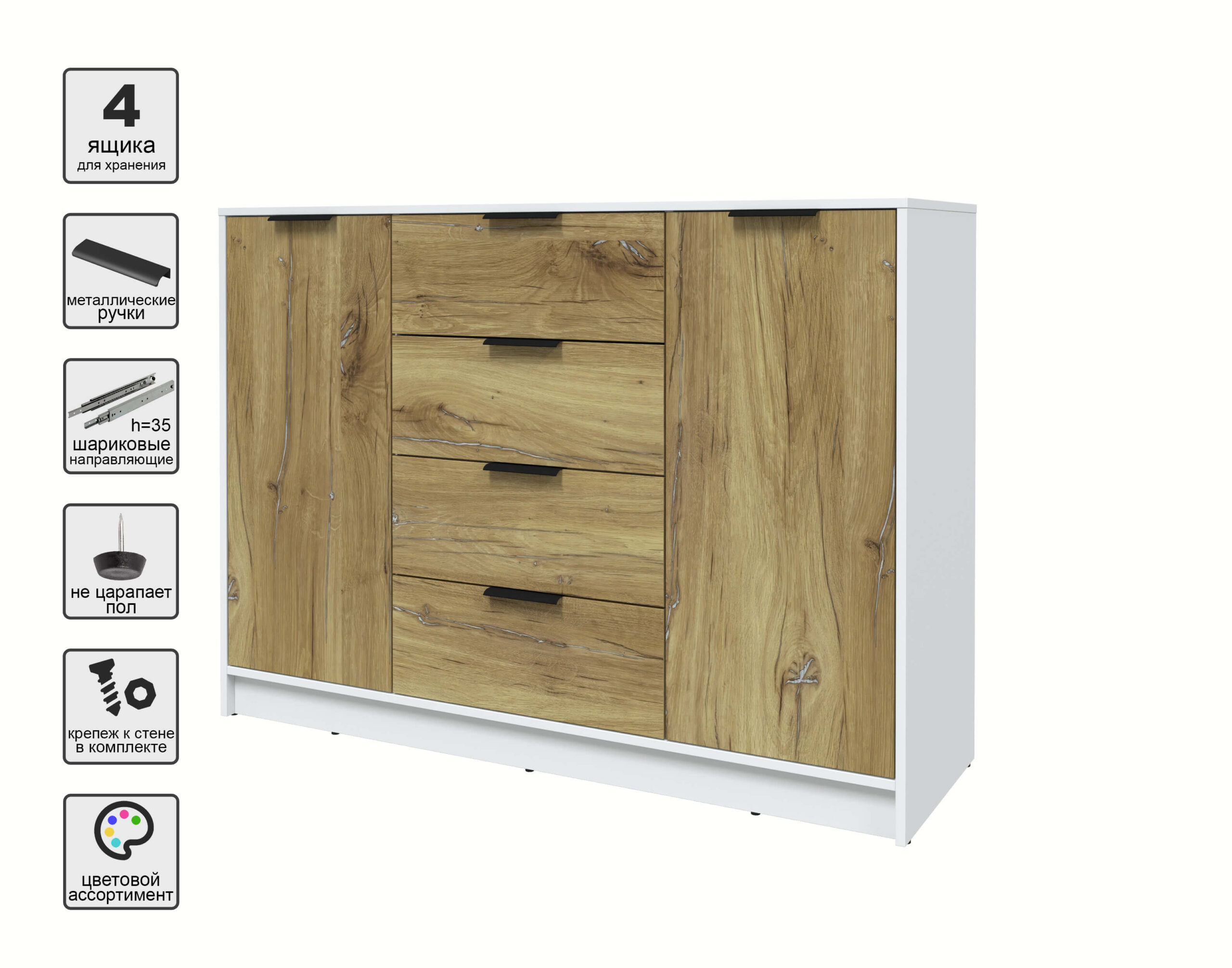 ТУМБА КТ-Т140 (БЕЛЫЙ ЛДСП/ ДУБ НОКС ЛДСП) Ш1400 В1020 Г451 - Yuta.by