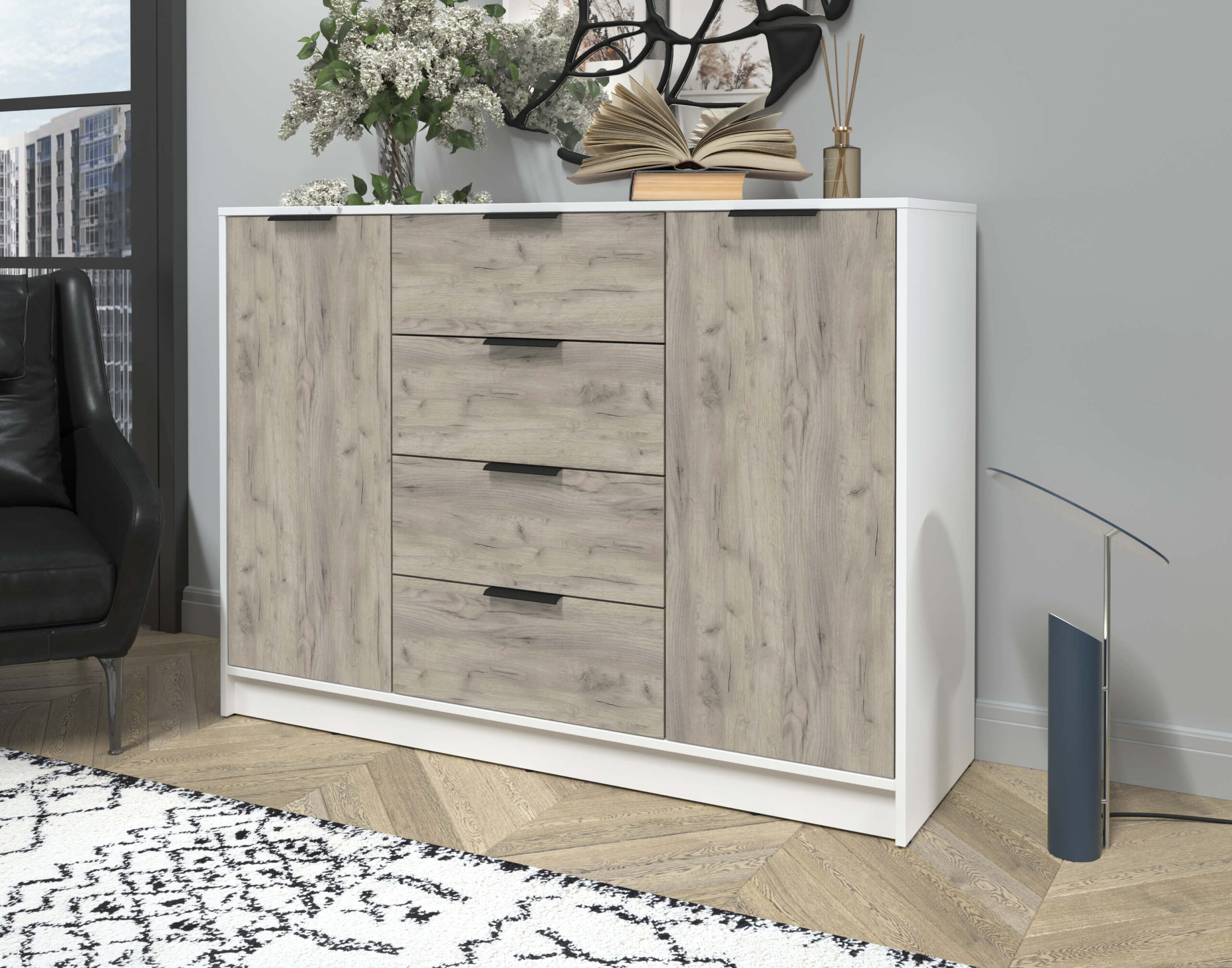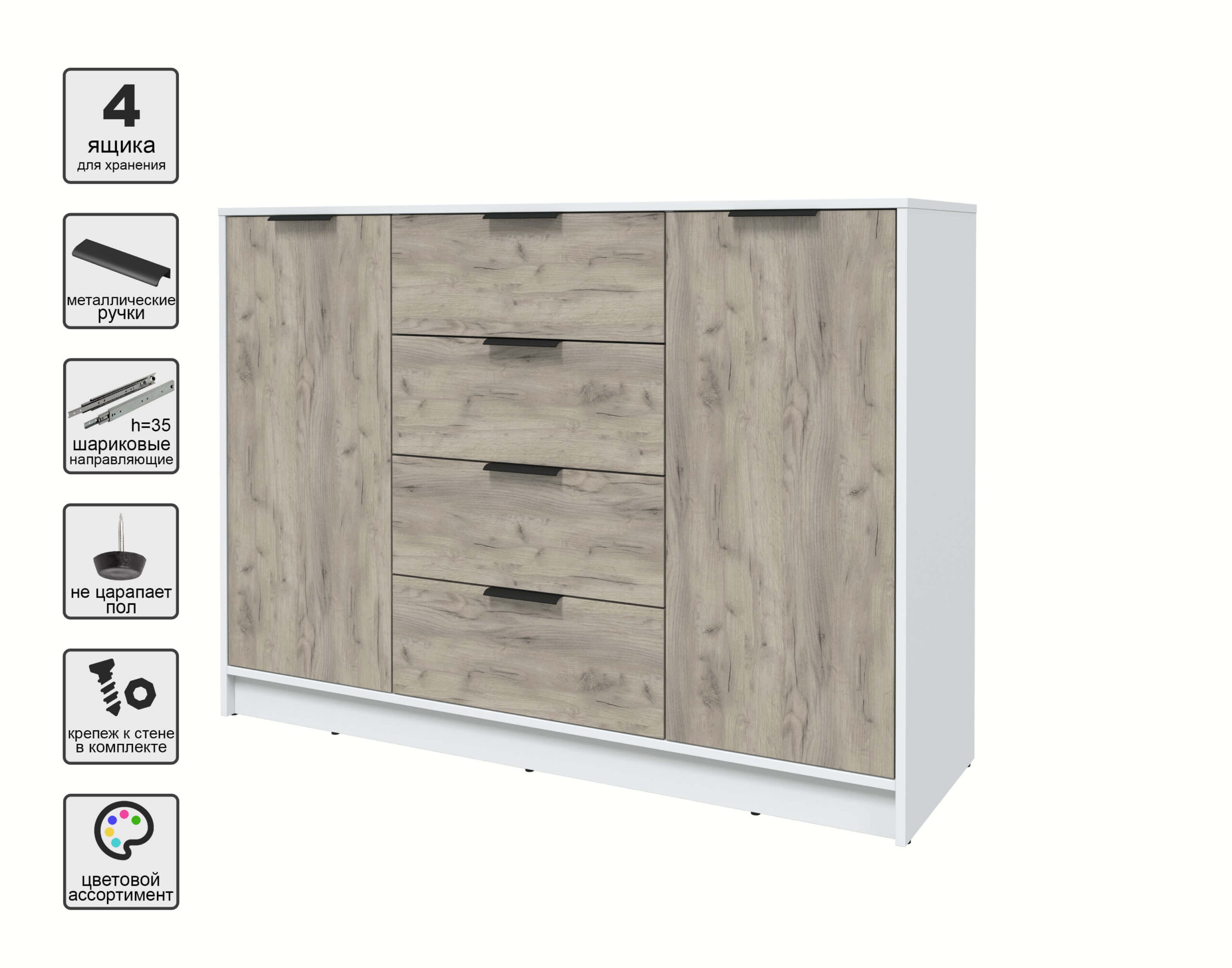 ТУМБА КТ-Т140 (БЕЛЫЙ ЛДСП/ ДУБ СЕРЫЙ ЛДСП) Ш1400 В1020 Г451 - Yuta.by