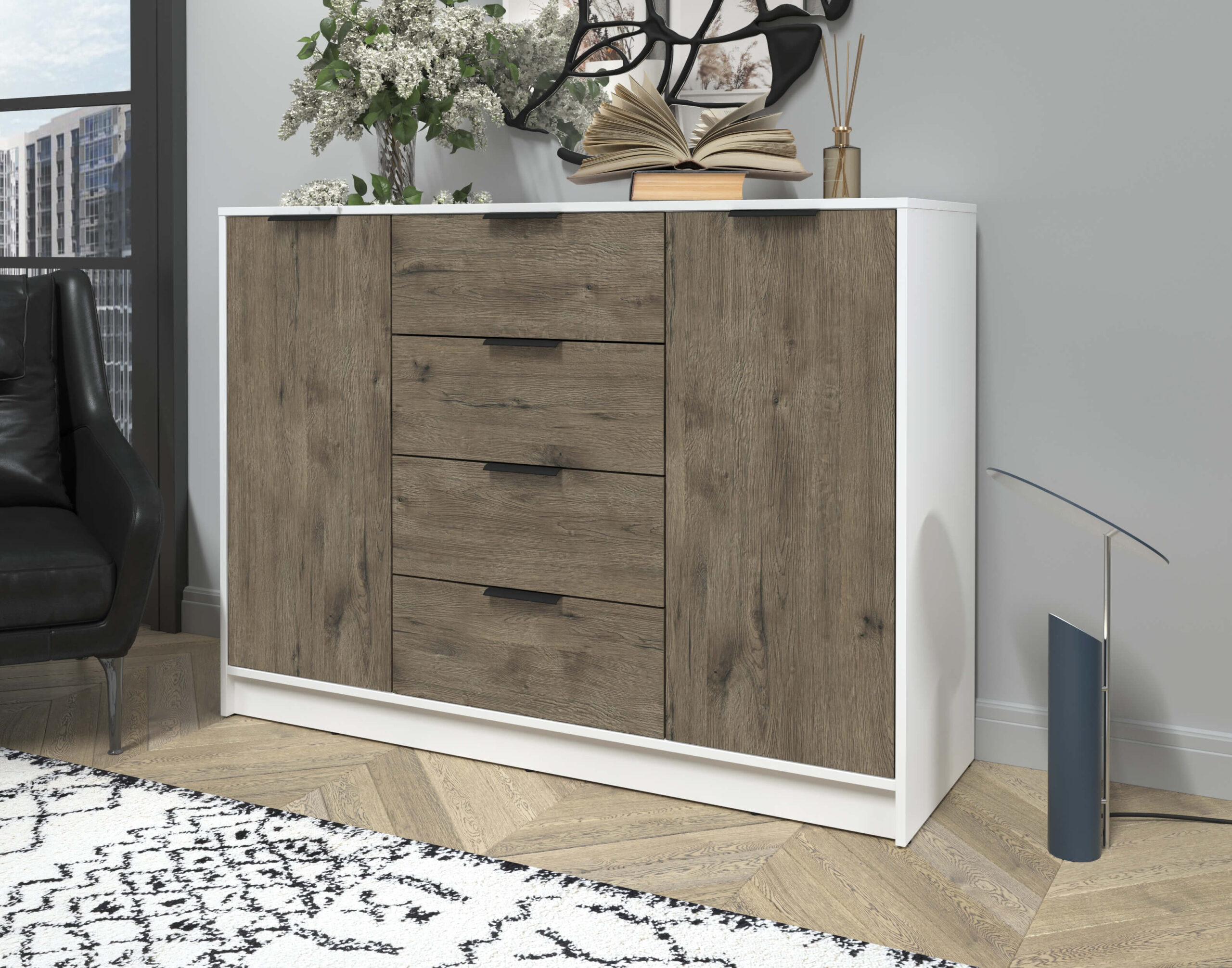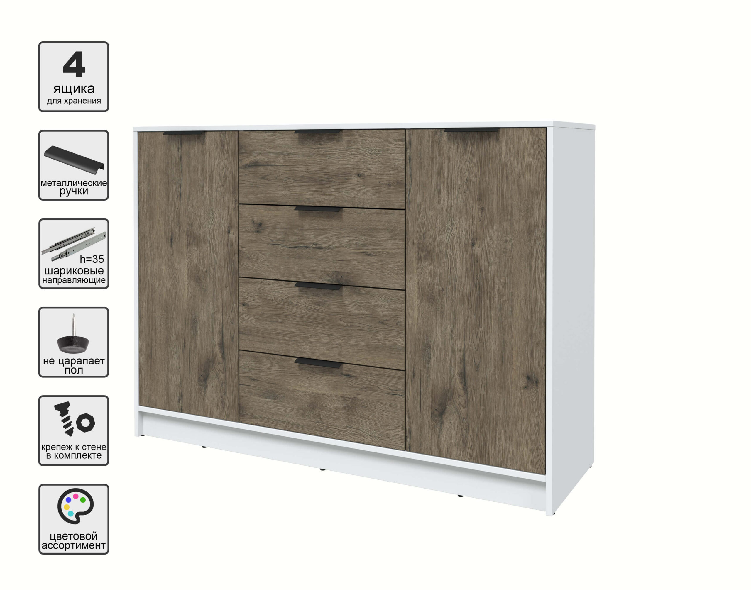 ТУМБА КТ-Т140 (БЕЛЫЙ ЛДСП/ ДУБ ВЕЛЛИНГТОН ЛДСП) Ш1400 В1020 Г451 - Yuta.by