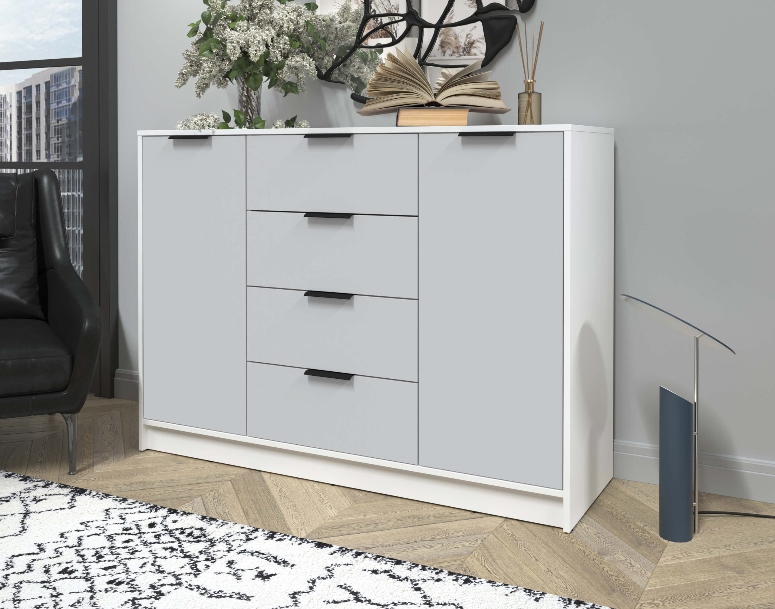 ТУМБА КТ-Т140 (БЕЛЫЙ ЛДСП/ СЕРЫЙ ЛДСП) Ш1400 В1020 Г451