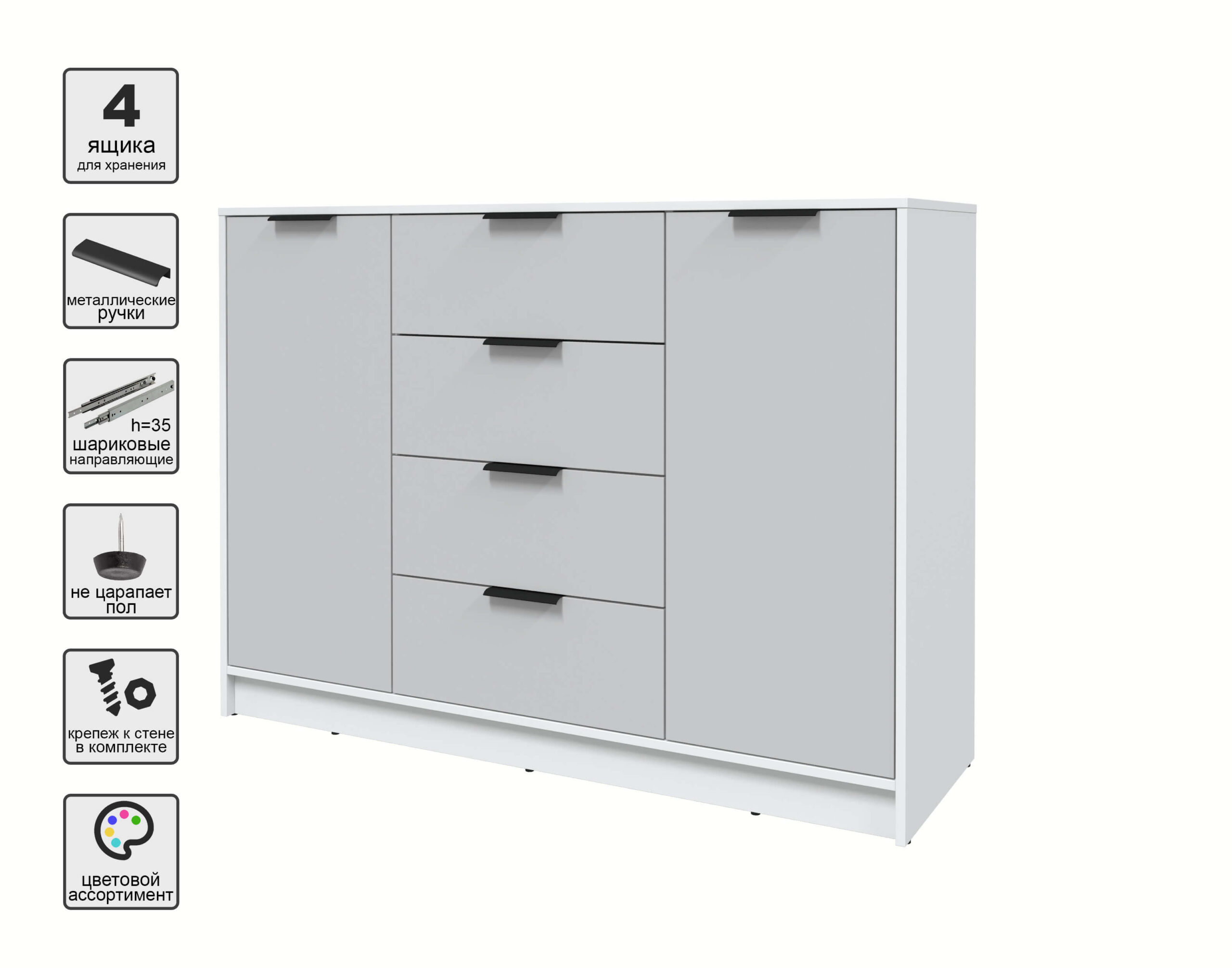 ТУМБА КТ-Т140 (БЕЛЫЙ ЛДСП/ СЕРЫЙ ЛДСП) Ш1400 В1020 Г451 - Yuta.by