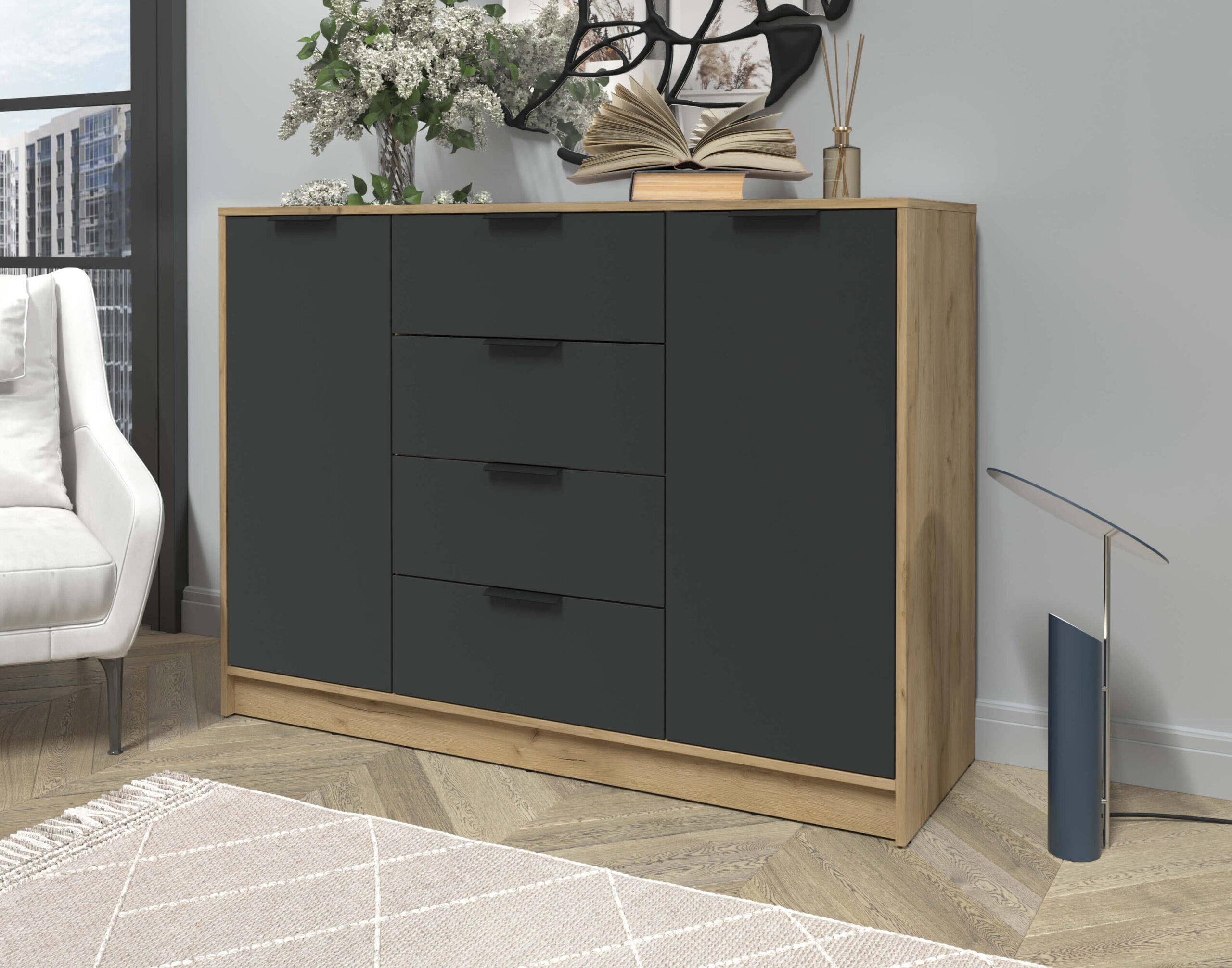 ТУМБА КТ-Т140 (ДУБ ЗОЛОТОЙ ЛДСП/ АНТРАЦИТ ЛДСП) Ш1400 В1020 Г451