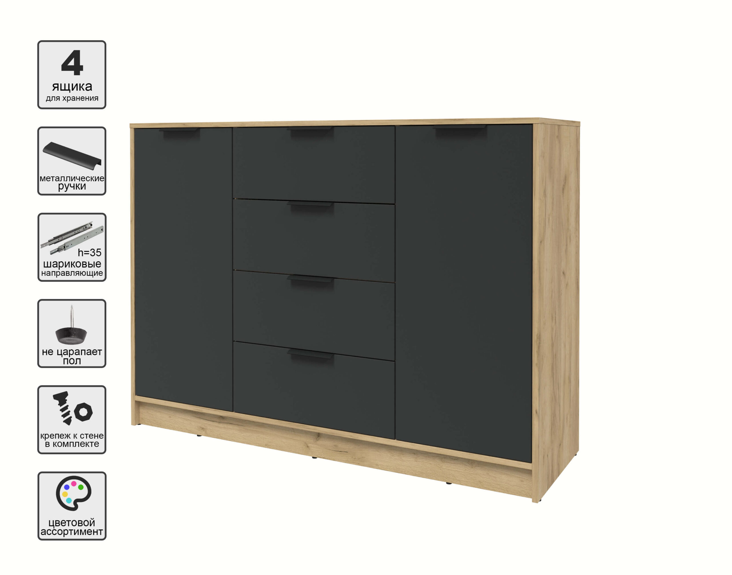 ТУМБА КТ-Т140 (ДУБ ЗОЛОТОЙ ЛДСП/ АНТРАЦИТ ЛДСП) Ш1400 В1020 Г451 - Yuta.by