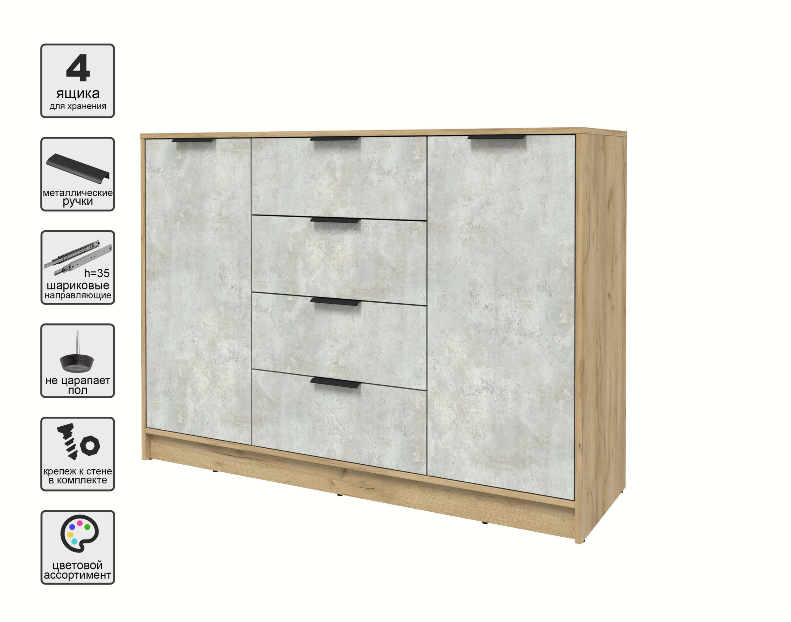 ТУМБА КТ-Т140 (ДУБ ЗОЛОТОЙ ЛДСП/ БЕТОН ЛАЙТ ЛДСП) Ш1400 В1020 Г451 - Yuta.by